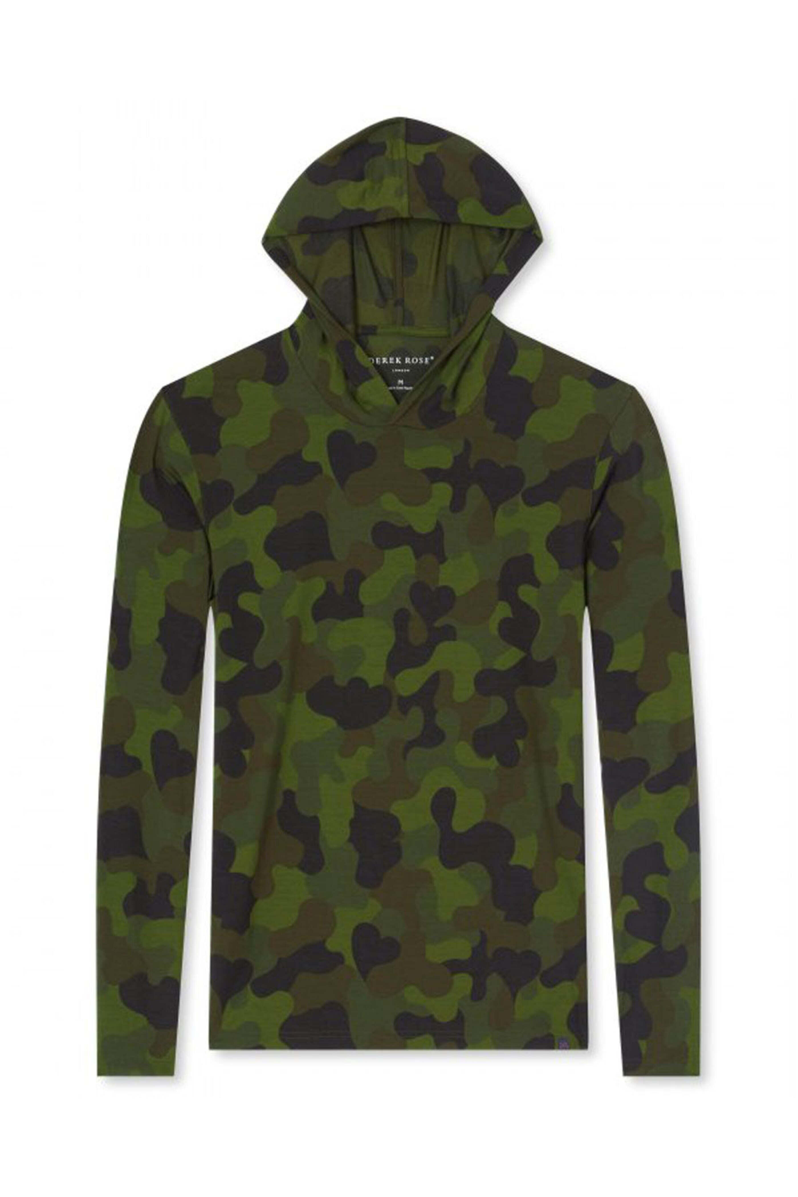 Derek Rose Green Camouflage Jersey Pullover Hoodie. Pull over hoodie. Long sleeves. 95% micro modal, 5% elastane.