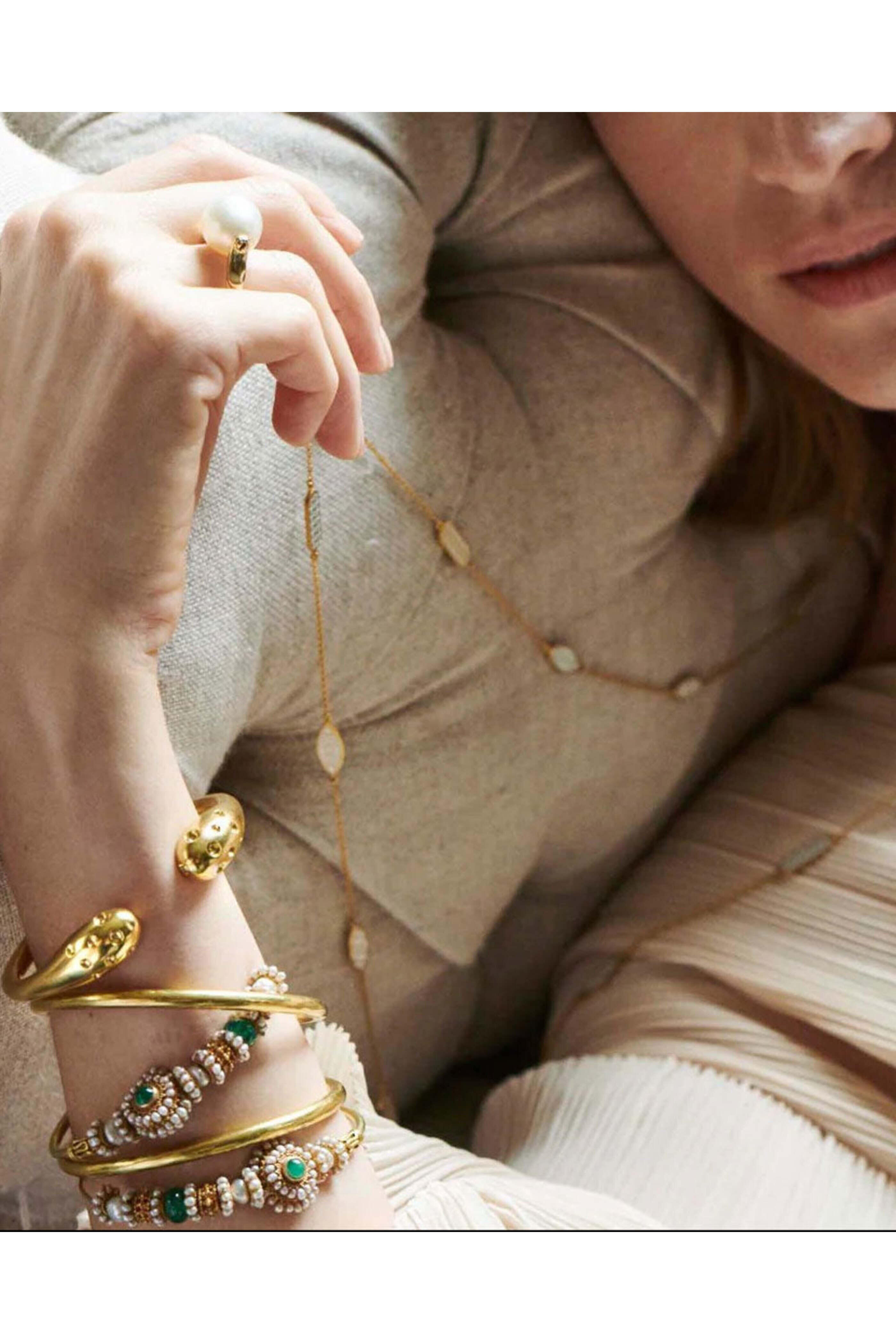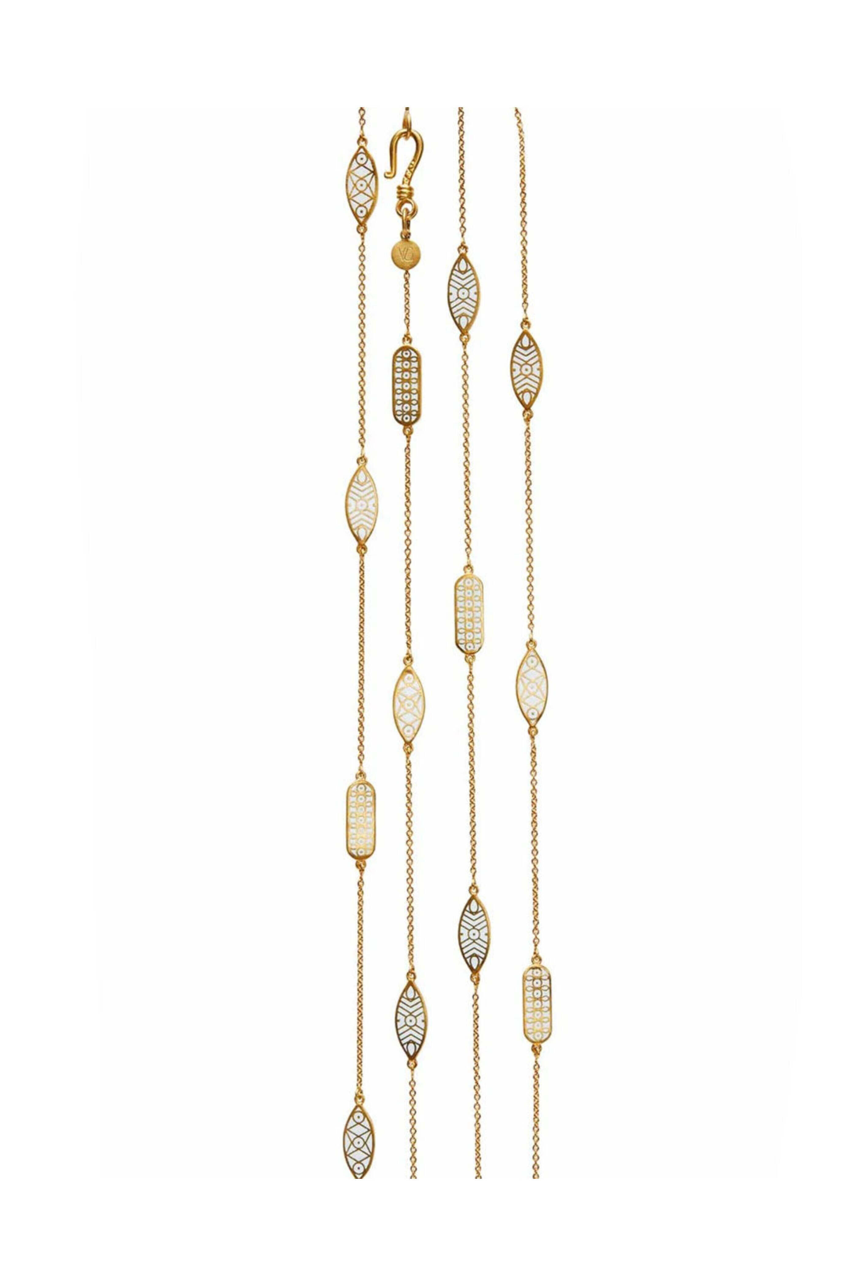 - Van Gelder Long Jodha Bai Meenha White Enamel Chain Necklace