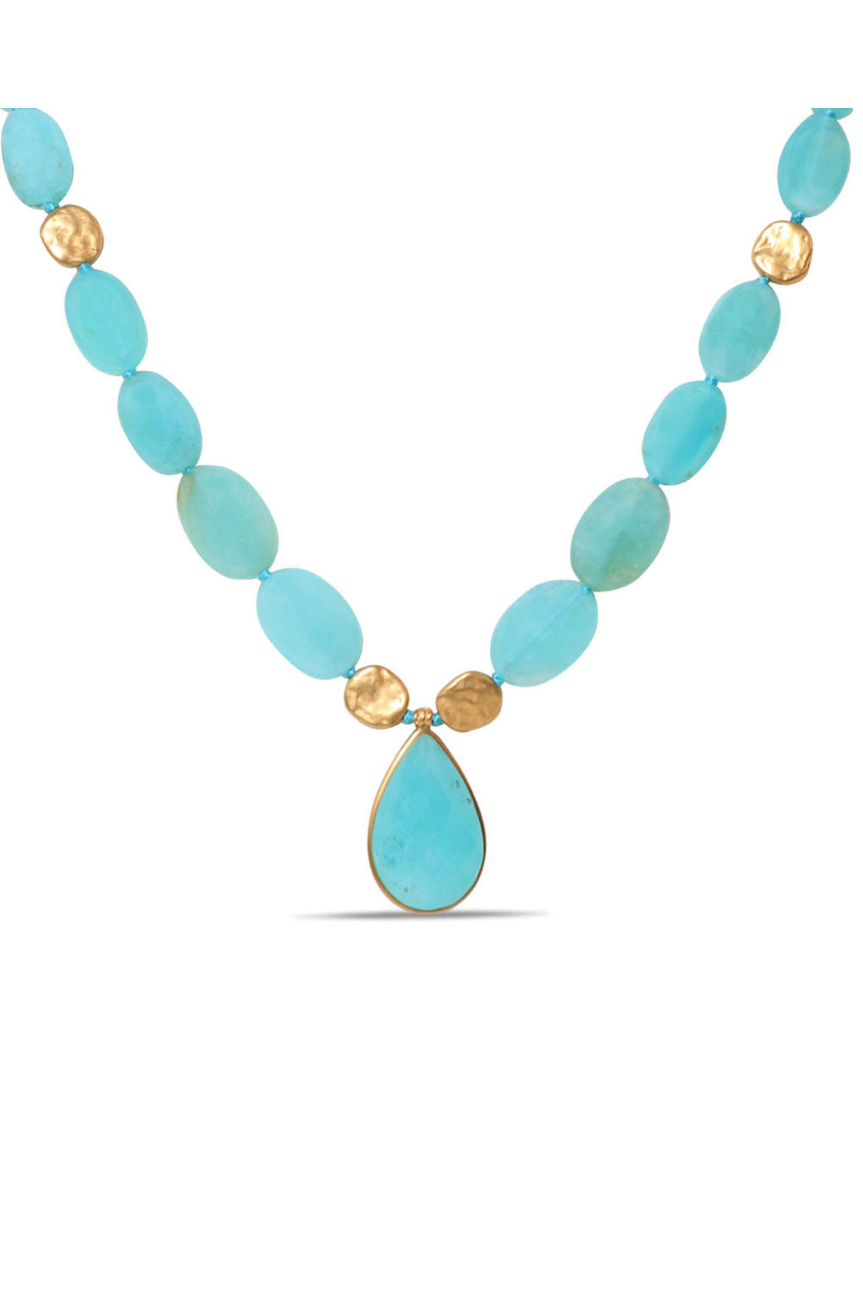 Darlene de Sedle Peruvian Opal Beaded Necklace. 22k yellow gold. Peruvian opal. Faceted pendant. Coin nuggets. Hook-and-eye clasps. 19 L.