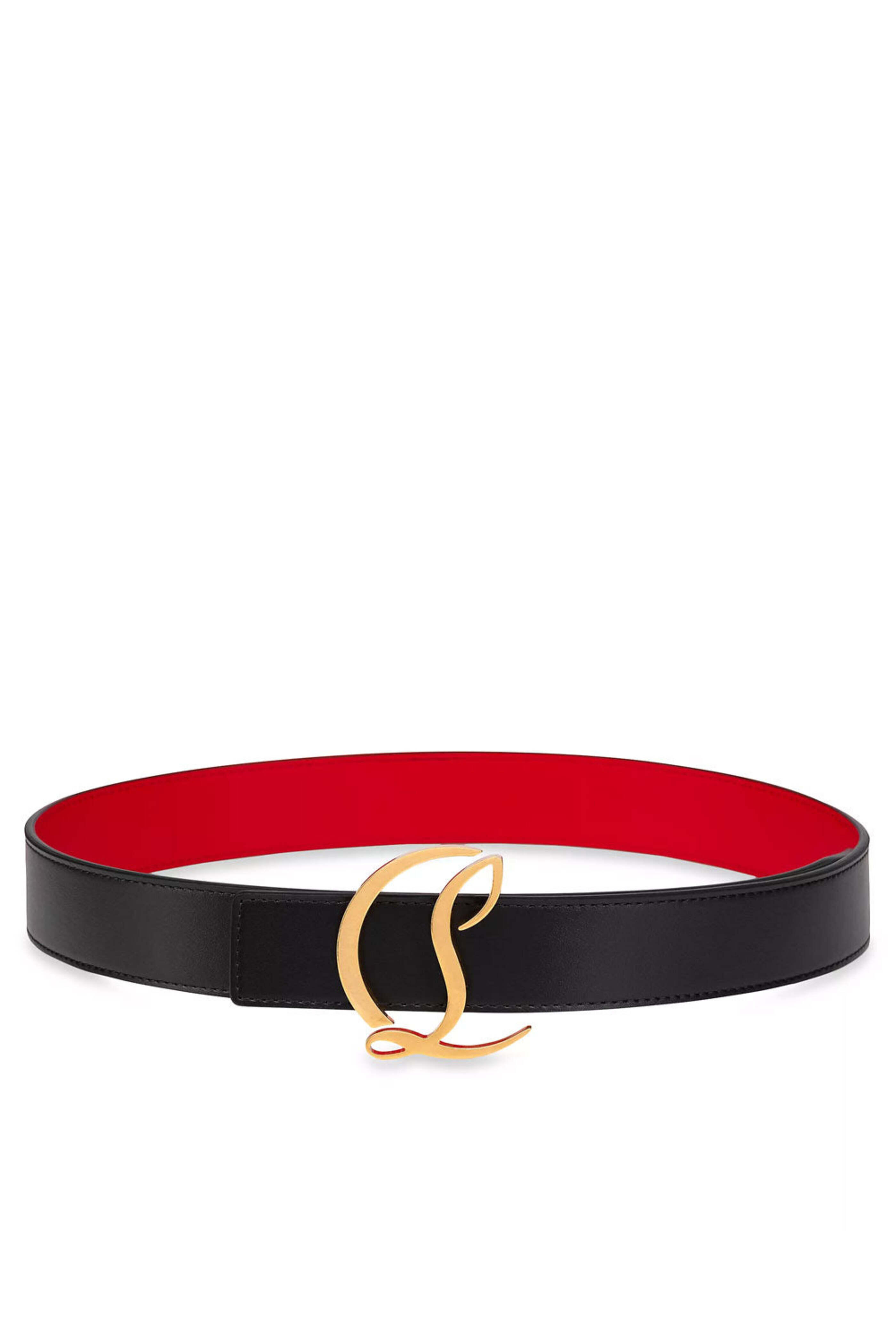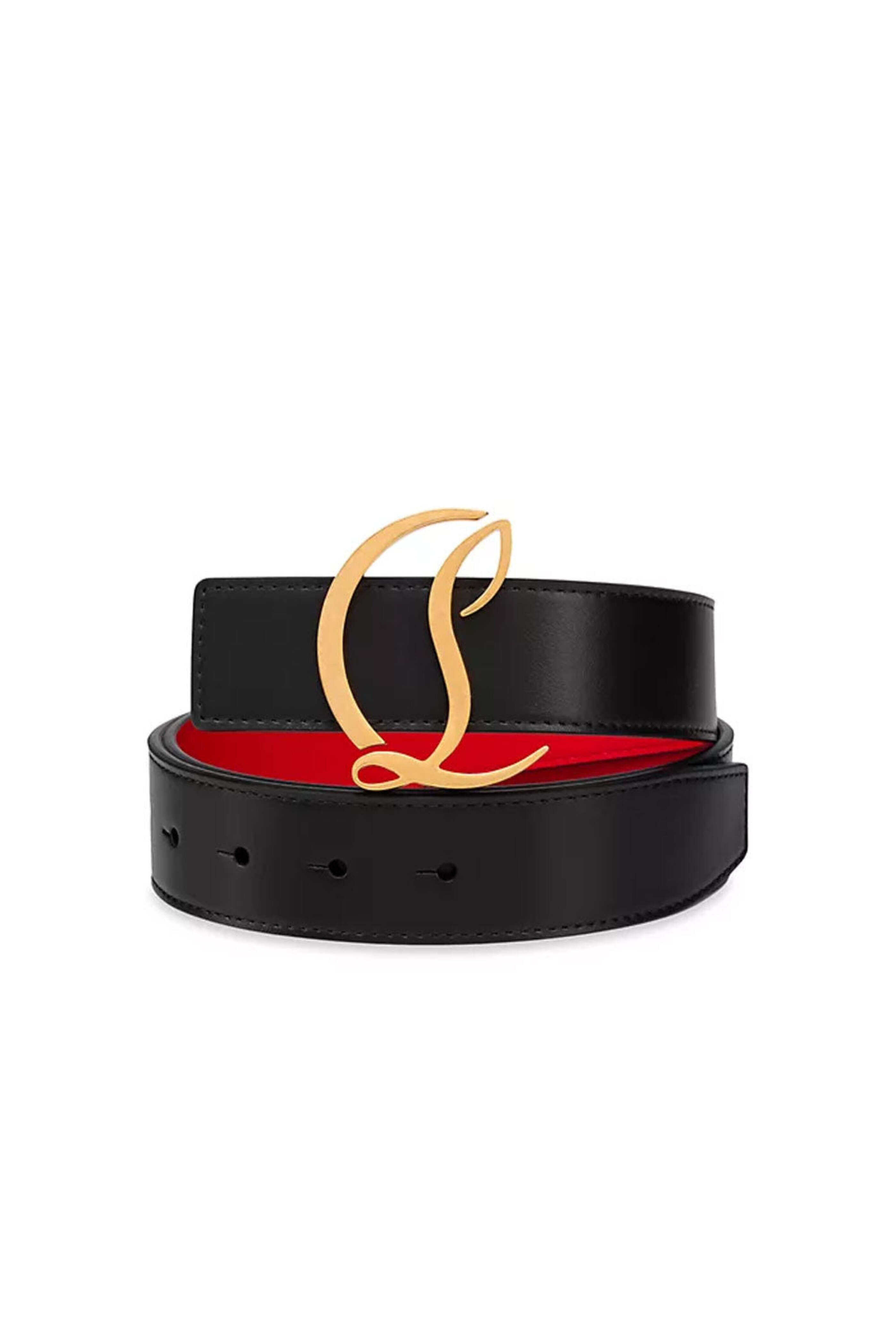 Christian Louboutin Logo Leather Belt in Black. Square tip. Adjustable buckle. Waist belt. Leather outer and lining. 1.25W. Made in Italy.