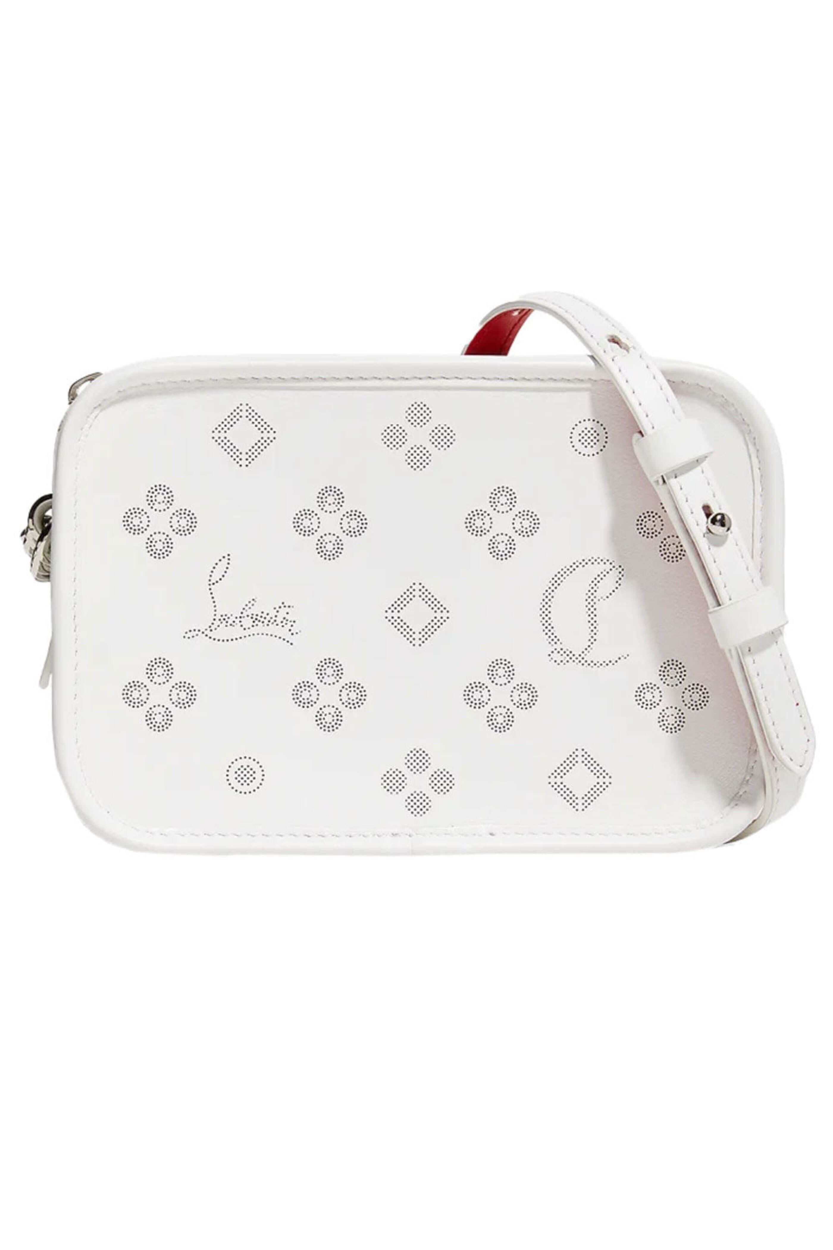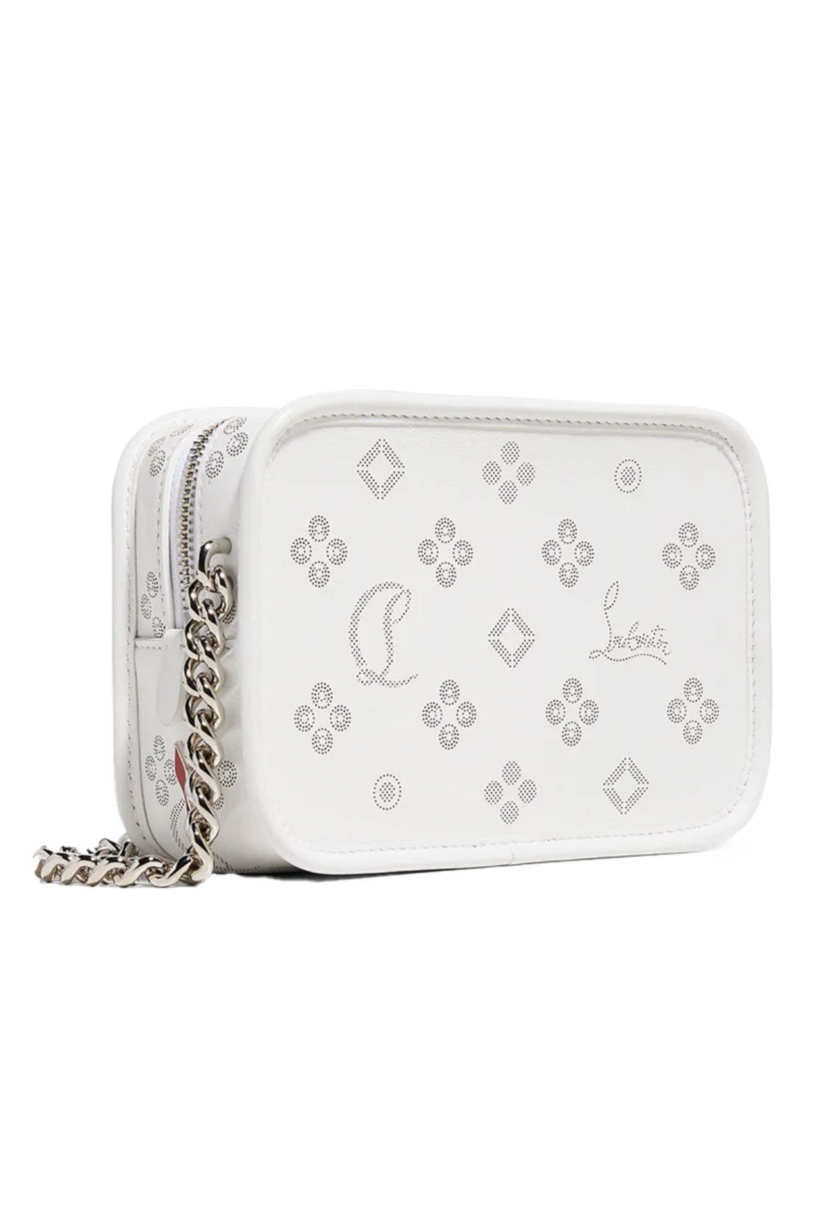 Christian Louboutin Radiooloubi Small Loub In The Sky Shoulder Bag in Bianco. Zip top closure. Adjustable chain/leather crossbody strap. Silver toned hardware. Calf leather outer. Signature red leather lining. 4.9â x 7.1â x 2.2â. Made in Italy. Â .