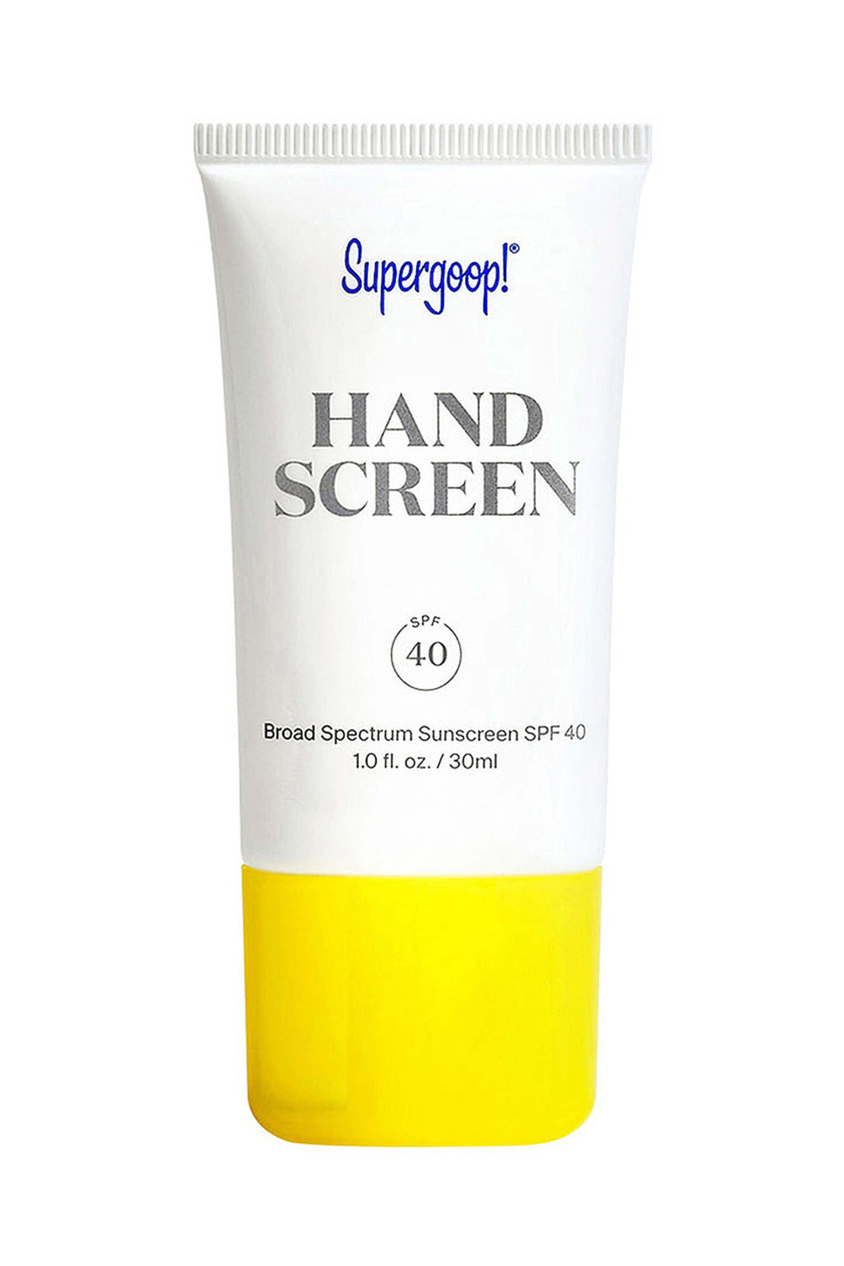 - Supergoop! Hand Screen SPF 40 Hydrating~ preventative hand cream Fast absorbing formula Reapply every two hours Octinoxate free 1 fl oz 6.76 fl oz