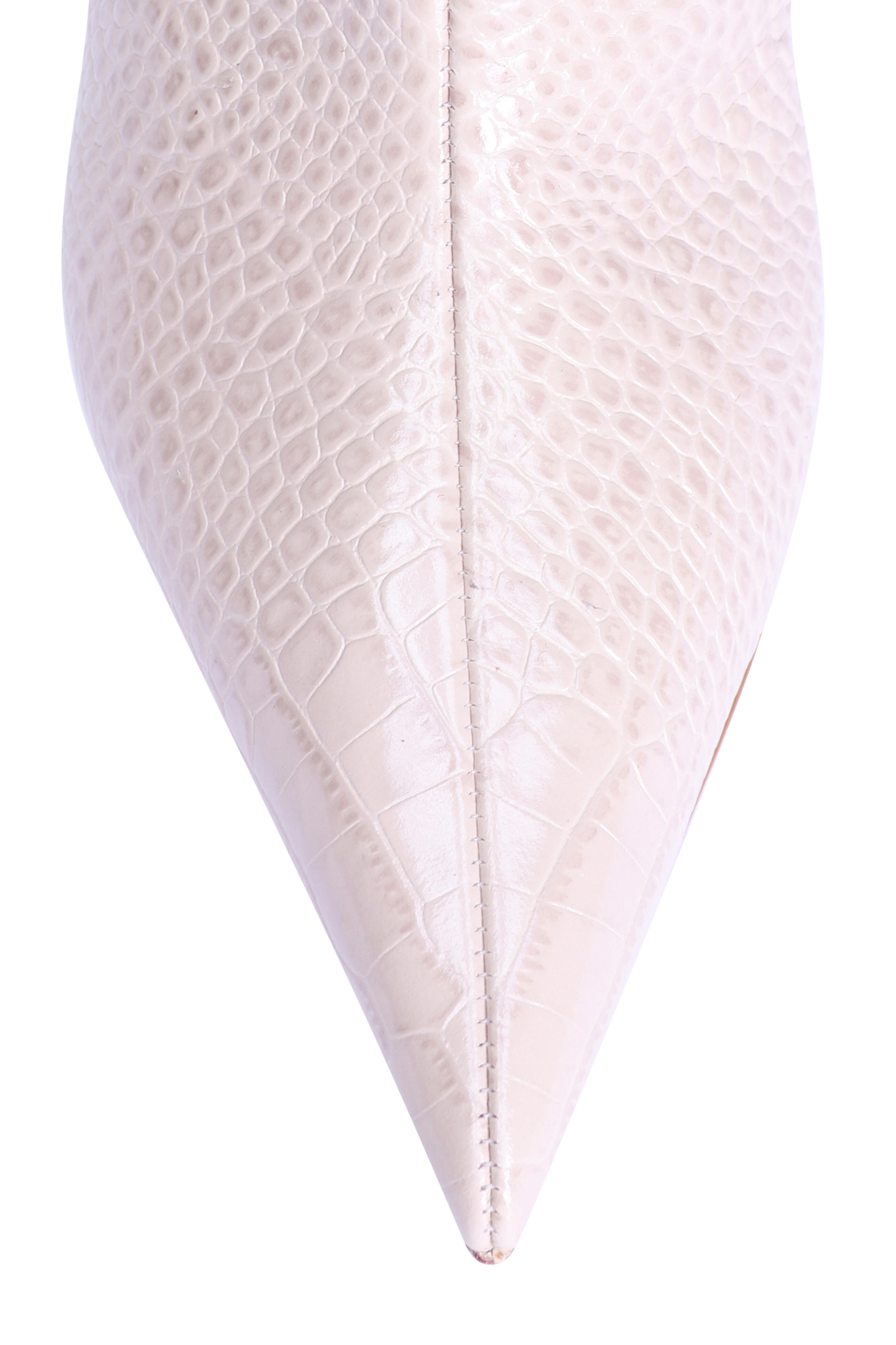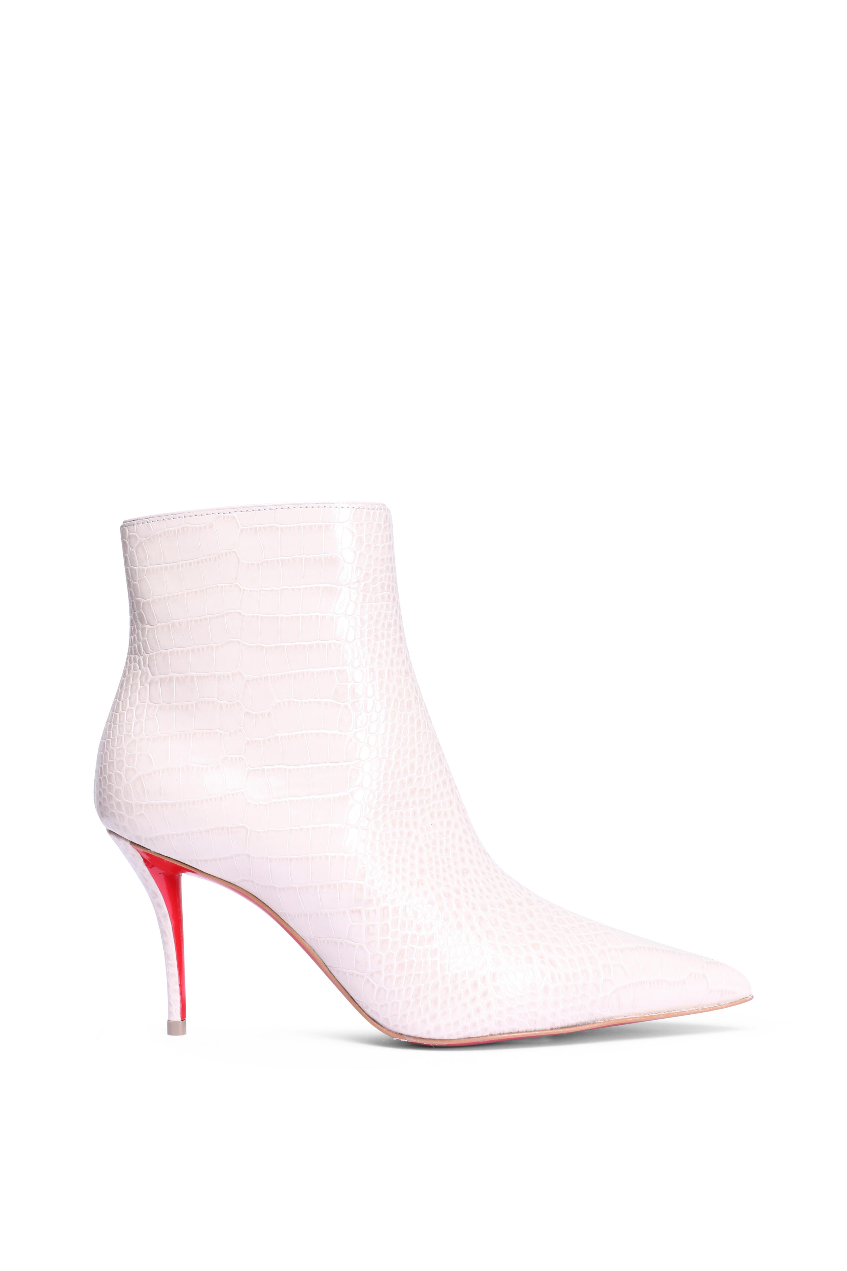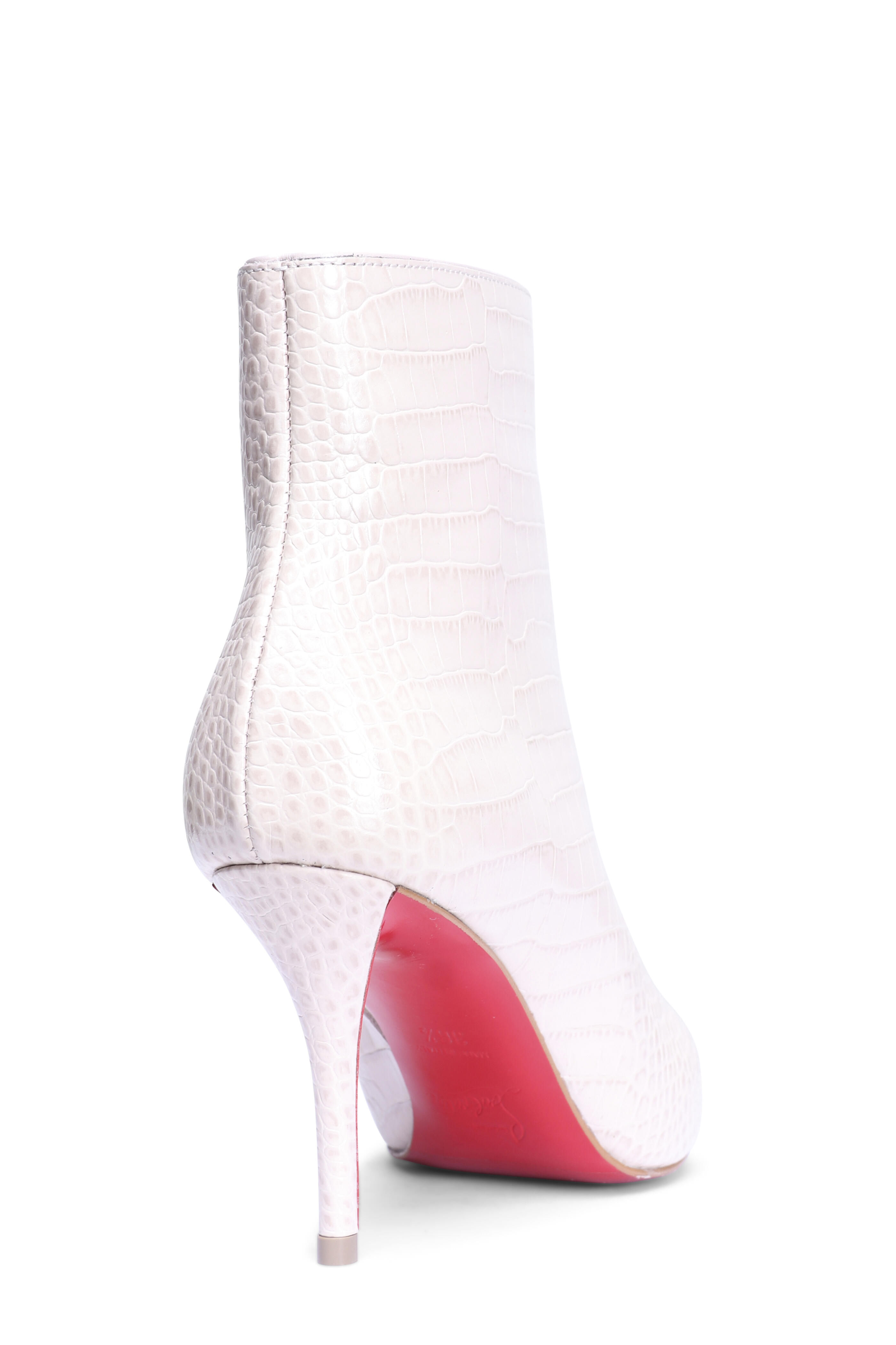 Croc-embossed leather upper. Leather lining. Signature red leather sole. Pointed toe. Side zip closure. Features the new “everlasting sole”. Stiletto heel. Made in Italy. Heel measurement: 80mm.