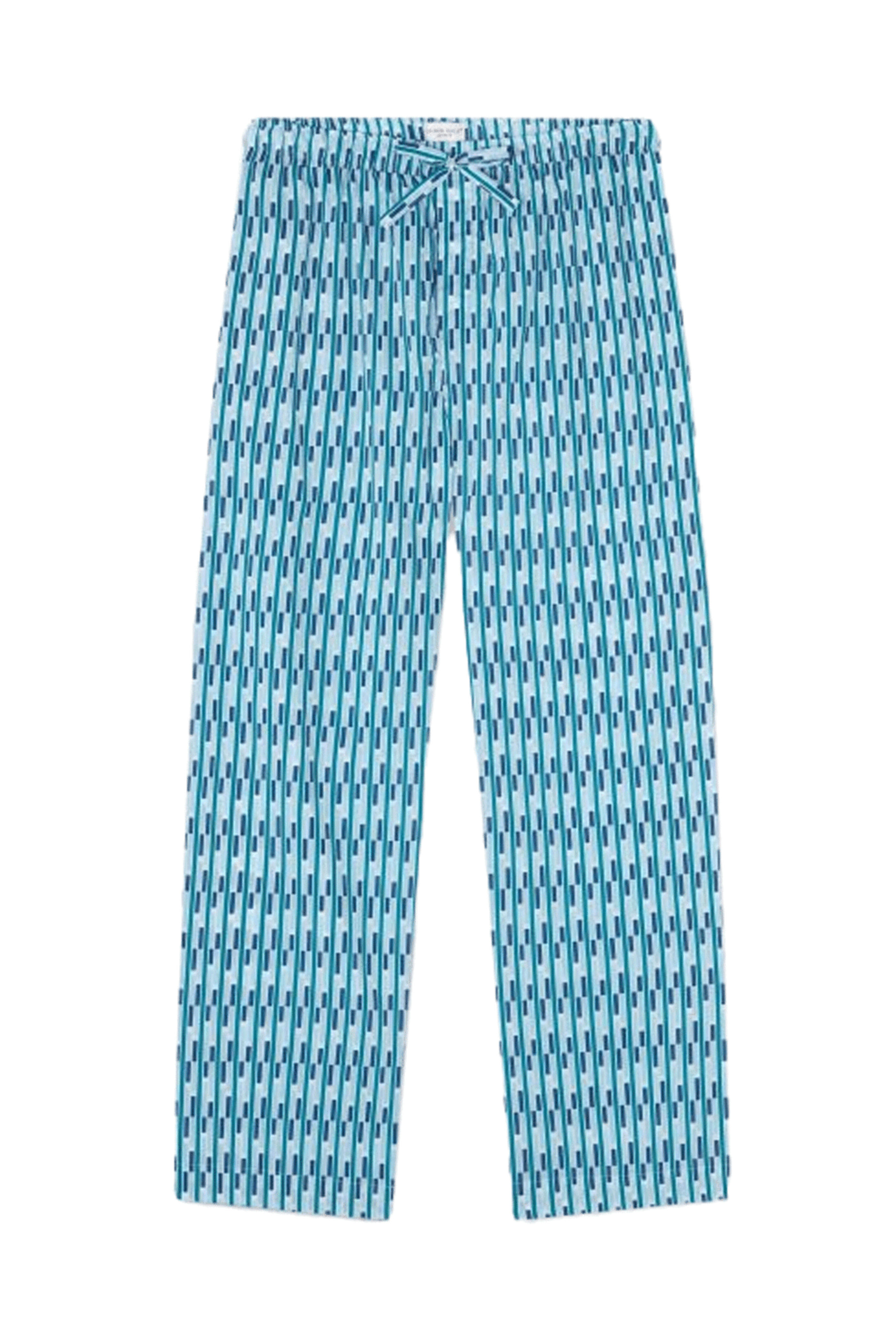 Derek Rose Ledbury Multicolor Lounge Pant . Flat front. Concealed magnetic fly. Elastic and tie waist. Two insert side pockets. Relaxed fit. 100% cotton.