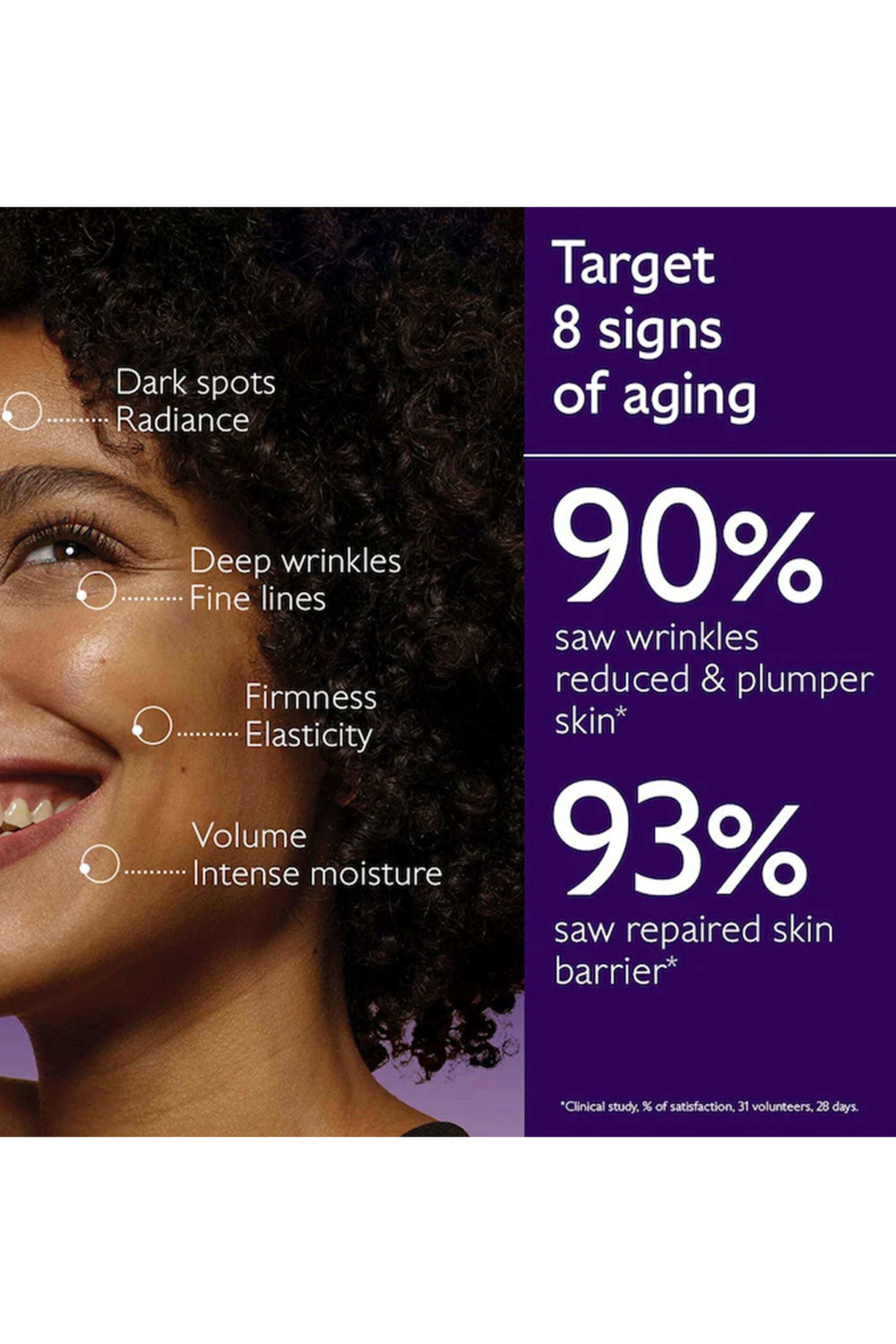 - This luxurious, deeply nourishing moisturizer replenishes the dry skin's moisture barrier with bio-ceramides while targeting the eight signs of aging. Its clinically shown to visibly improve elasticity, firmness, wrinkles, dark spots, plumpness, hydration, and radiance with the breakthrough TET8¢ patent