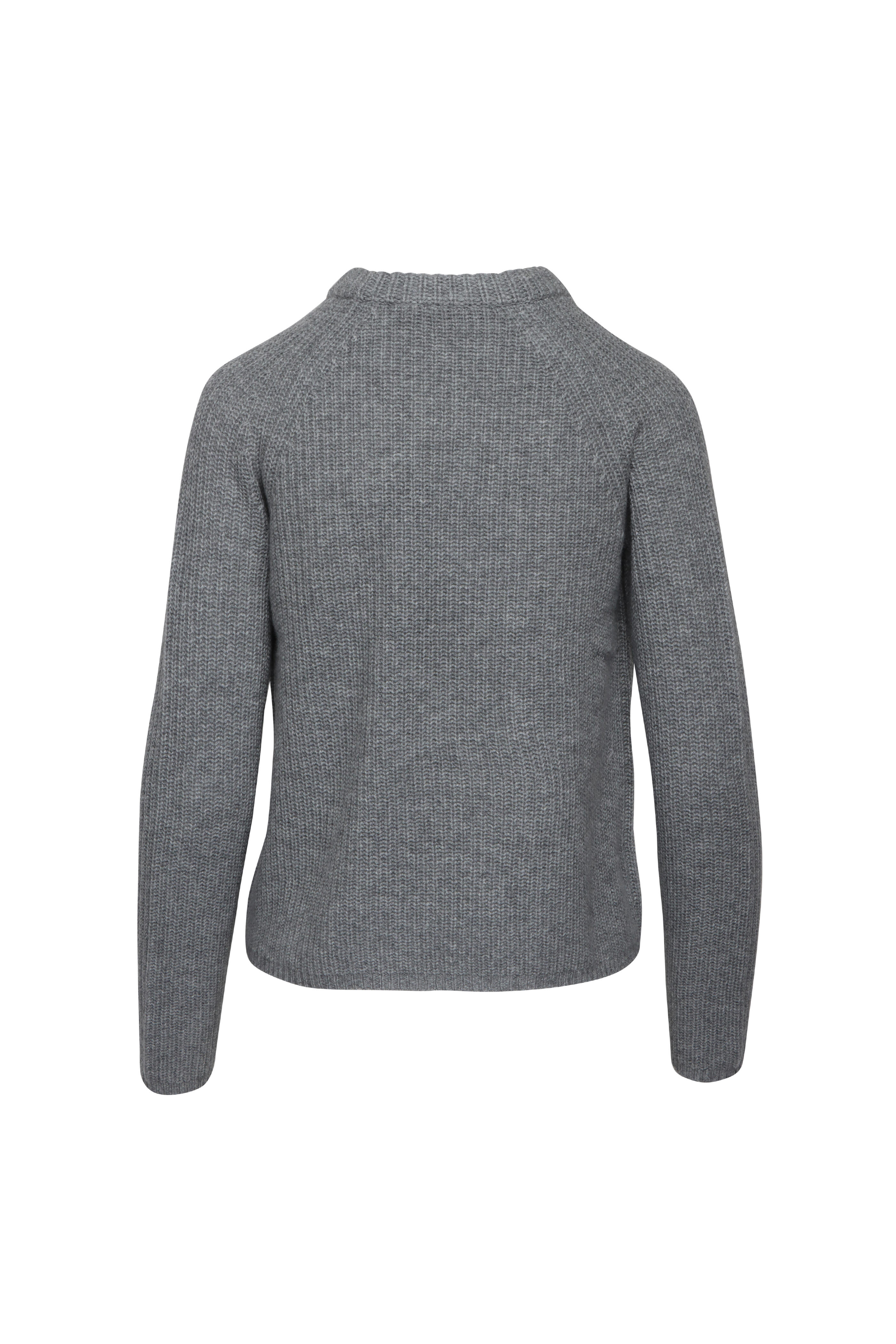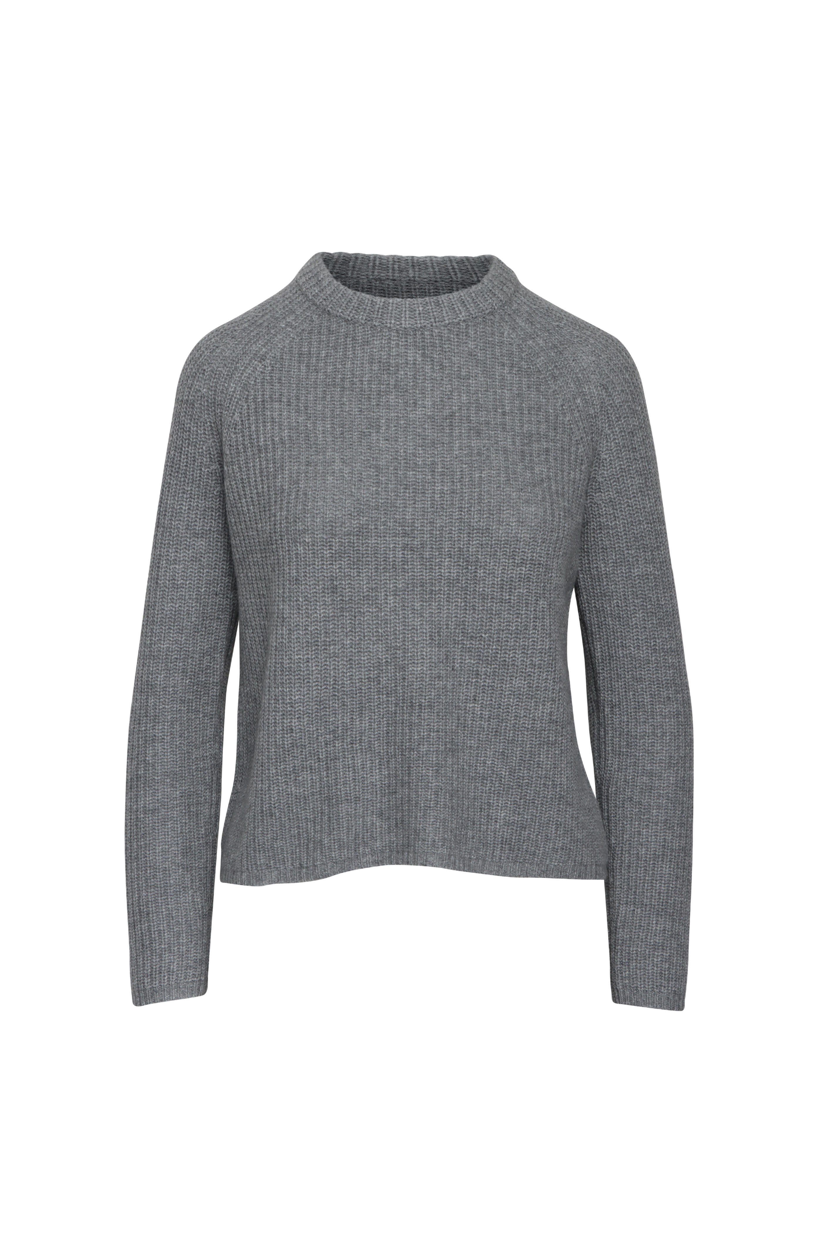 Crewneck. Long raglan sleeves. Boxy fit. Straight hem. Rib knit throughout. Imported. Bust 19.25” (Size S). Sleeve 32” (Size S). Length 22” (Size S). 100% cashmere. Dry clean.