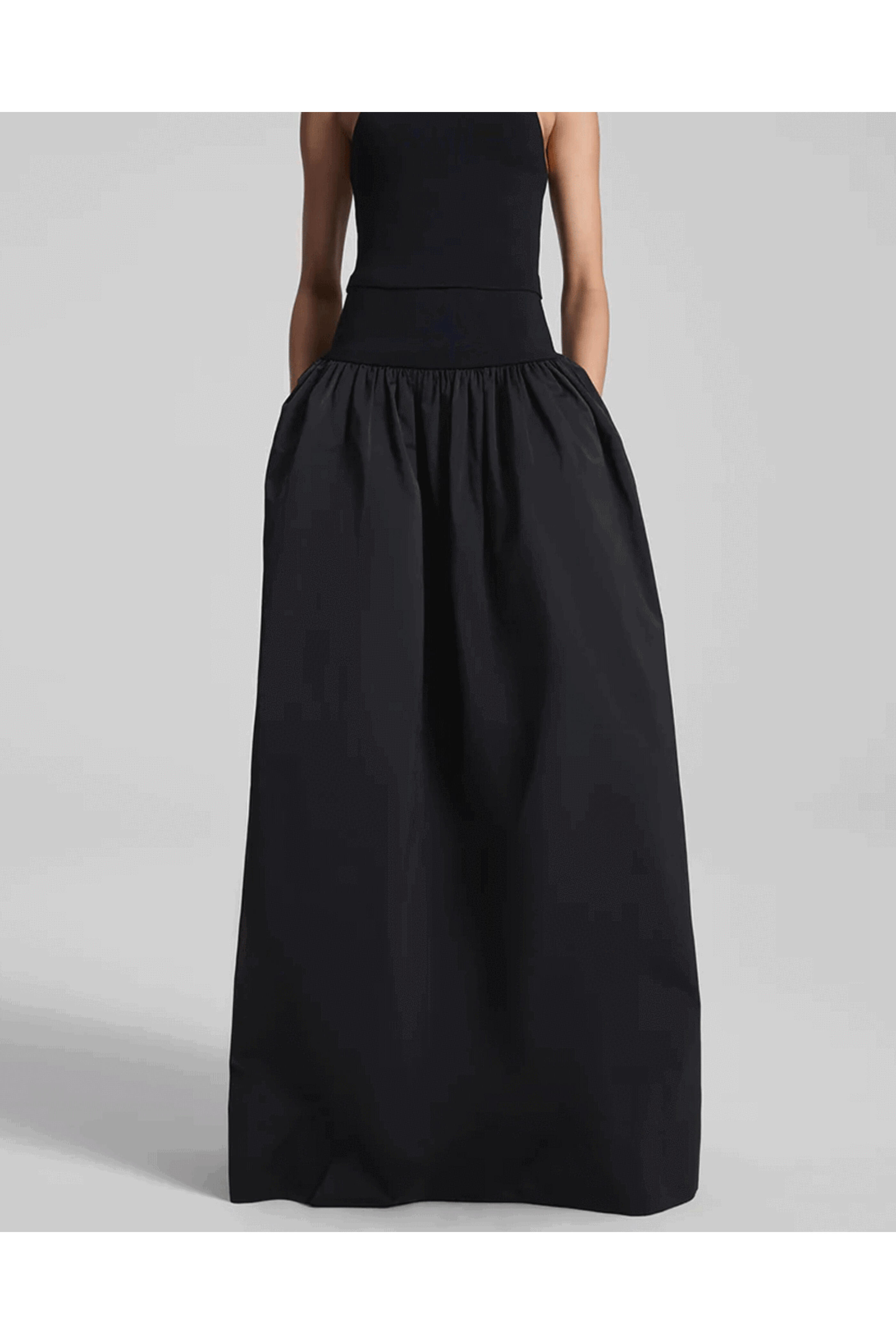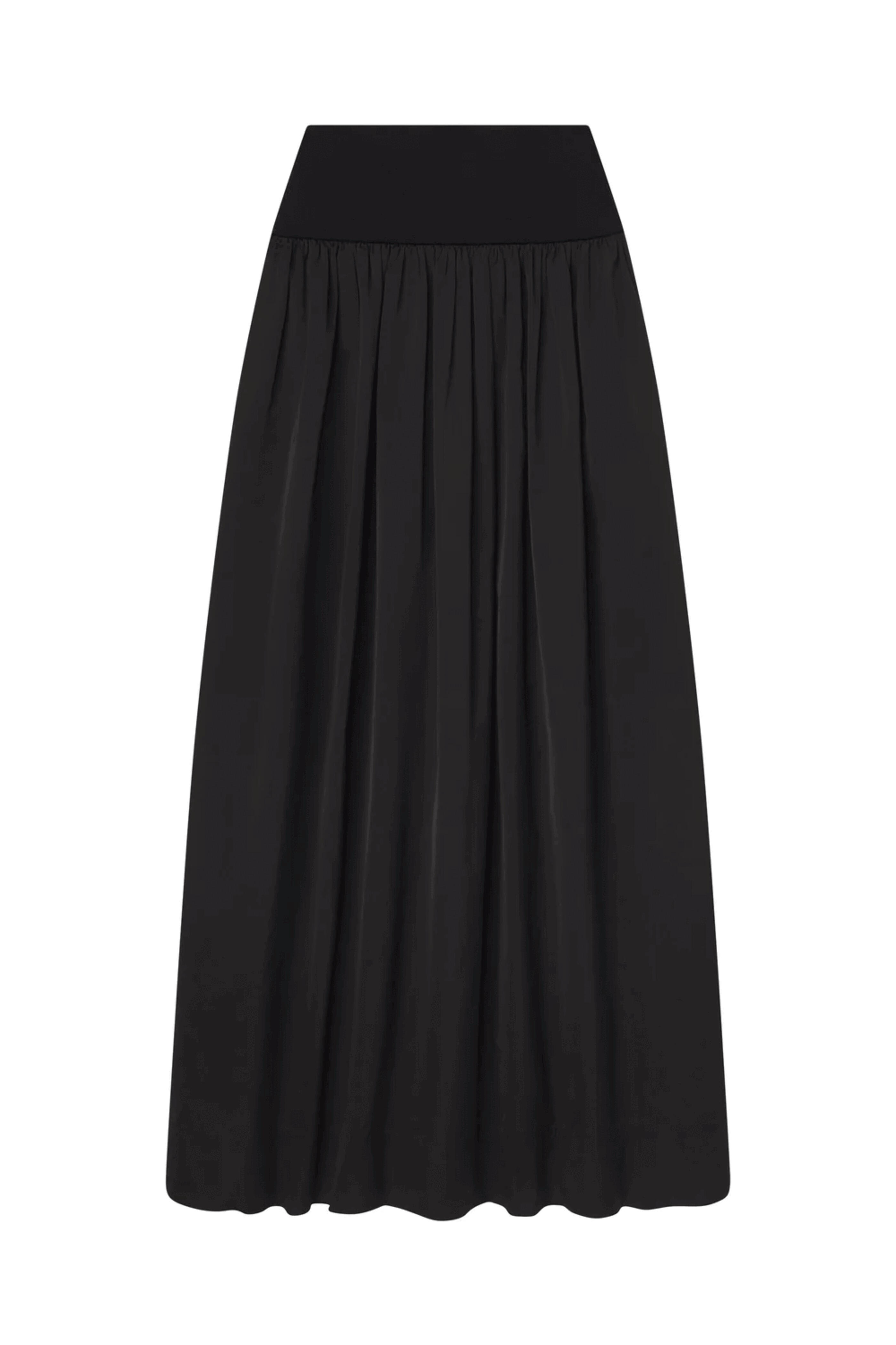 A.L.C. Black Jacqueline Skirt . High rise . Side seam pockets . A-line silhouette . Full length . Pull-on style . Imported . 100% Polyester . Dry clean .