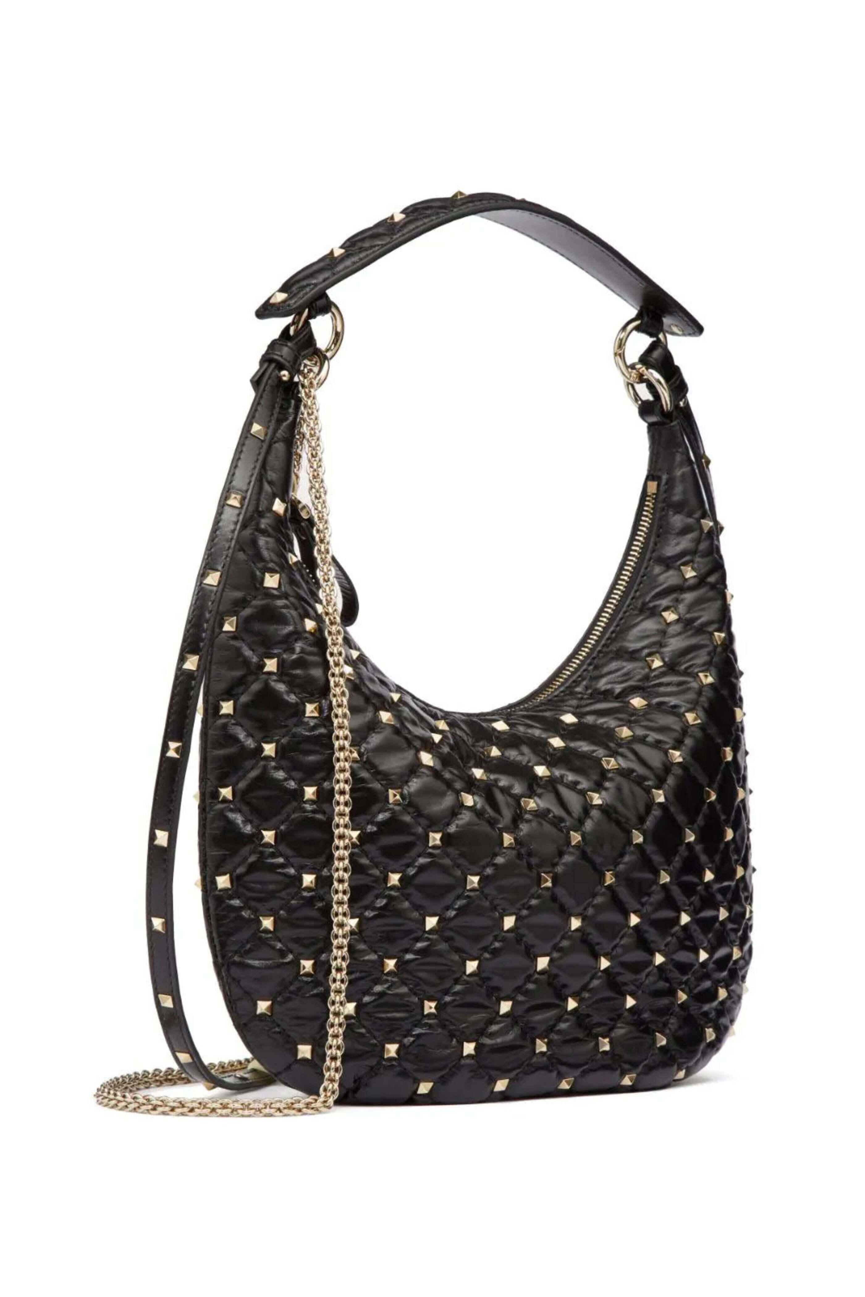 - Valentino Small Hobo Rockstud Spike Bag in Nero