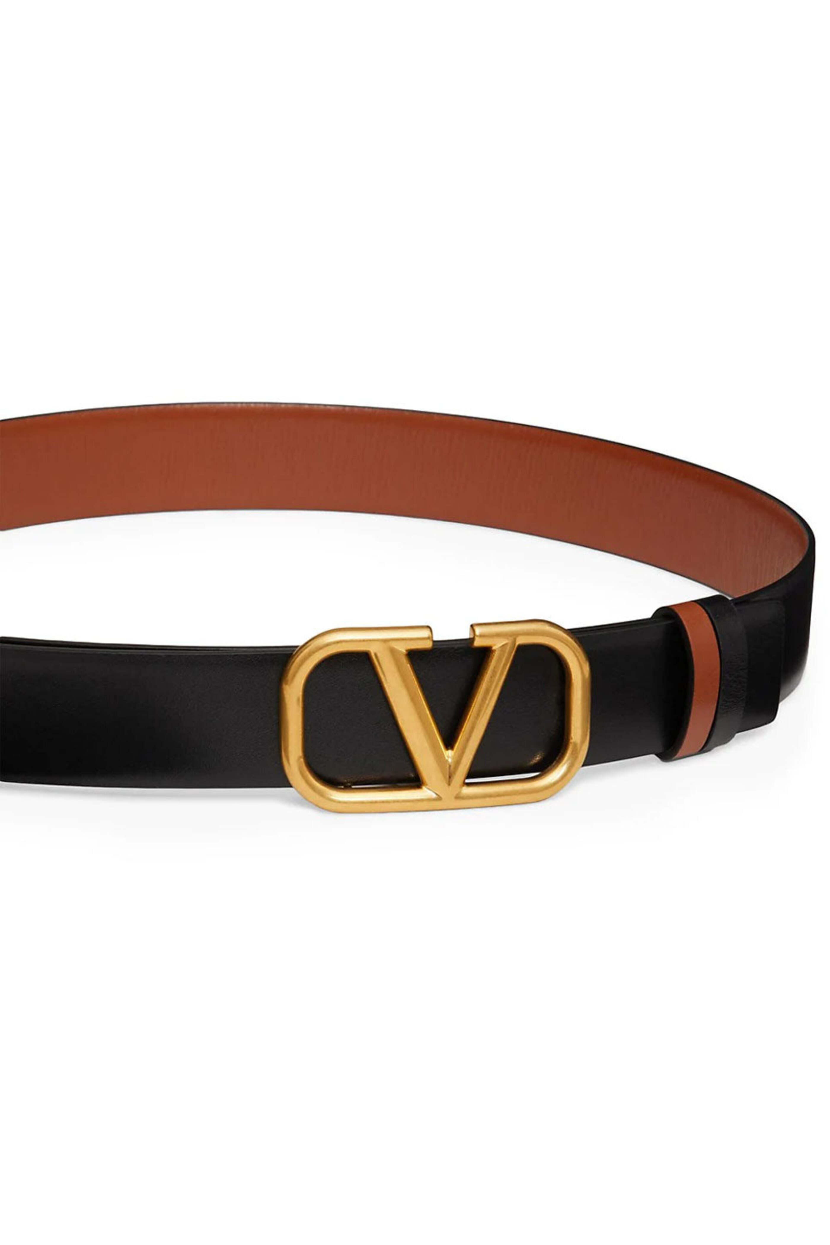 - Valentino Garavani V-Logo Reversible Belt in Brown and Black