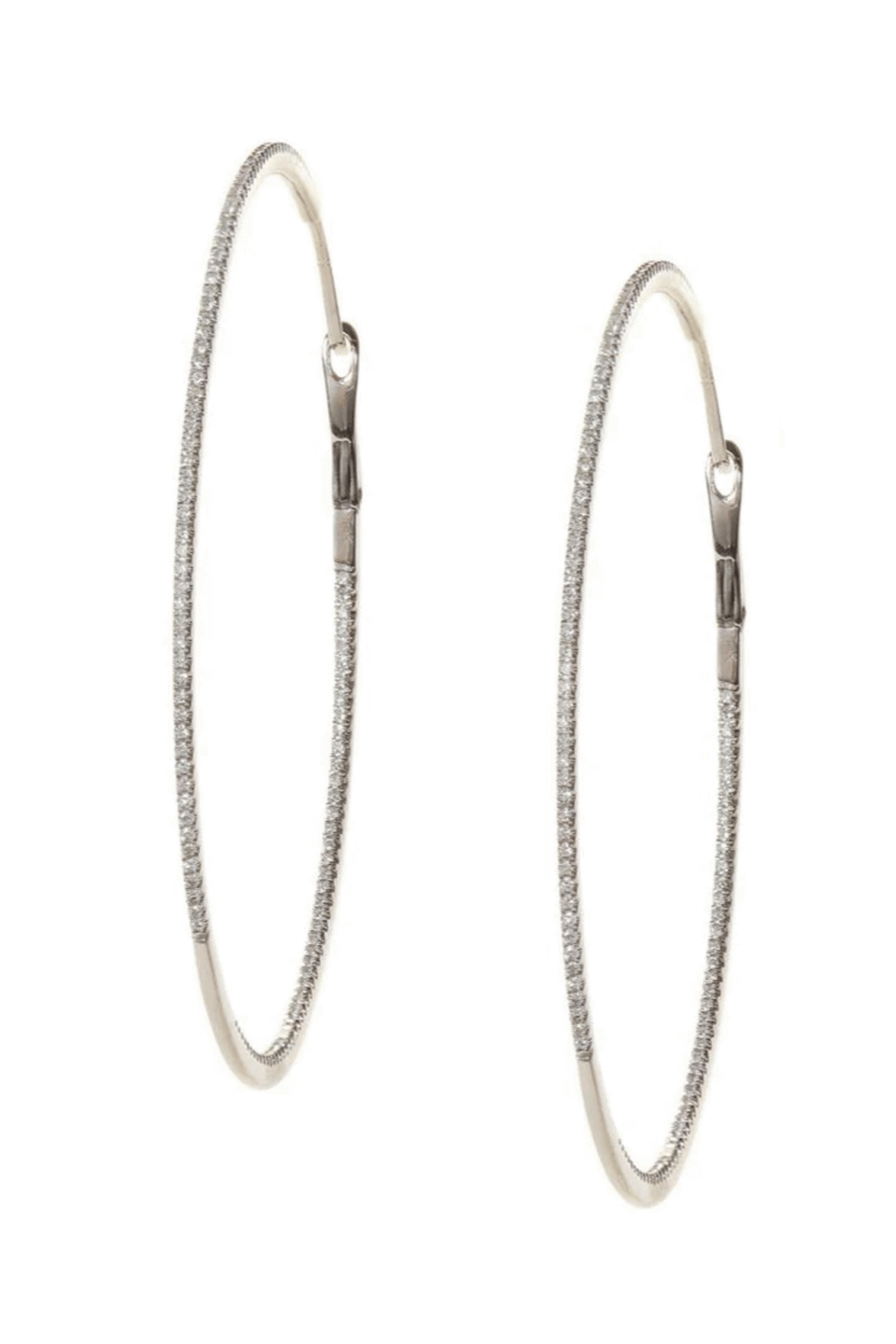 Kai Linz Large Diamond Hoop Earrings. 14k white gold. Diamond 1.75 total carat weight. Lined with pavé diamond. Hoop style. 2 D. Latch back.