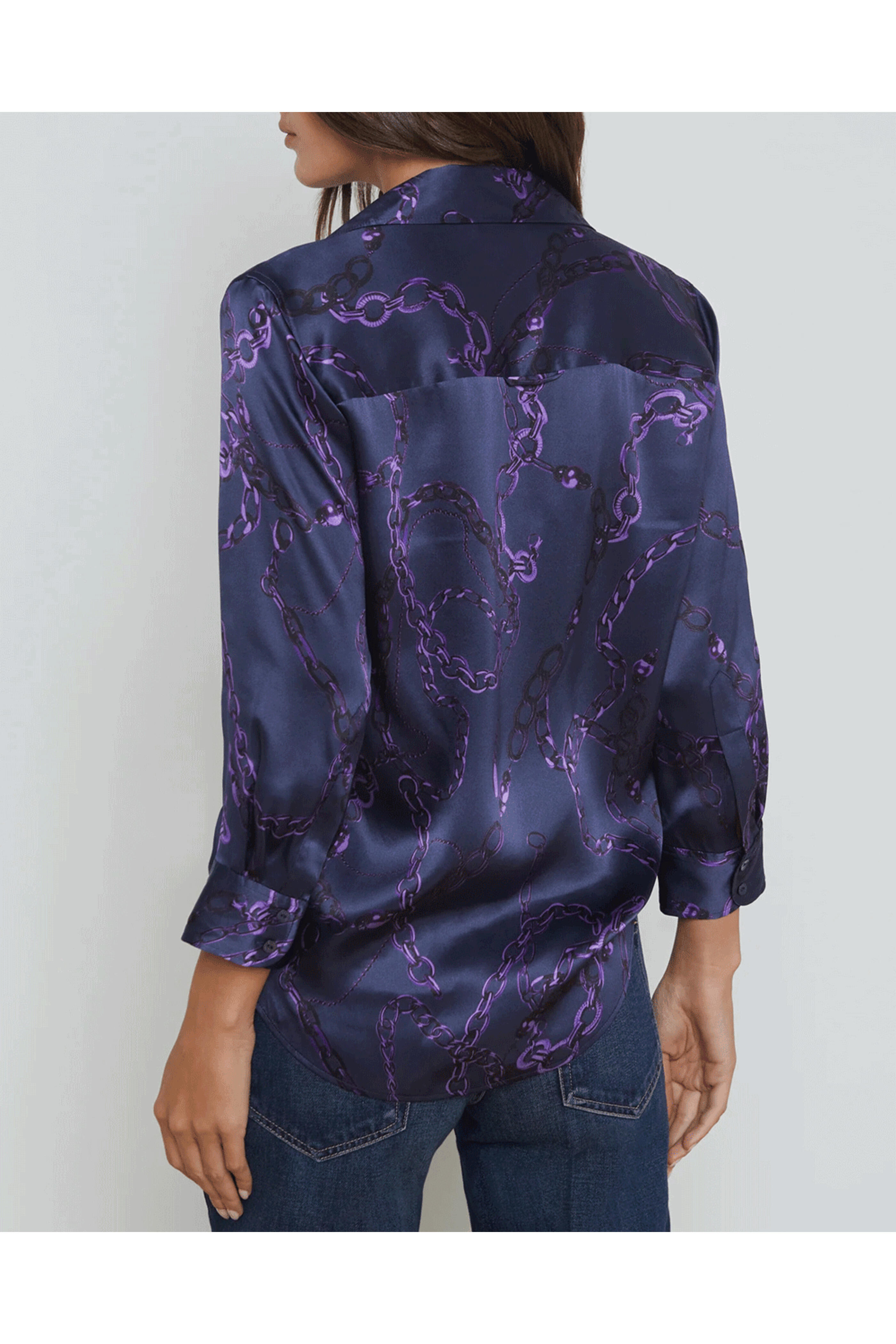 - L'Agence Midnight Purple Sketch Chain Dani Blouse