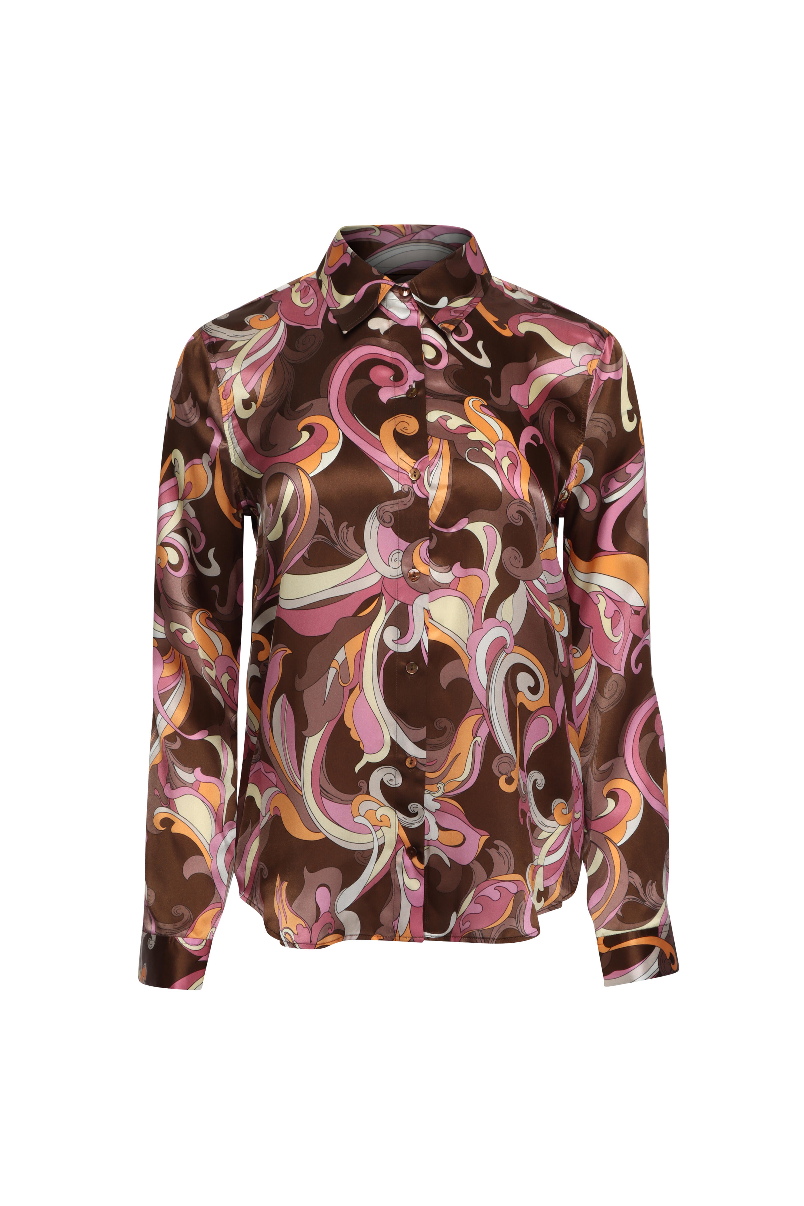 Tyler Brown & Pink Abstract Swirl Silk Blouse