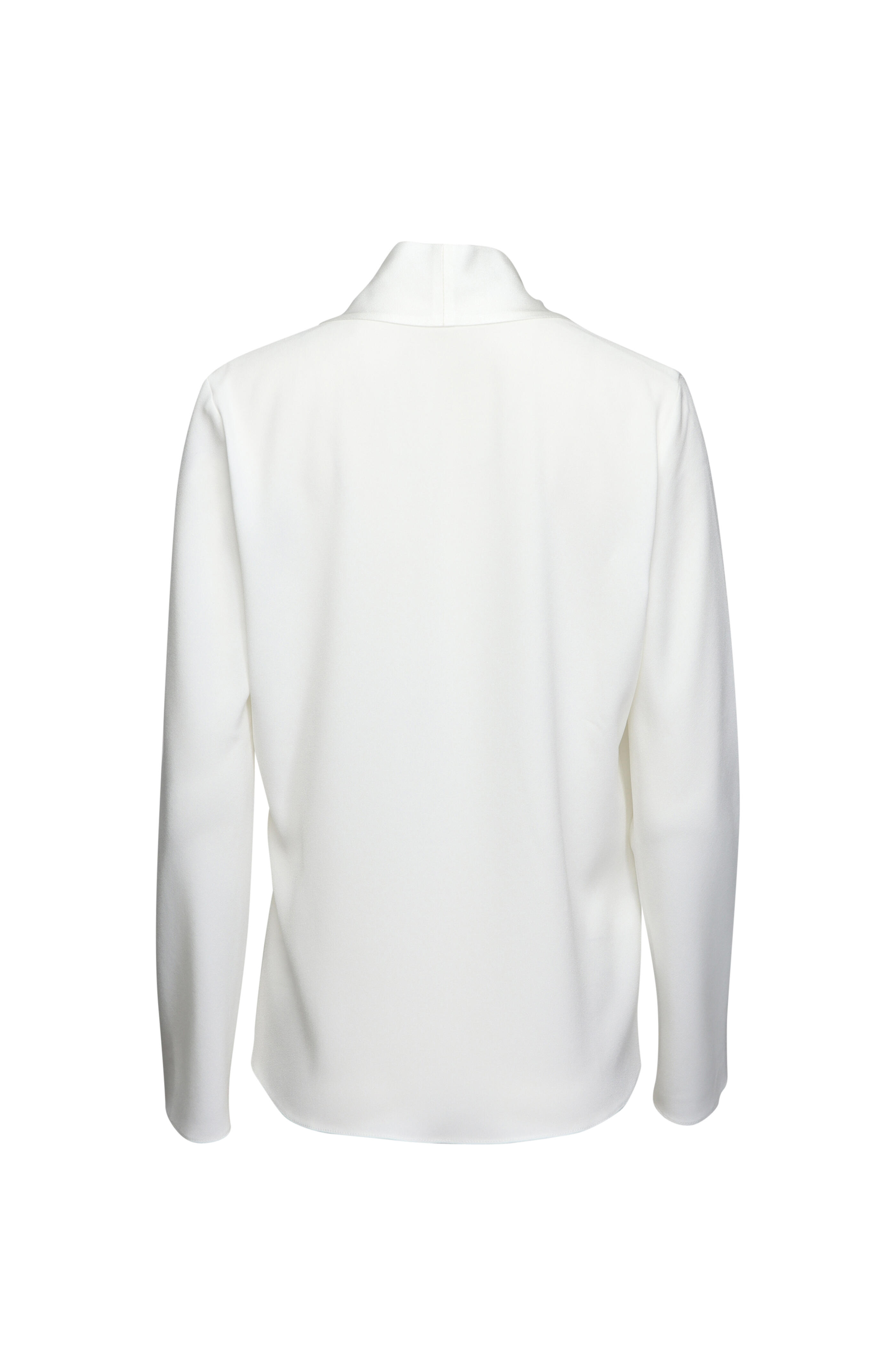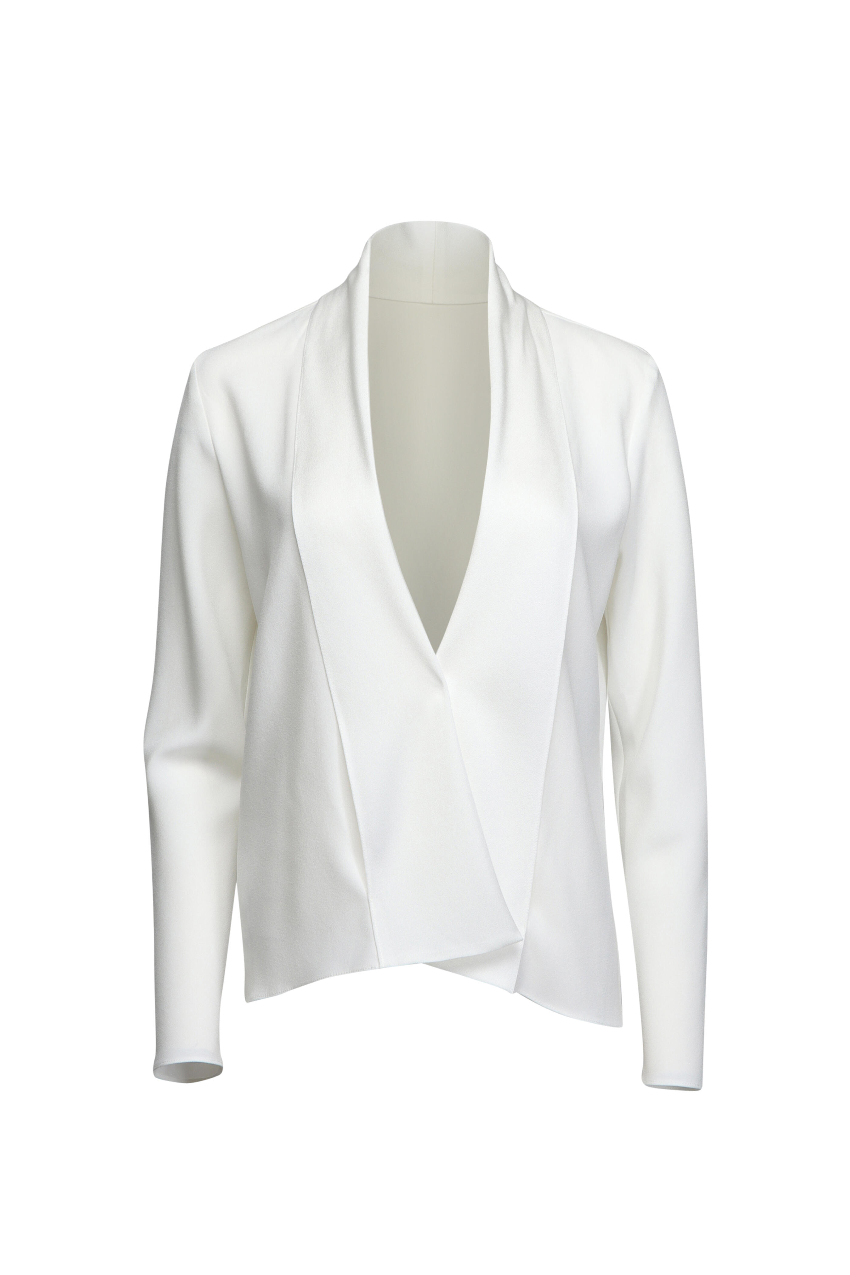 Open front. Long sleeves. Relaxed fit. Made in USA. 100% triacetate. Dry clean.
