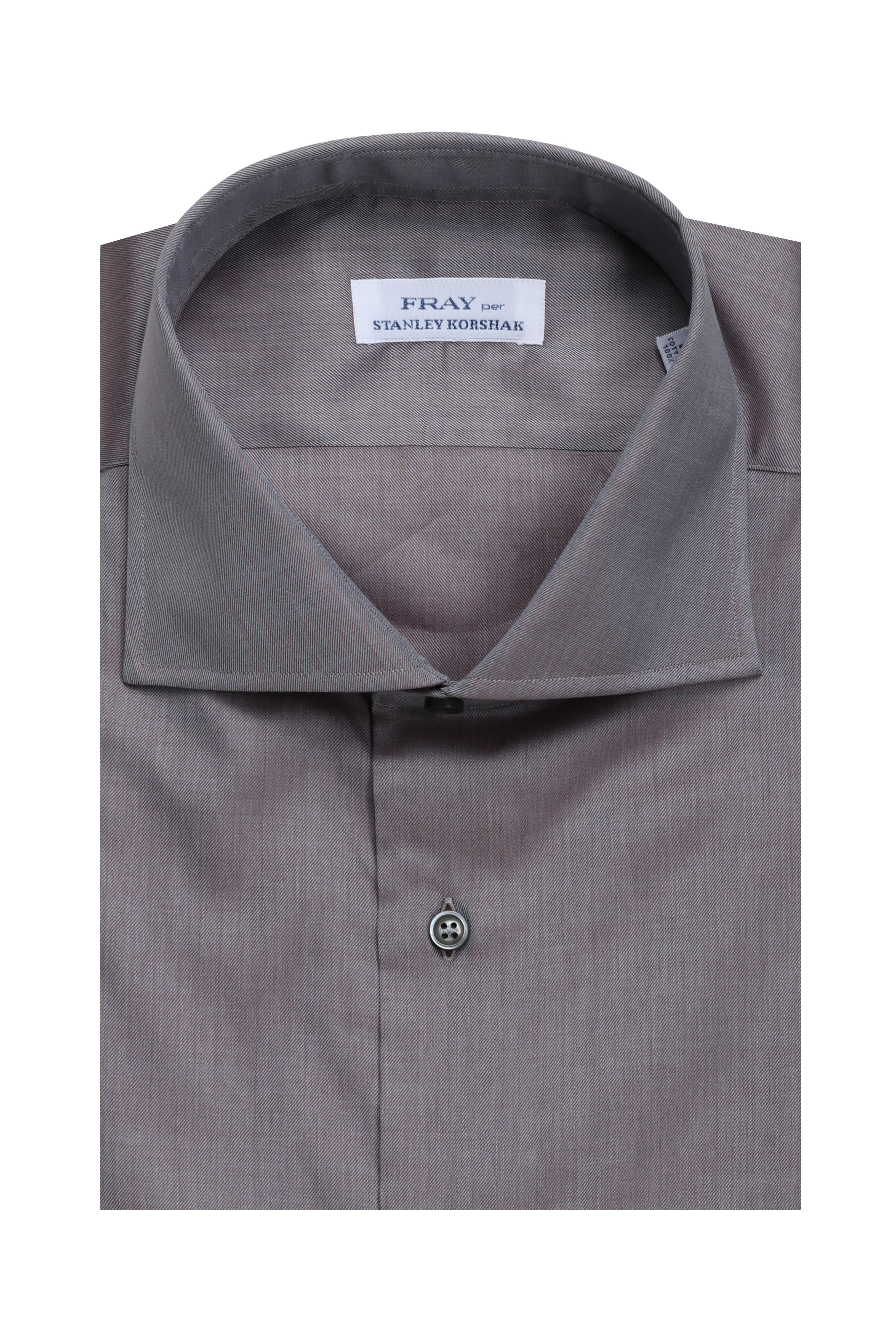 Spread collar. French front button placket. Single button barrel cuffs. Made in Italy. 100% cotton. Dry clean.