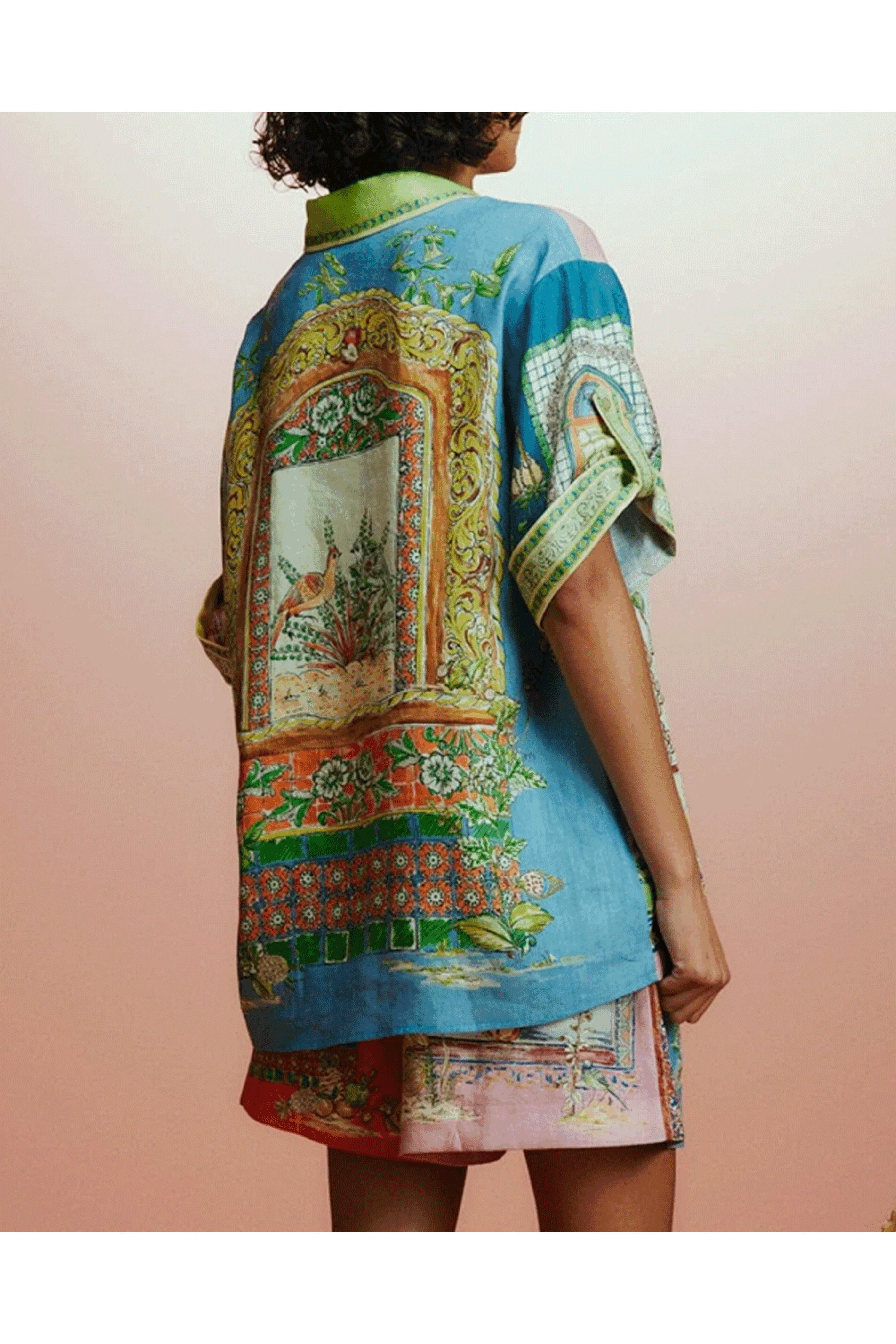 Alemais Multi Monte Shirt. Point collar. Rolled sleeves; button closure. Button down closure. Boxy silhouette. 100% linen.