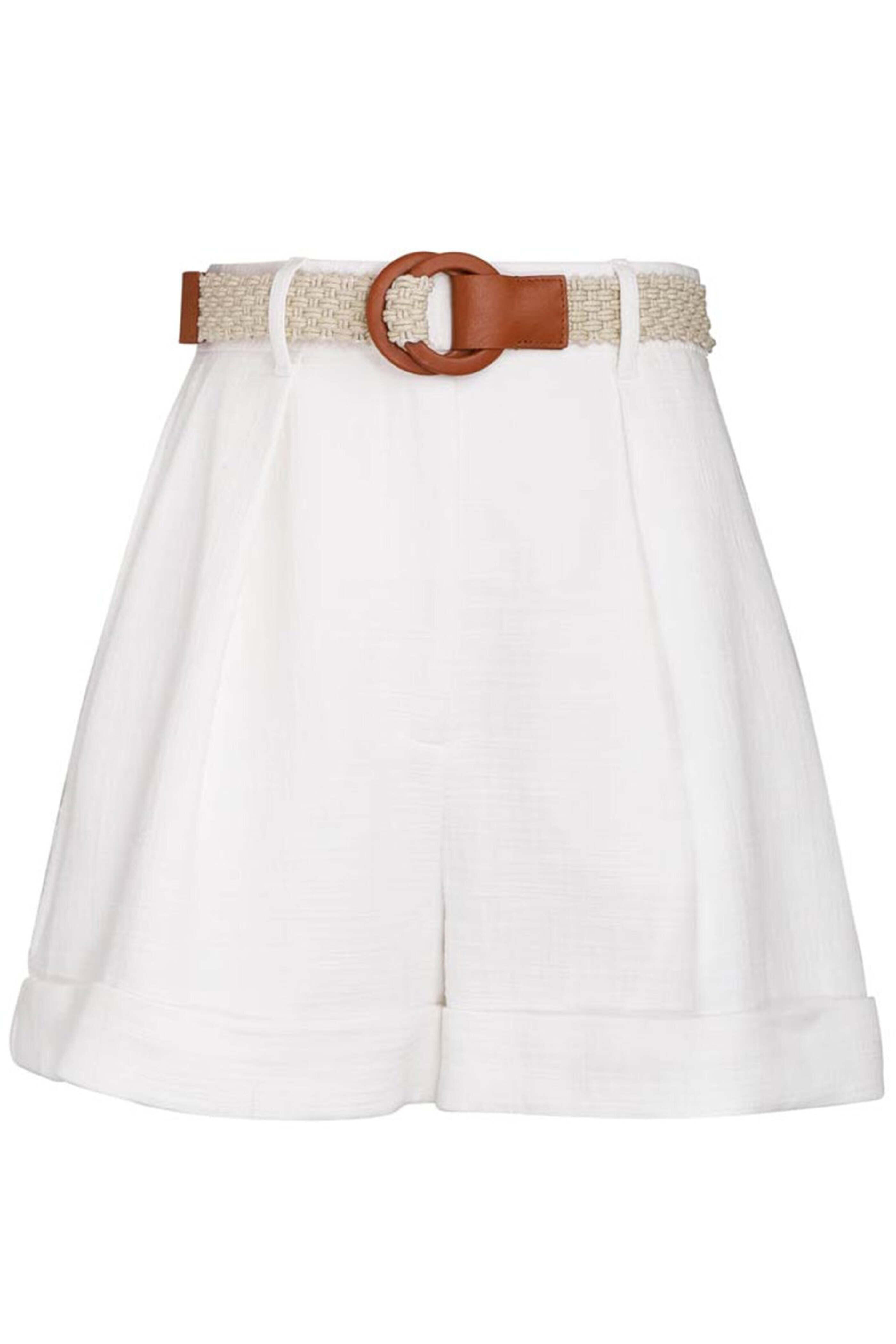Zimmermann Ivory August Cuffed Short. High rise. Hook and eye closure. Zip fly. Belt loops. Side slip pockets. Wide through leg. Cuffed hem. Short length. Lined. 100% cotton outer and lining.