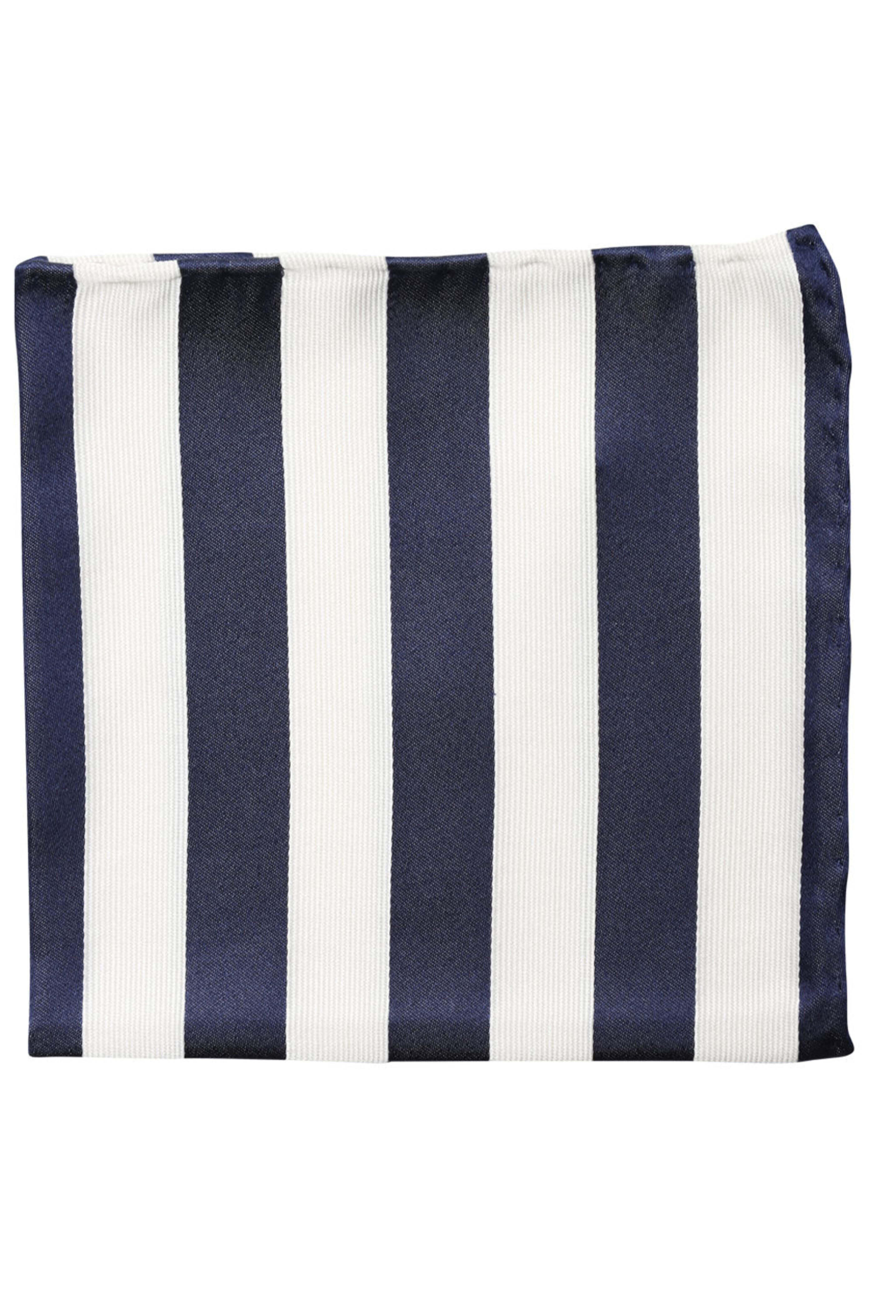 - Italo Ferretti Navy and White Striped Silk Pocket Square