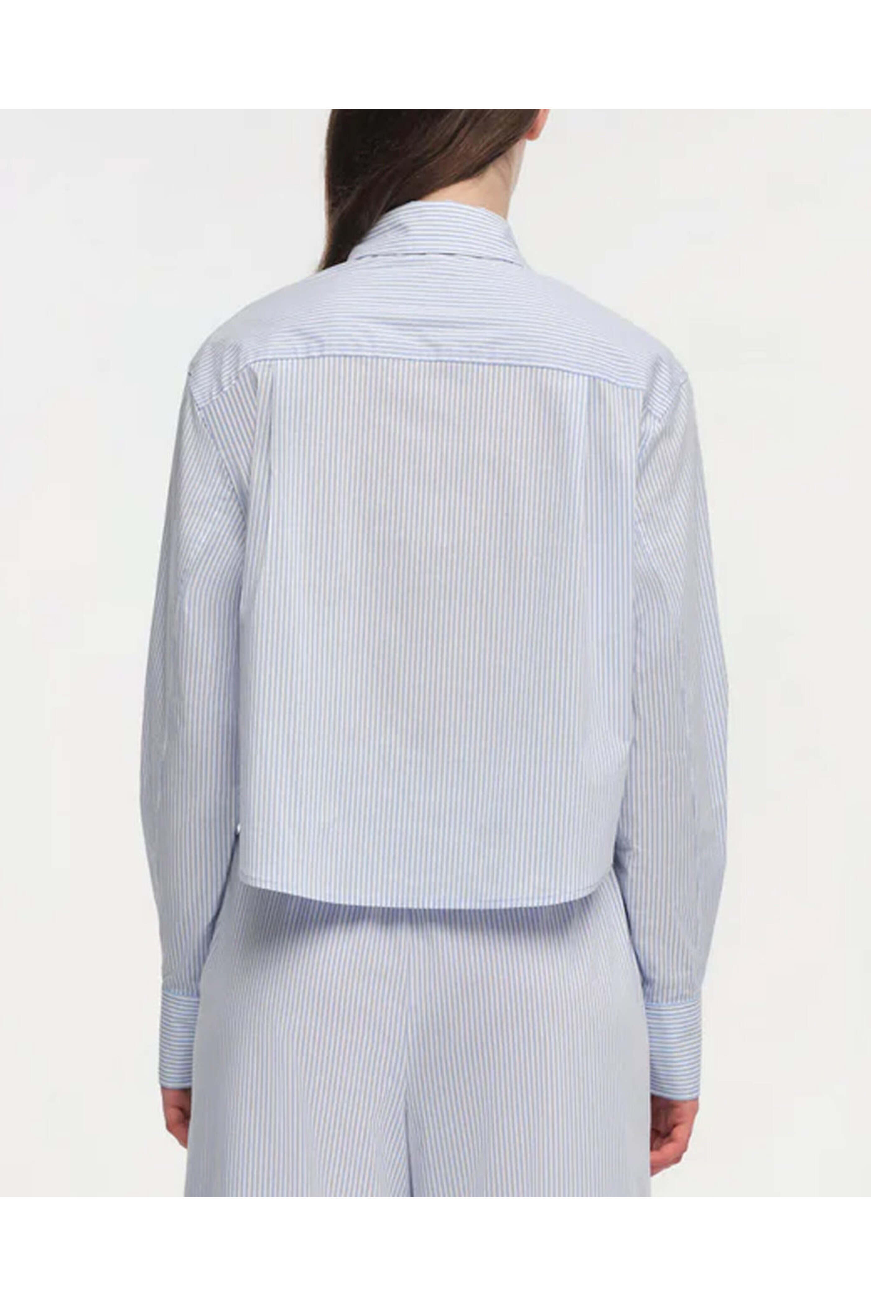 - SIMKHAI Blue Stripe Renata Crop Button Up Shirt