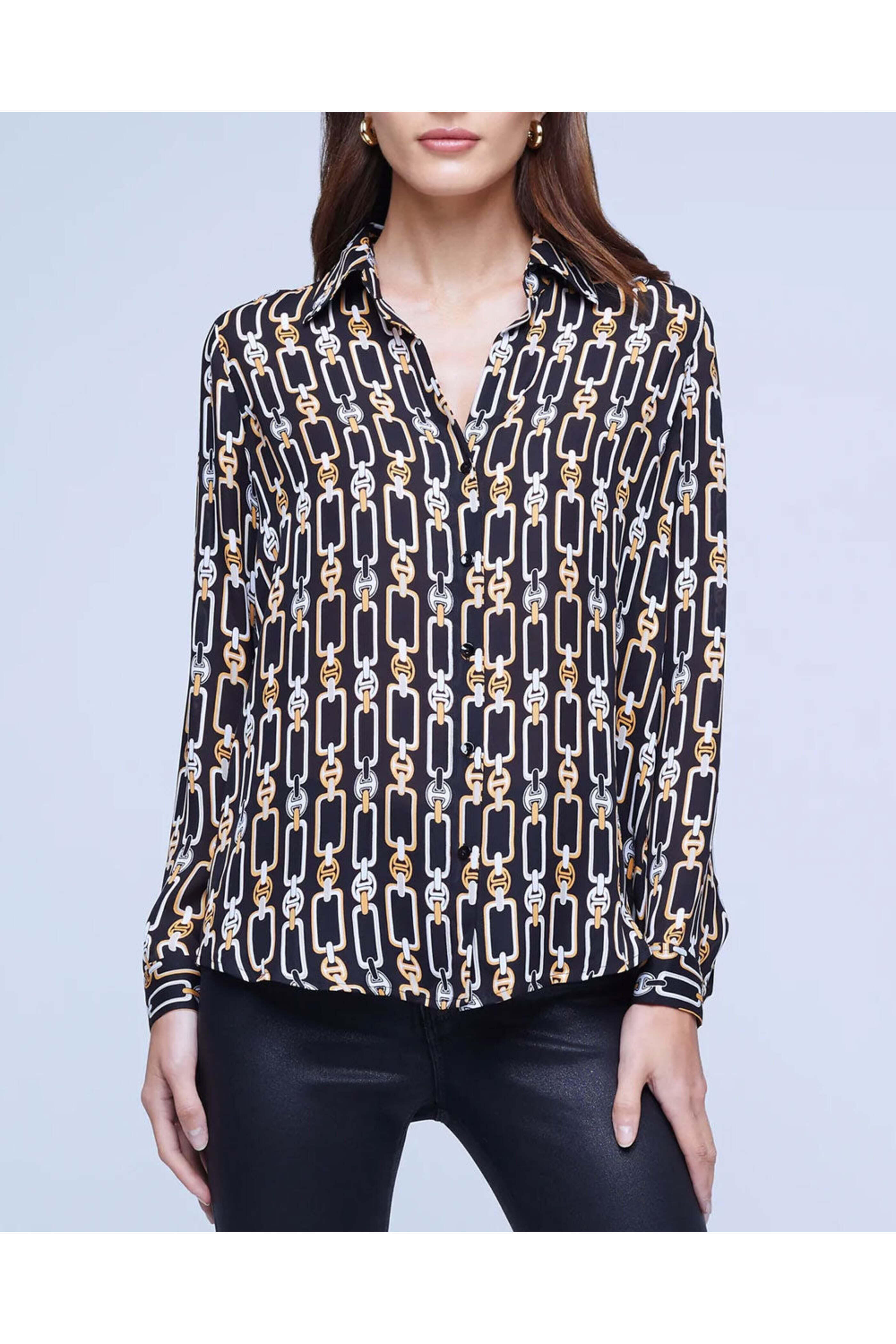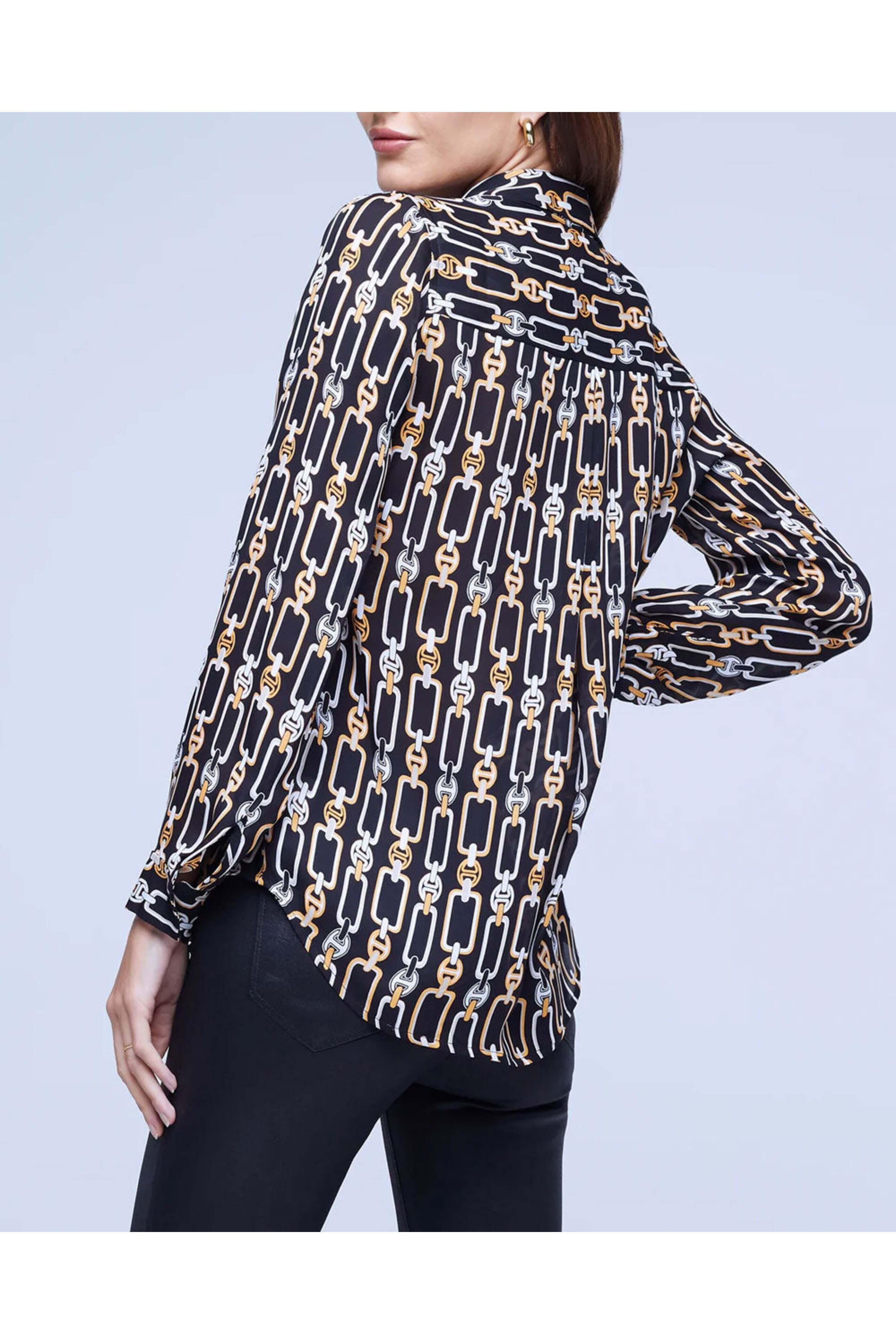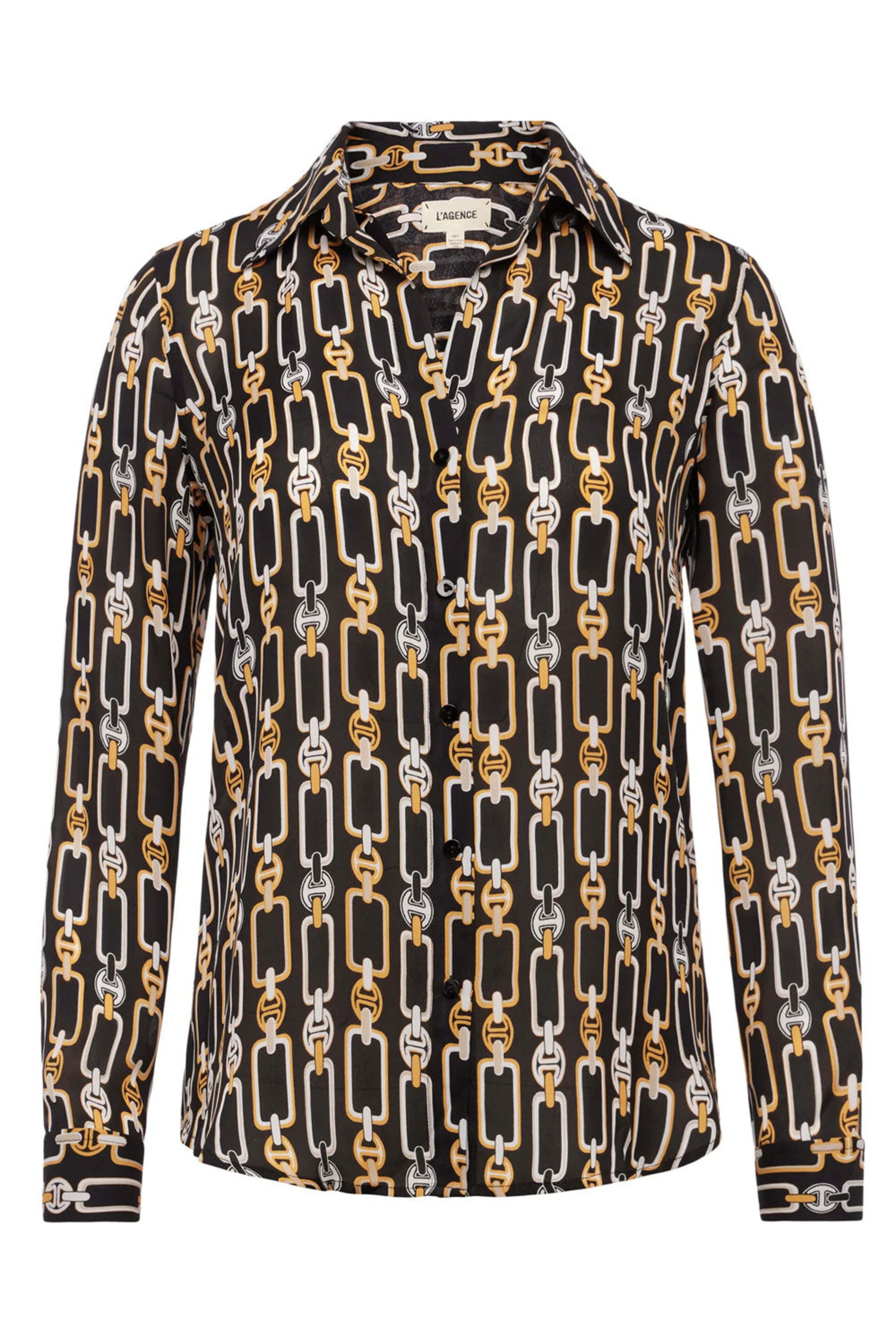 - LAgence Black Chain Print Long Sleeve Nina Blouse