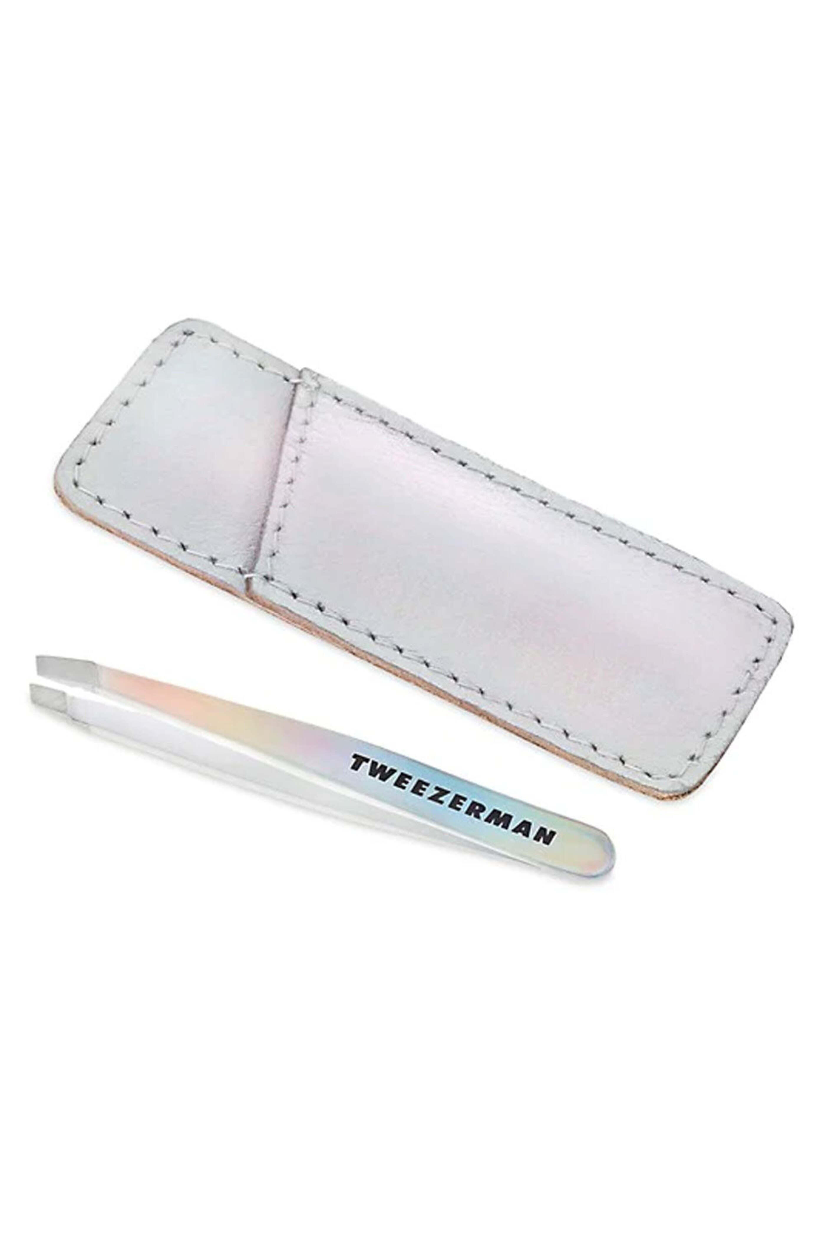Tweezerman Frost Mini Slant Tweezer. Perfectly aligned. Hand-filed tips close evenly and firmly to remove hair from the root. Limited edition.