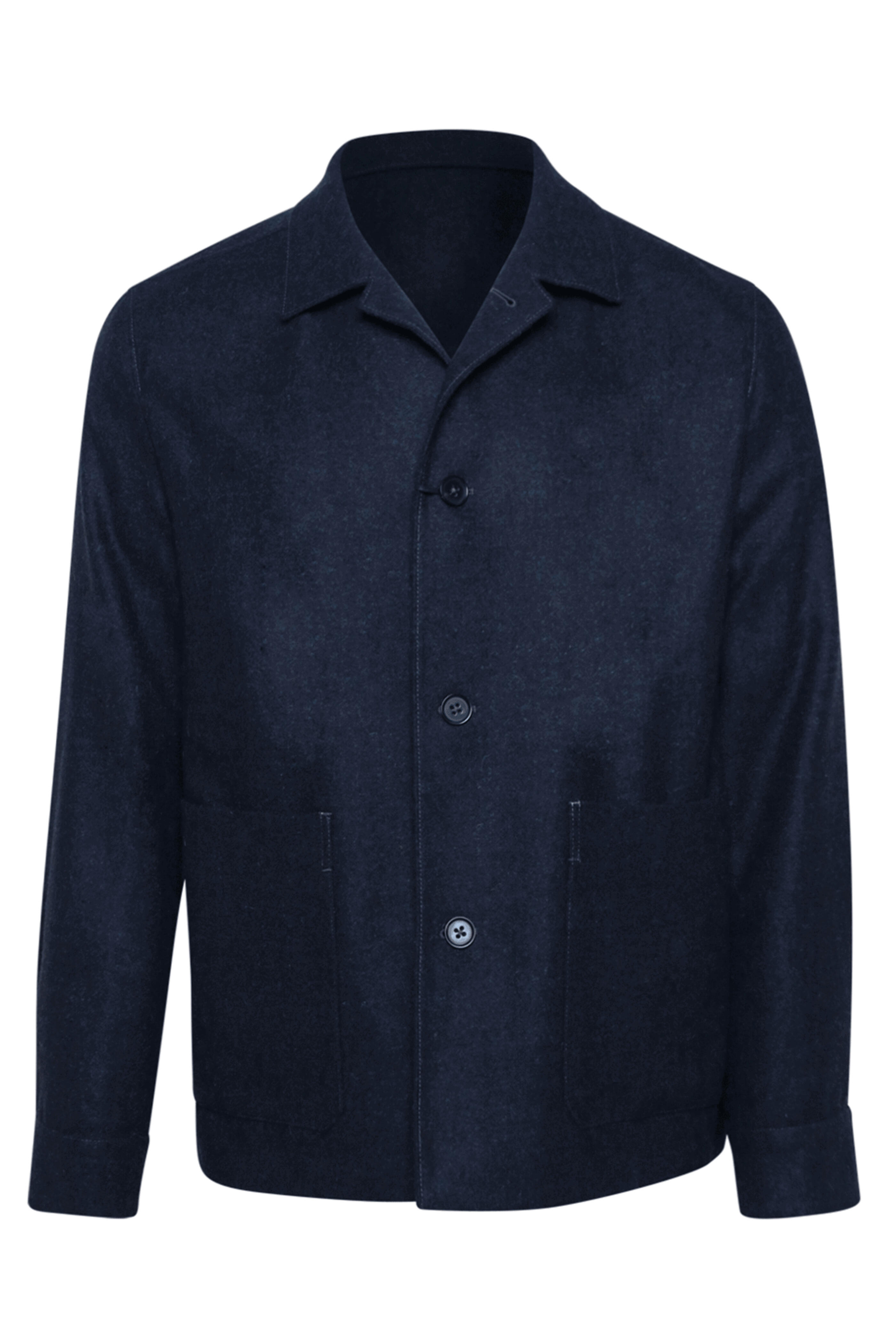 Zegna Dark Grey Wool Blend Chore Jacket. Spread collar. Button down front. Long sleeves. Single button barrel cuff. Waist patch pockets. Tonal stitching. Cupro lining. Made in Italy. Dry clean only. 58% Alpaca fiber 27% wool 15% Polyamide.