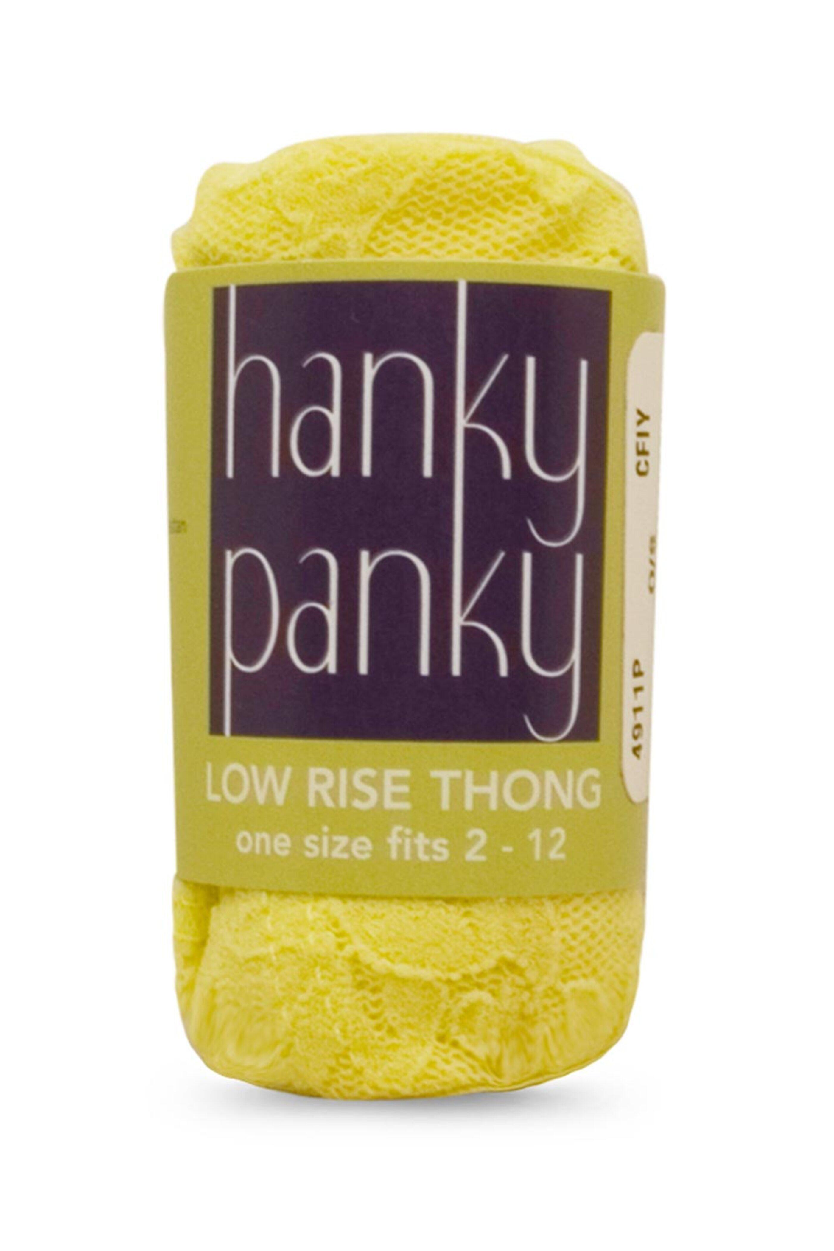 Hanky Panky Citrus Fuzz Low Rise Thong. Low rise. Thong silhouette. Lace detail throughout. One size fits 2-12. 100% nylon outer, 90% nylon, 10% spandex trim, 100% cotton trim.