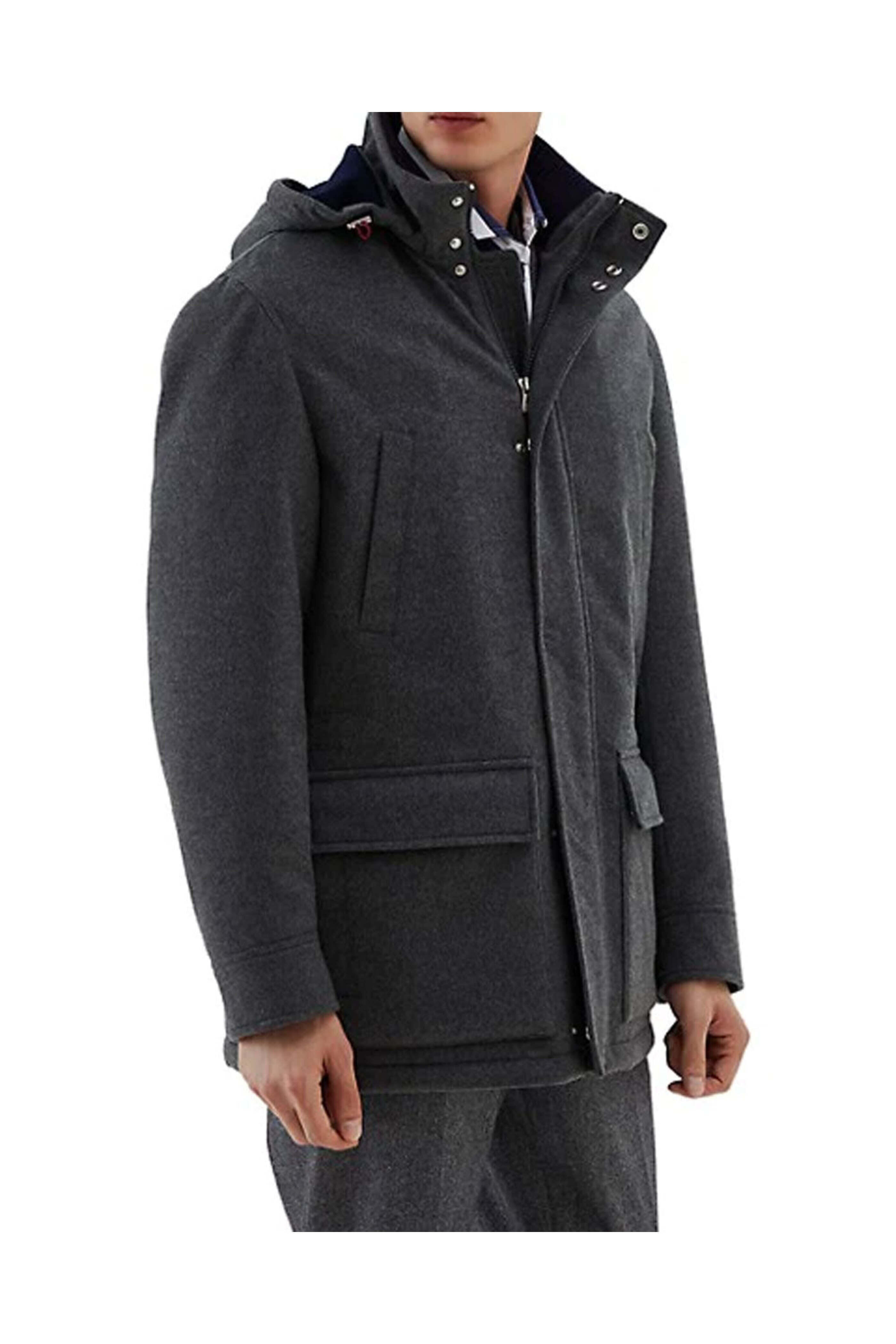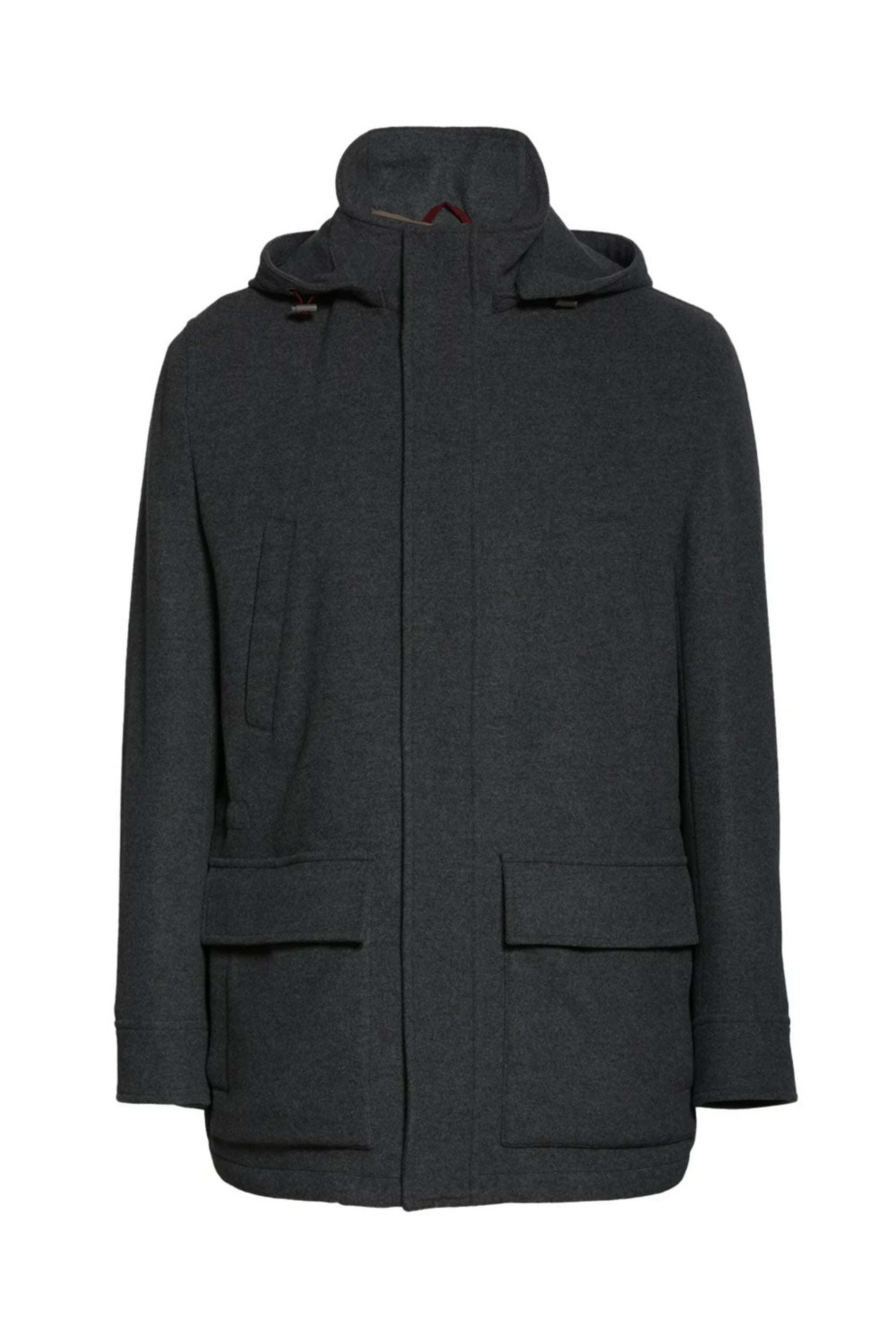 - Brunello Cucinelli Dark Grey Treated Cashmere Parka