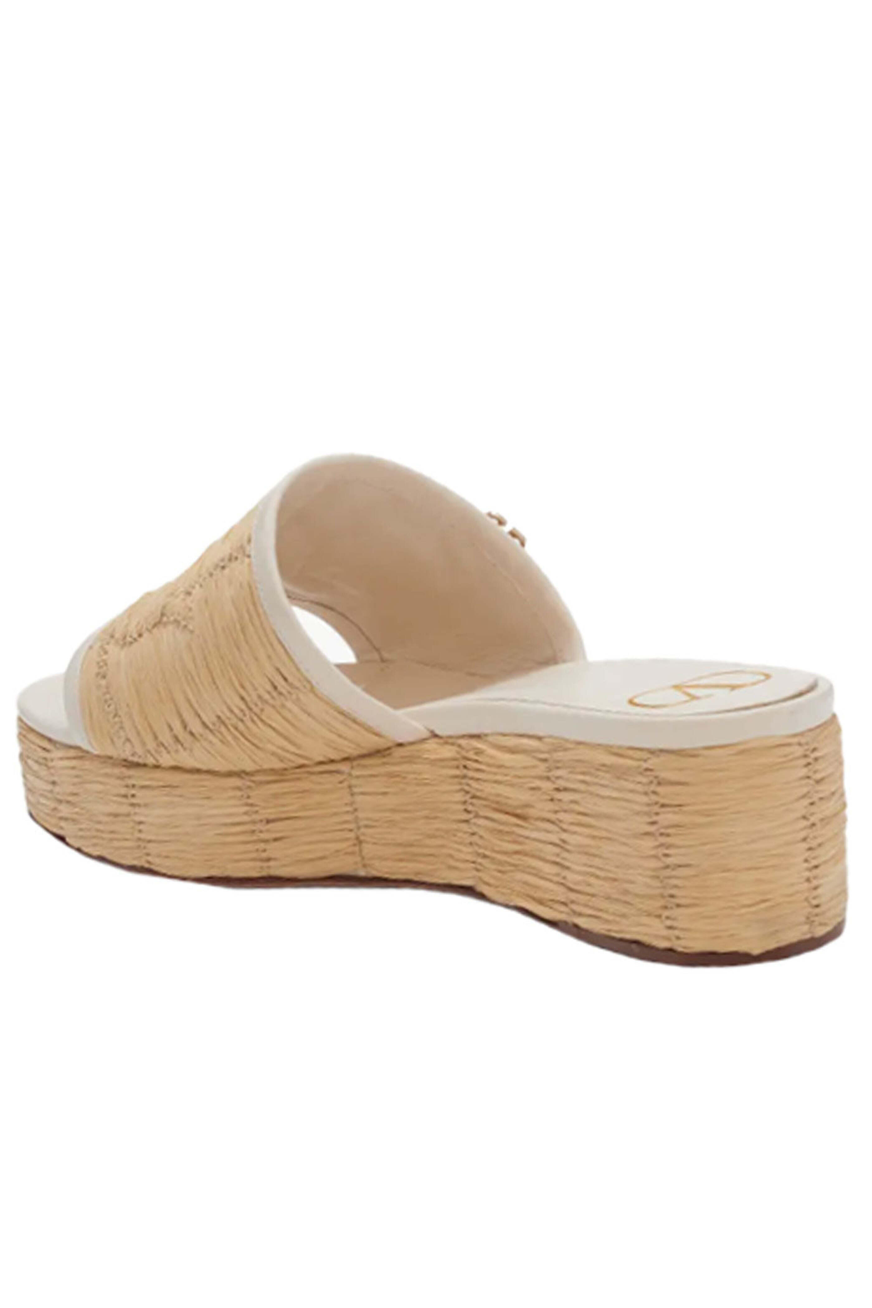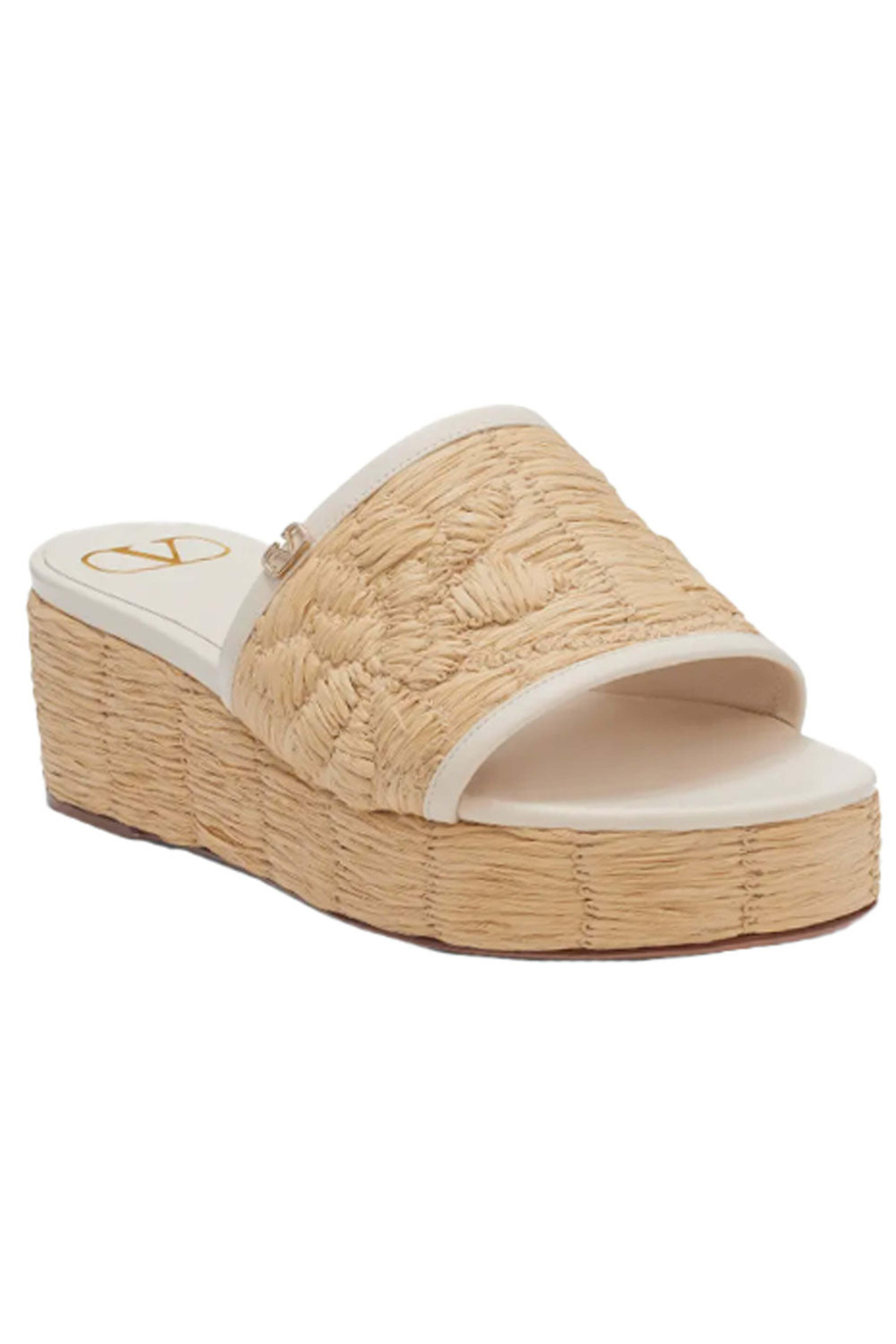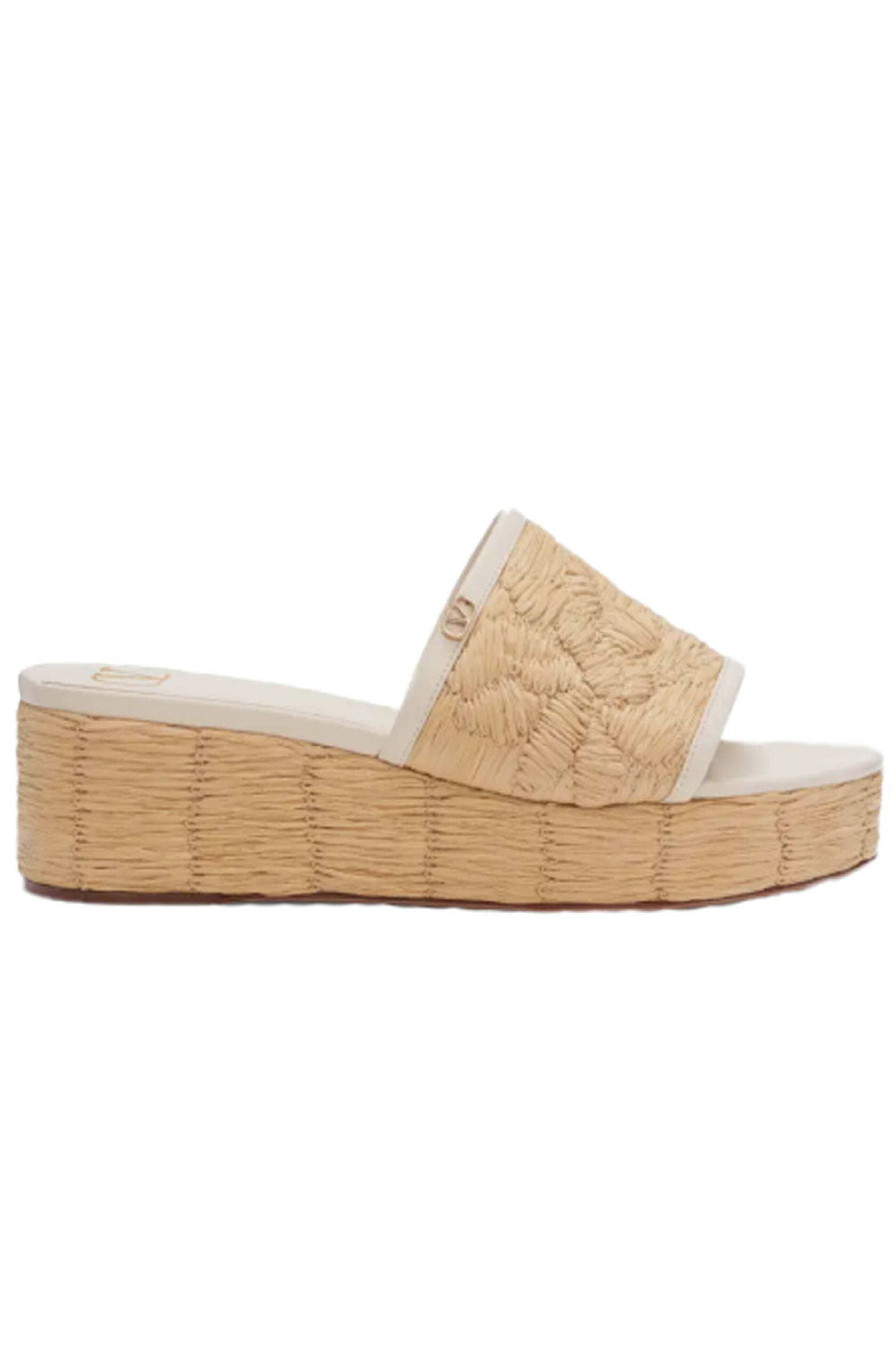 - Valentino Raflower Platform Wedge Sandal in Ivory and Natural