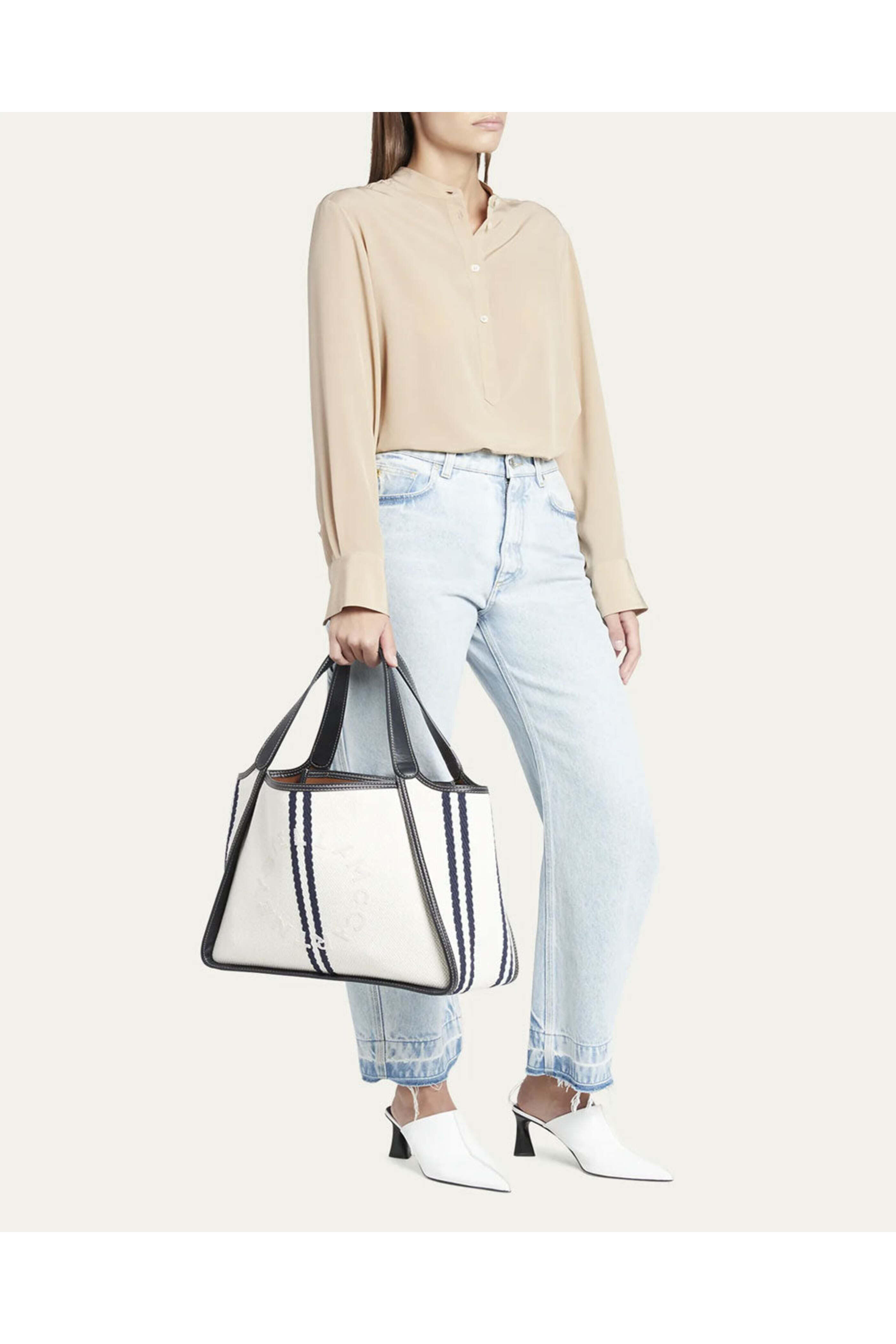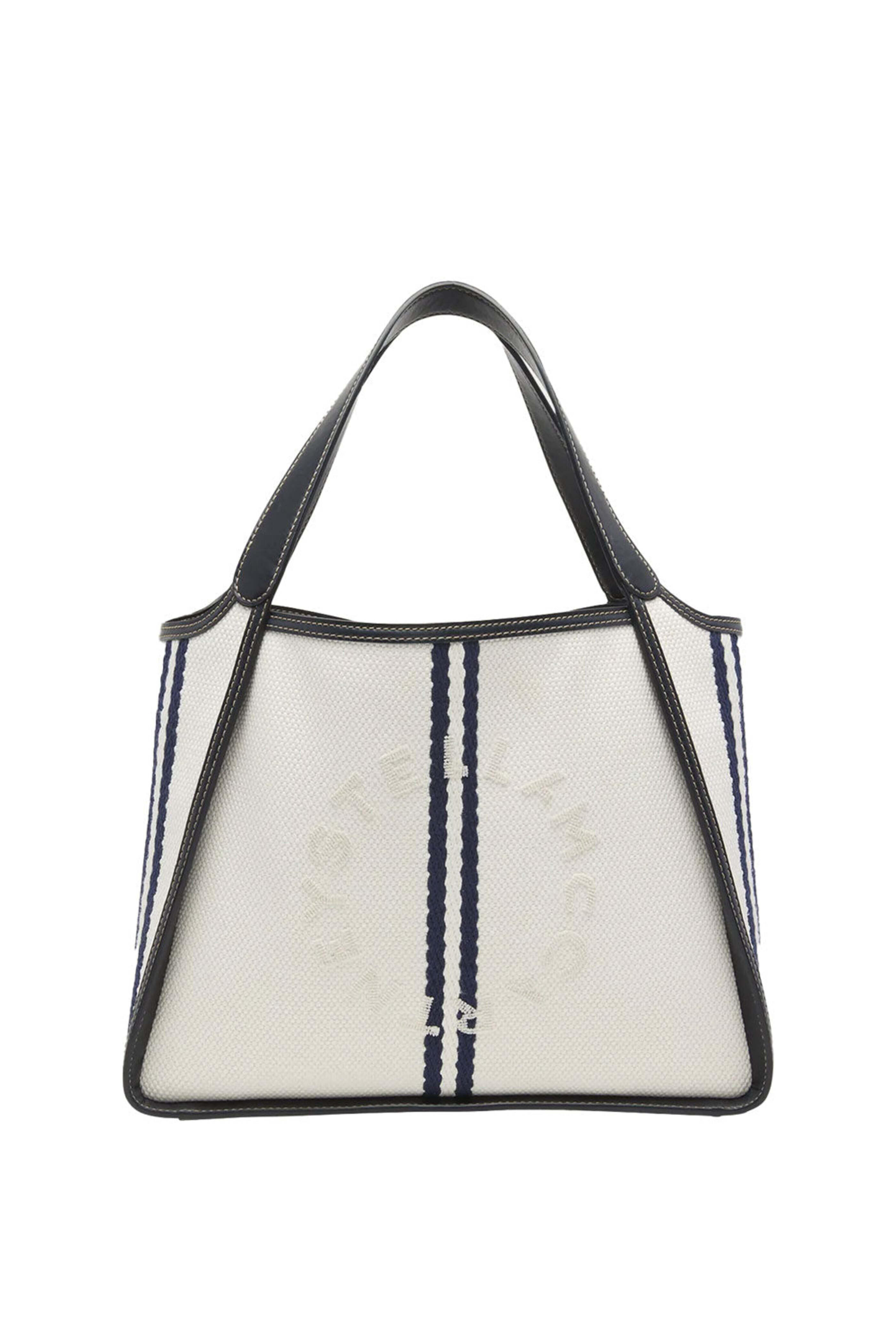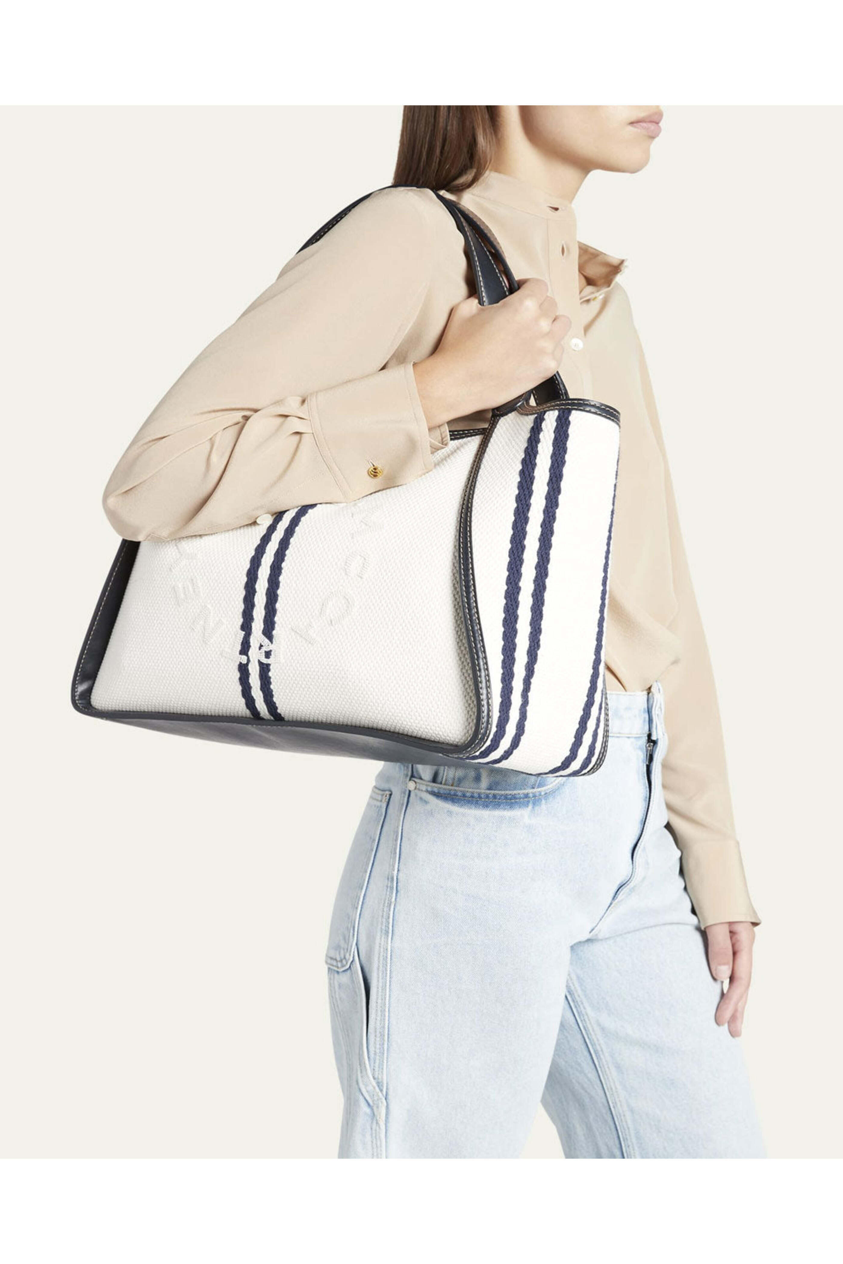 - Stella McCartney Logo Striped Eco Canvas Tote Bag in White and Ink