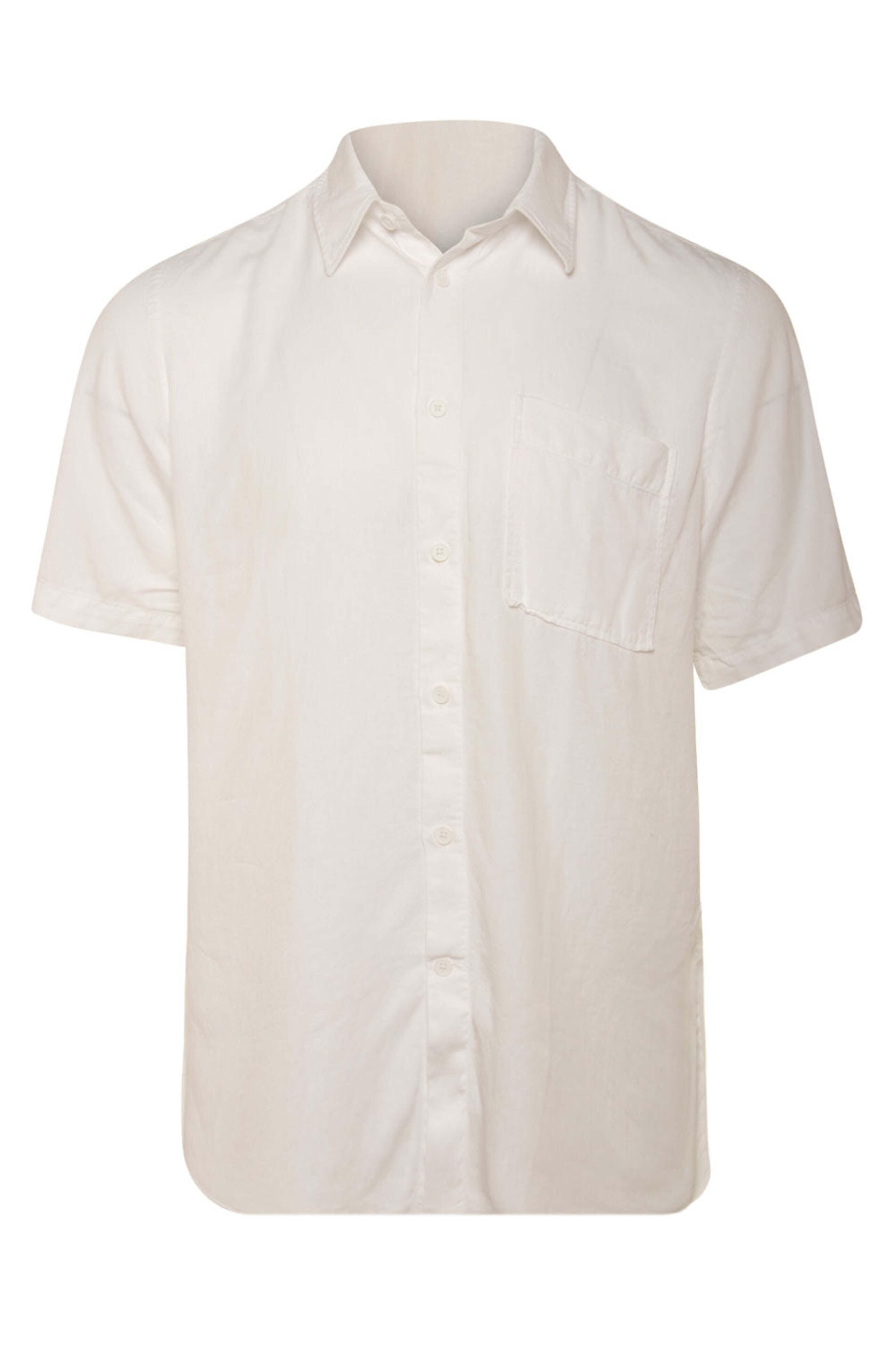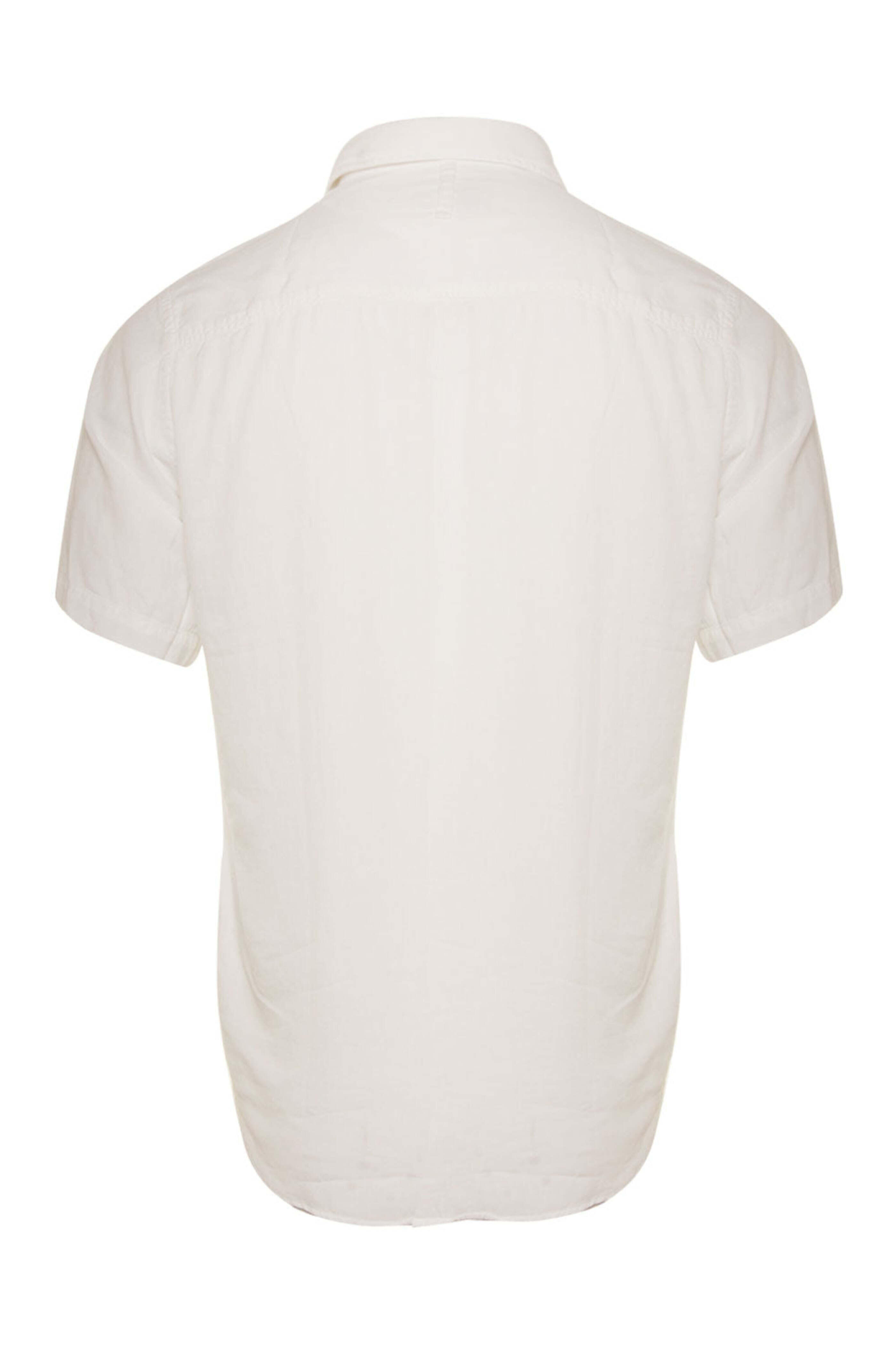 NN07 Arne Short Sleeve Shirt in White. Point collar. Removable collar stays. Short sleeve. Button down. Front chest pocket. Curved hem. Regular fit. Made in Portugal. 50% cotton, 50% modal.