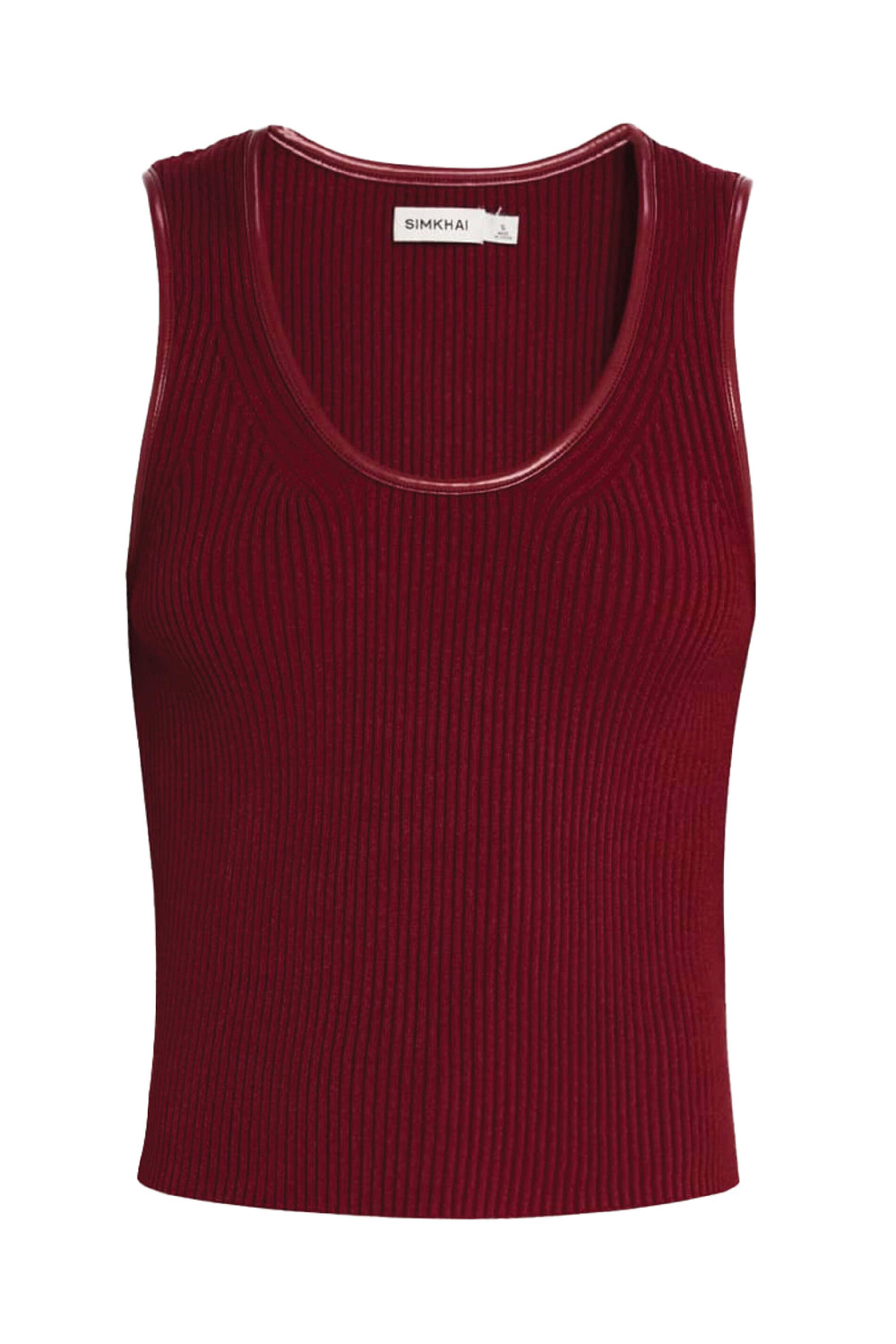 SIMKHAI Oxblood Cobain Tank. Scoop neck. Sleeveless. Slim silhouette. Ribbed throughout. Viscose, polyester.