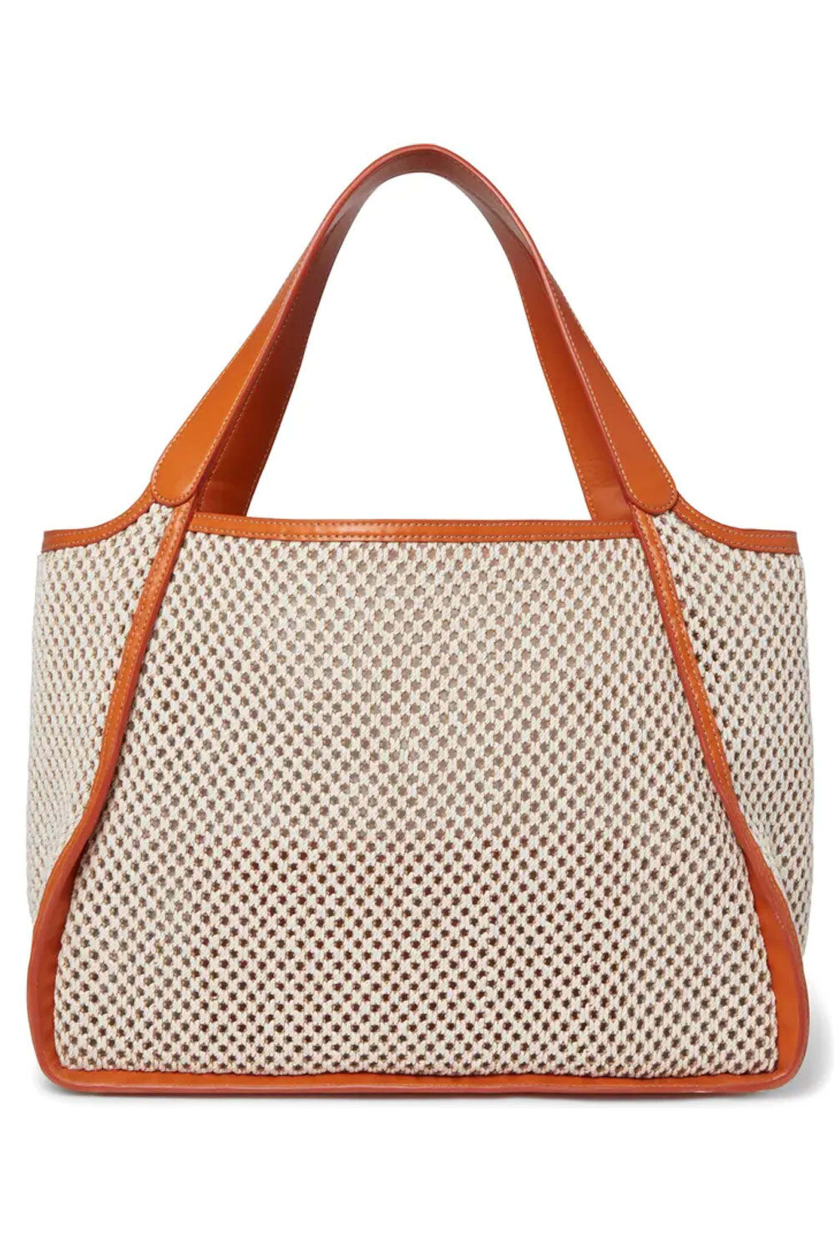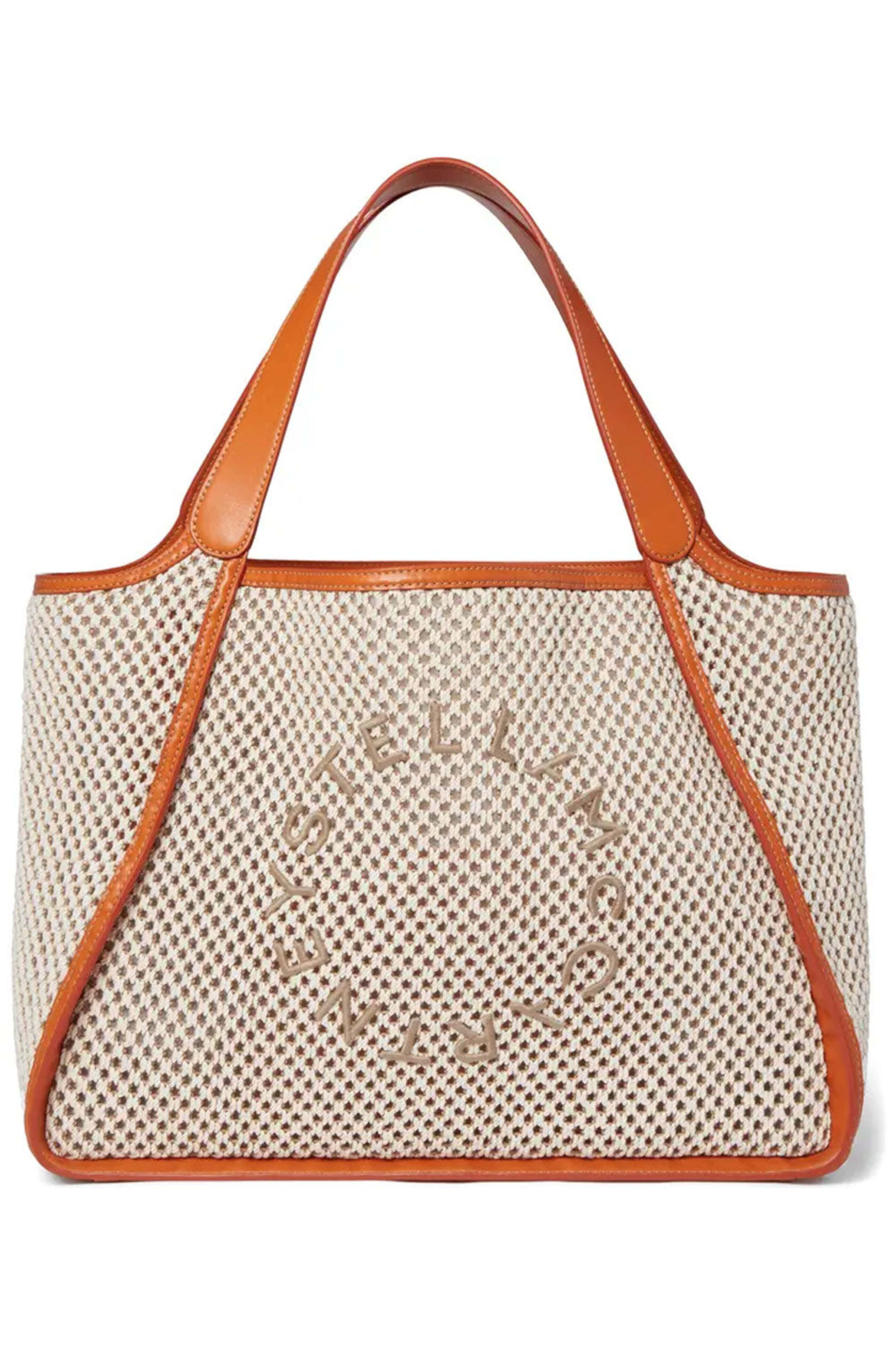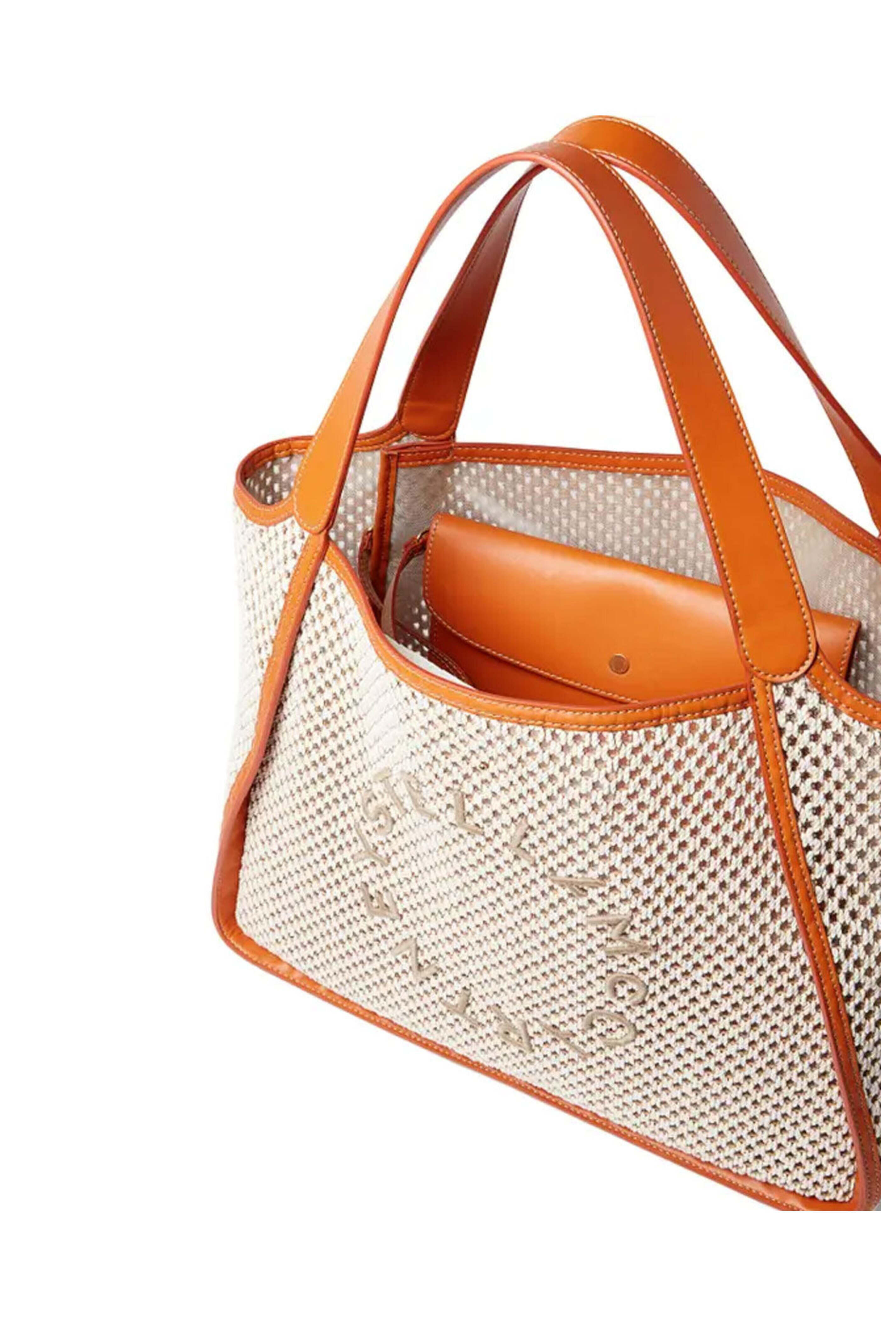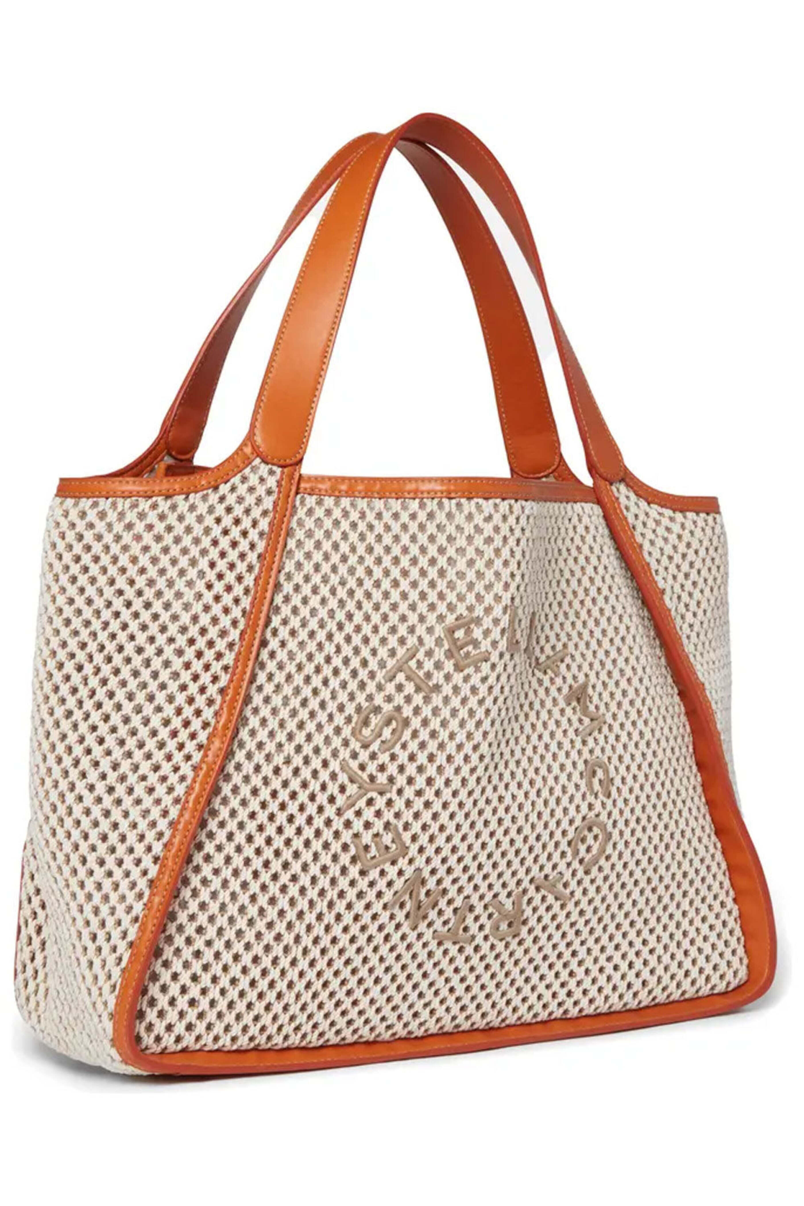 - Stella McCartney Embroidered Logo Rope Mesh Tote in Ivory/ Beige