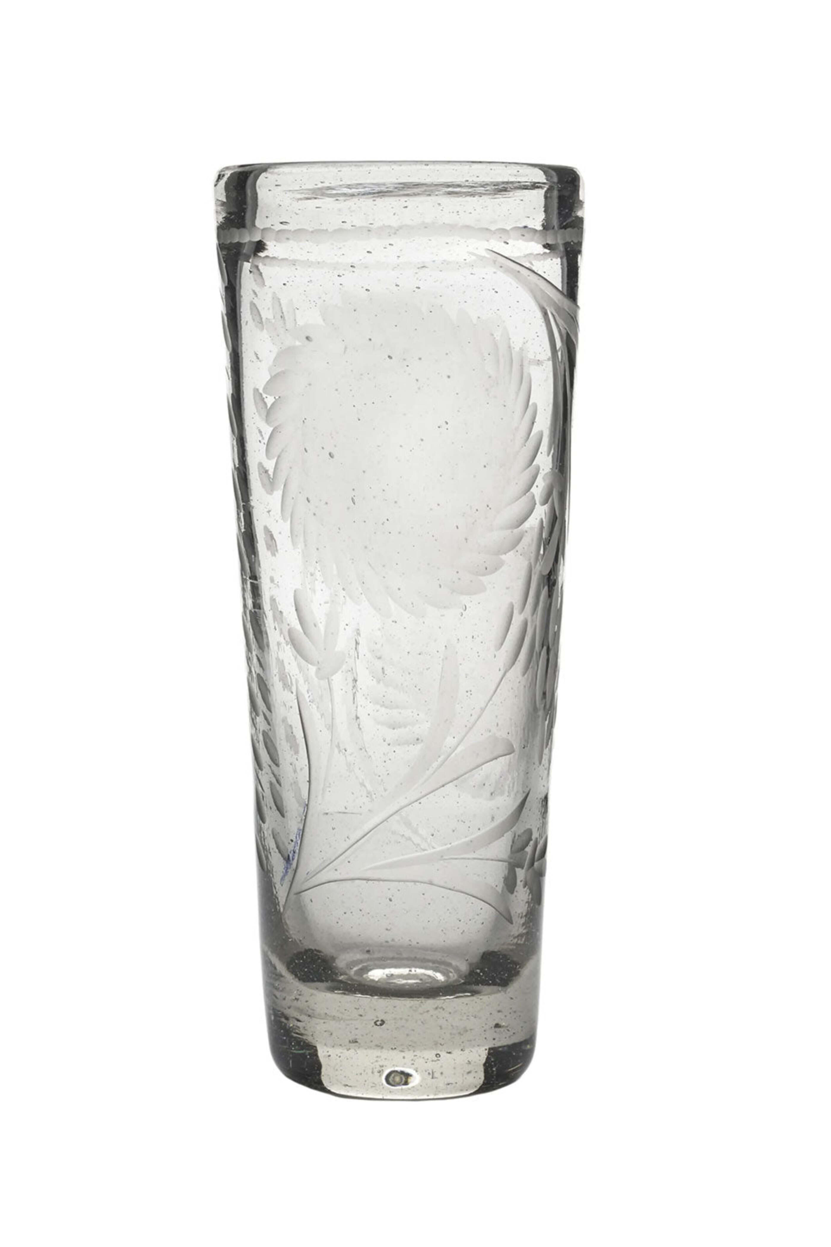 Jan Barboglio Alto Girasol Beer Glass. Mouth blown glass. Sunflower etching. 3 W x 8 H. Hand wash only.
