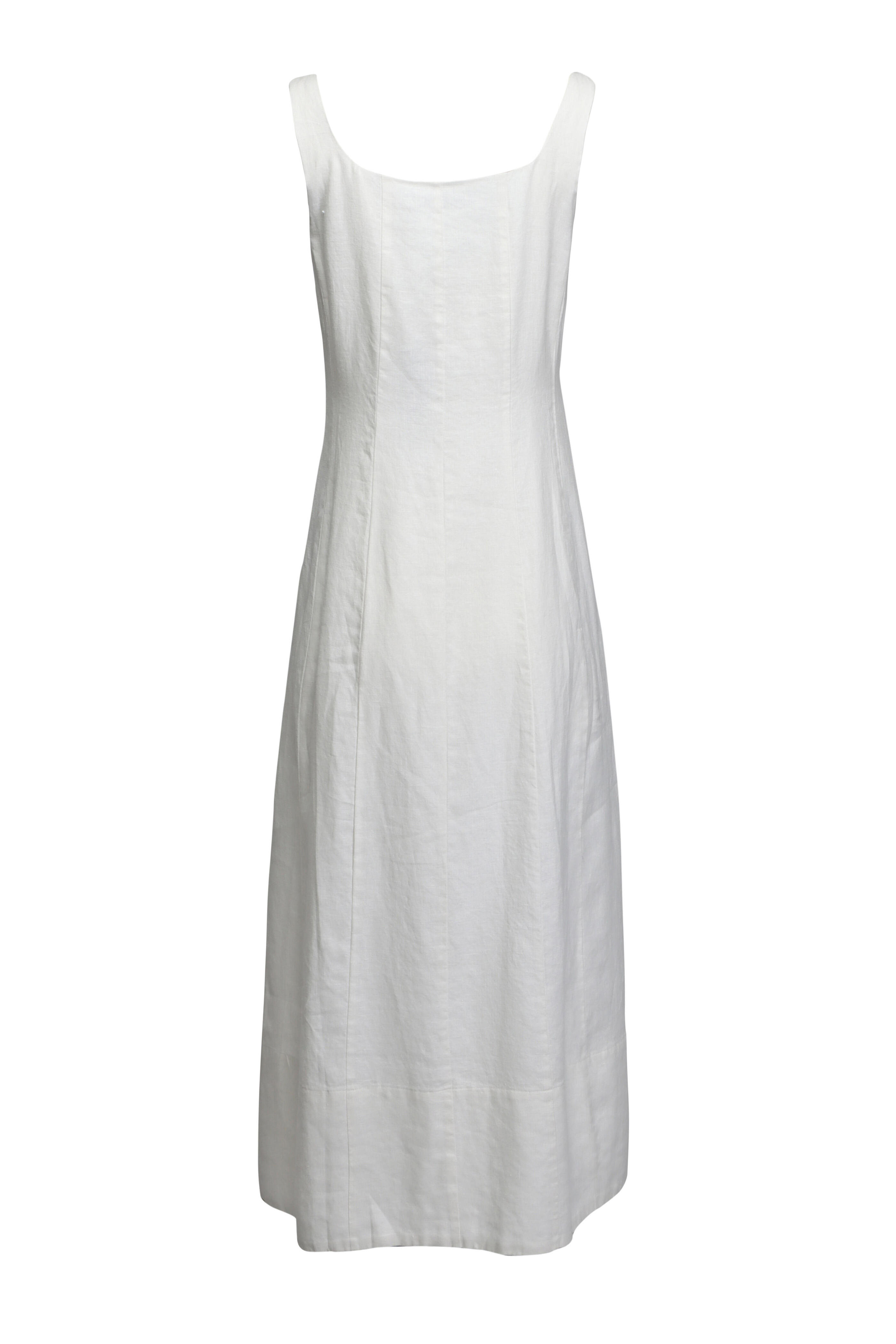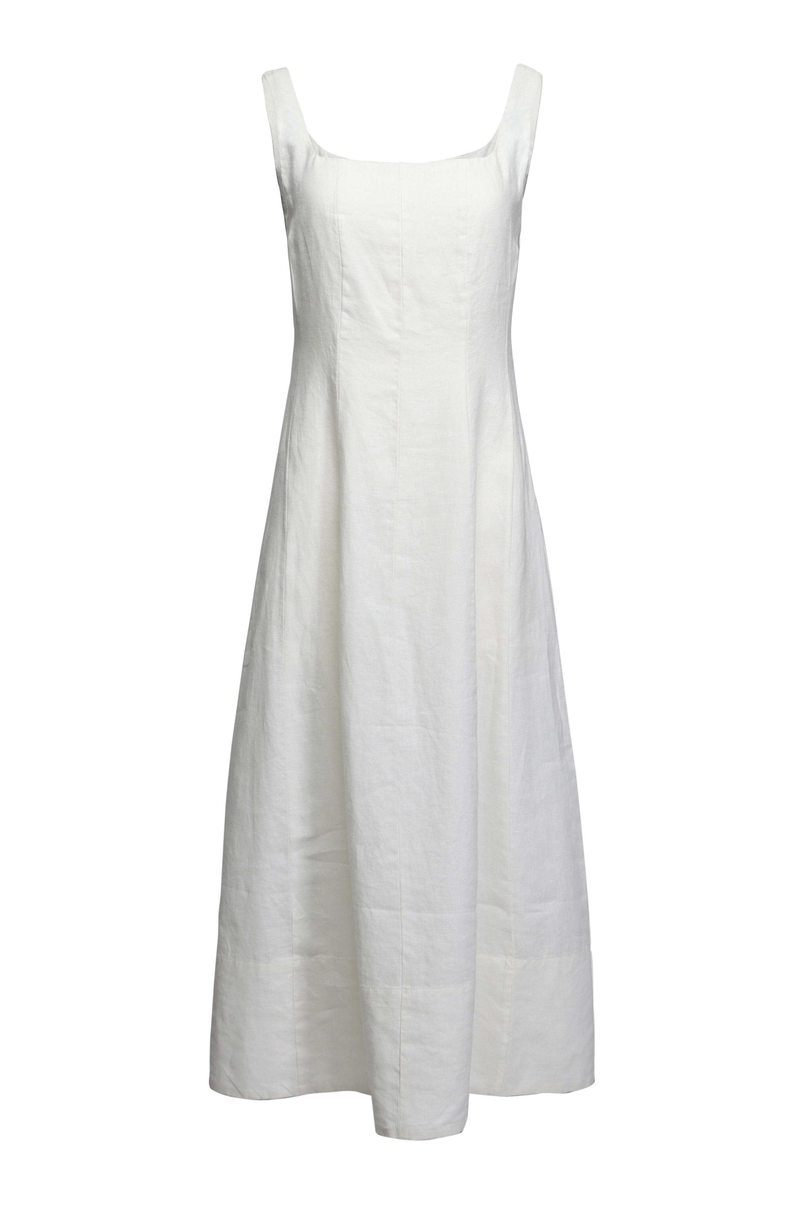 Square neck. Square back. Sleeveless. Concealed back zip closure. Fit and flare silhouette. Imported. Chest 35.5” (US S). Length 51” (US S). 100% linen. Dry clean.