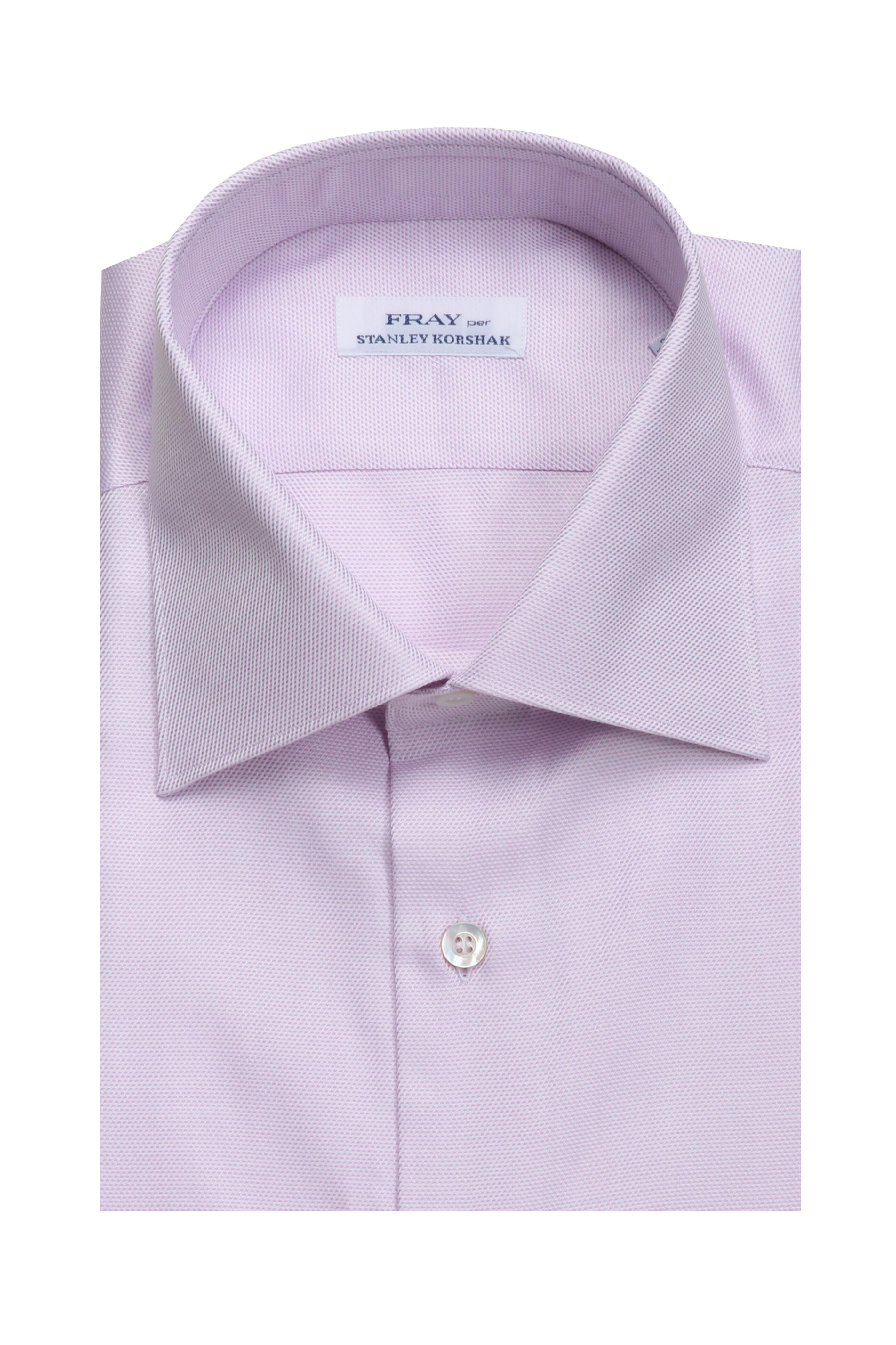 Spread collar. French front button placket. Single button barrel cuffs. Made in Italy. 100% cotton. Dry clean.