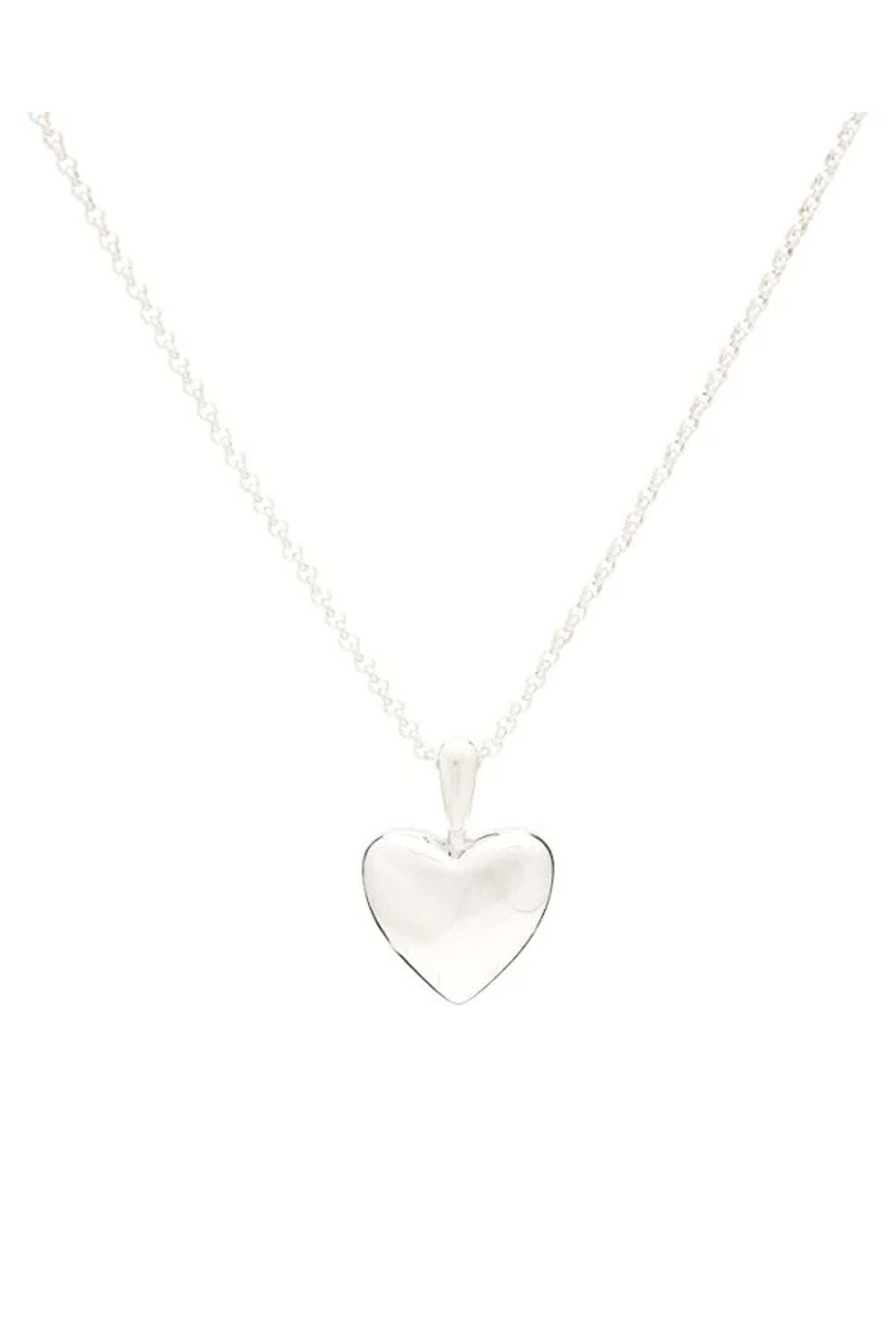 Sterling silver. Rolo chain. Puffy heart pendant. Lobster claw clasp. 19" L.