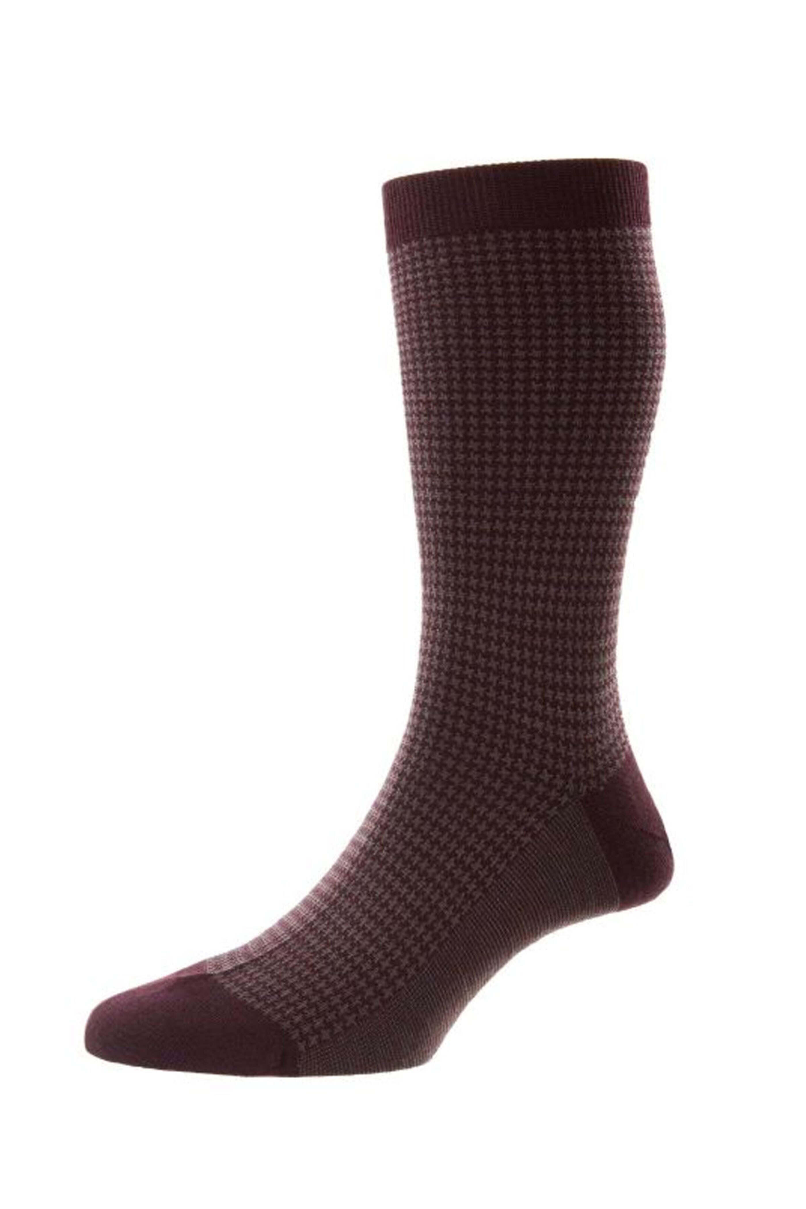 - Pantherella Maroon Highbury Houndstooth Wool Midcalf Sock