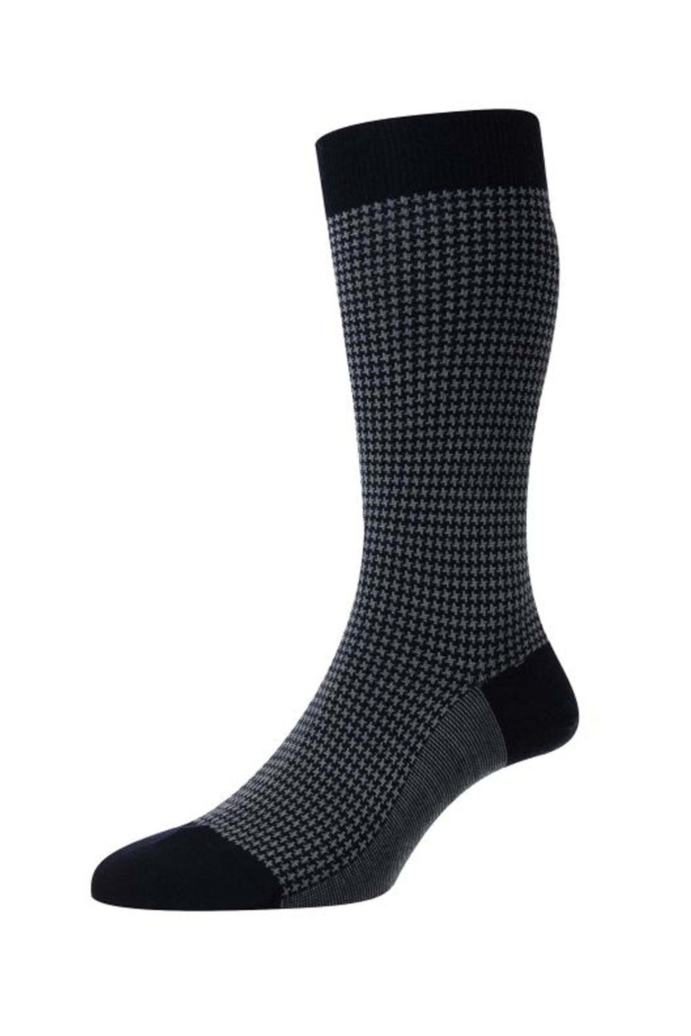 - Pantherella Navy Highbury Houndstooth Wool Midcalf Sock