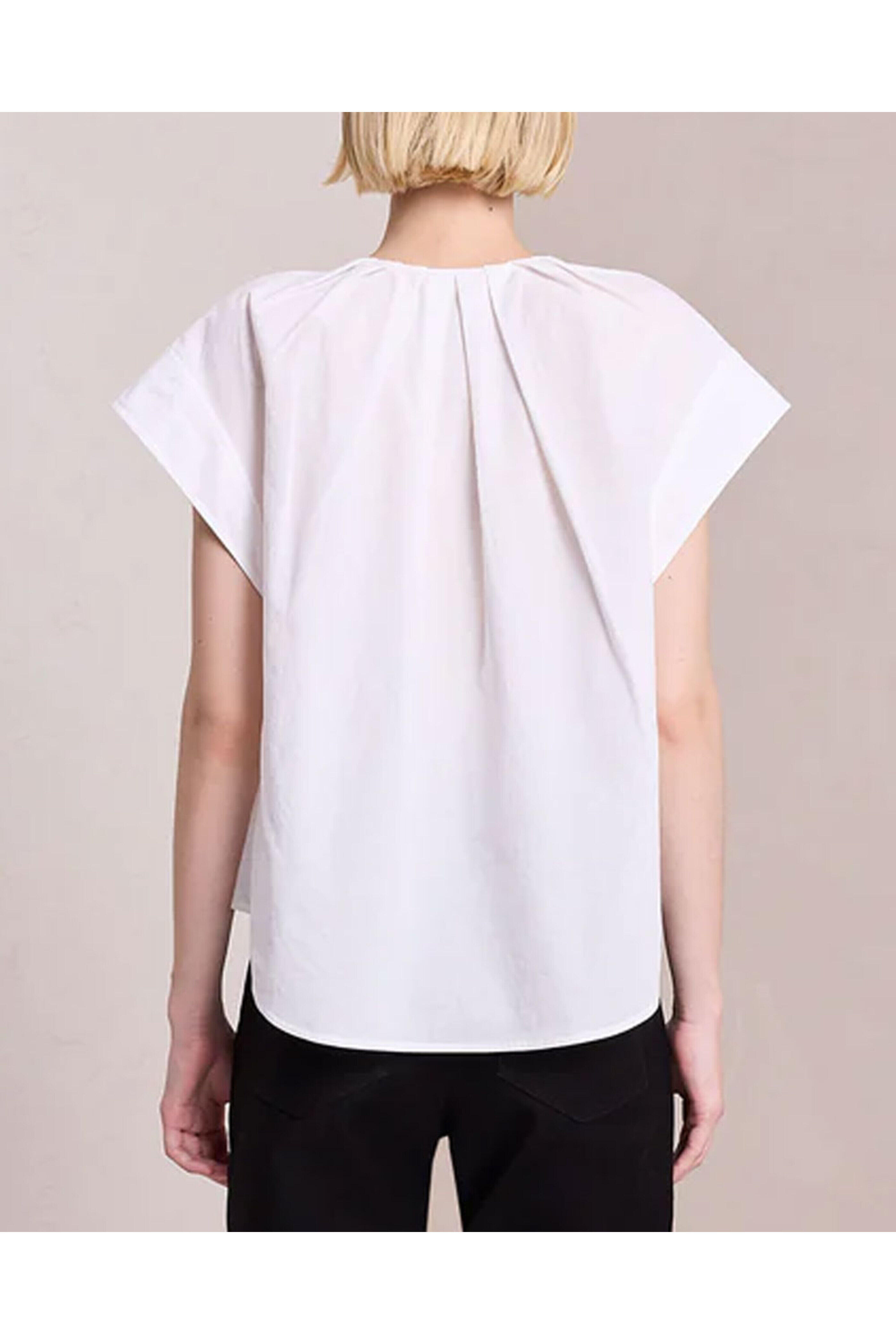 A.L.C. White Carlyn Top. Split v neck. Short sleeves. Relaxed fit. Rounded hem. 100% cotton   .