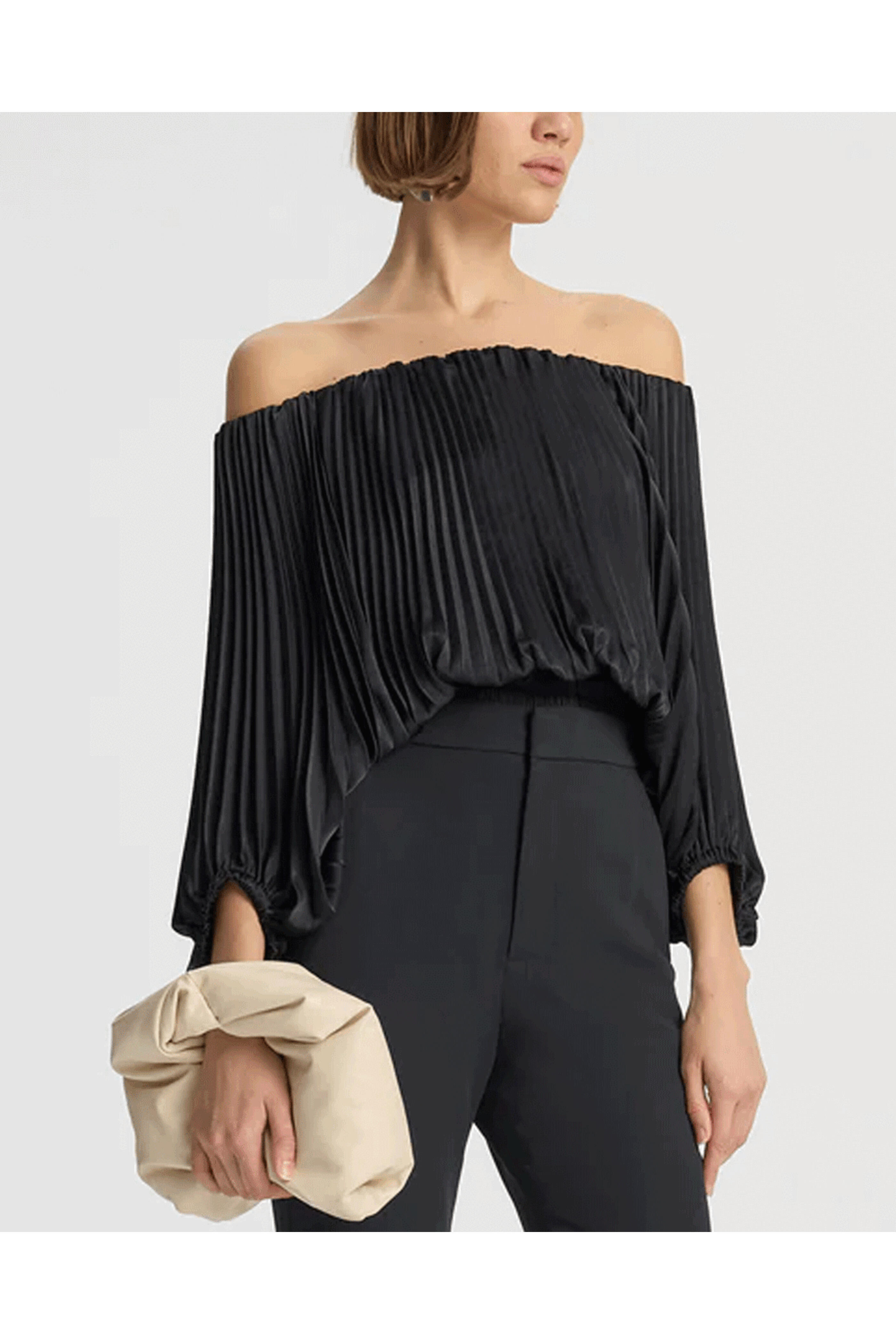- Off-the-shoulder neckline