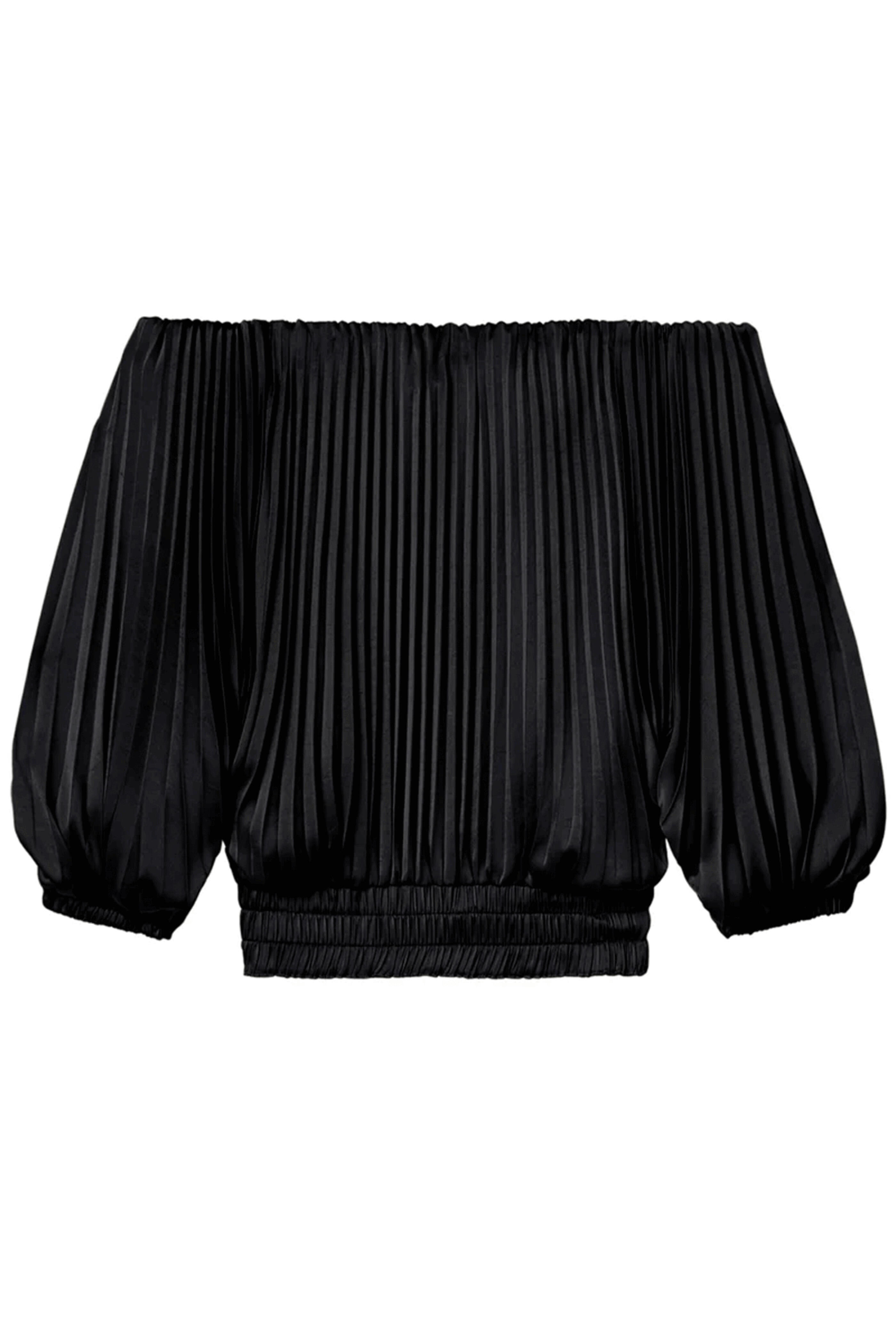 A.L.C. Black Sienna Top . Off-the-shoulder neckline . Three-quarter sleeves . Blouson fit . Hem sits at the hip . Pullover style . Imported . 100% Polyester . Machine wash cold .