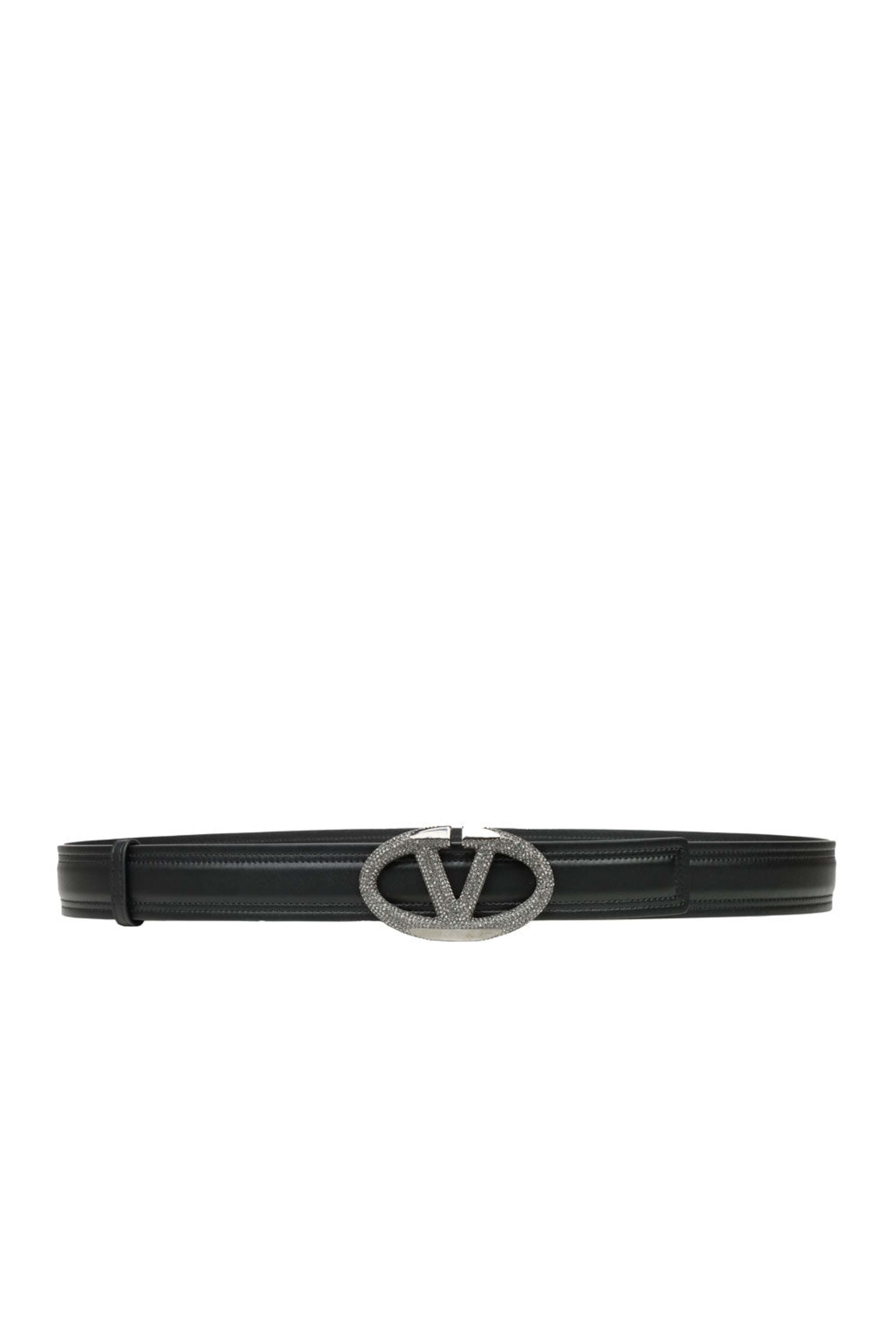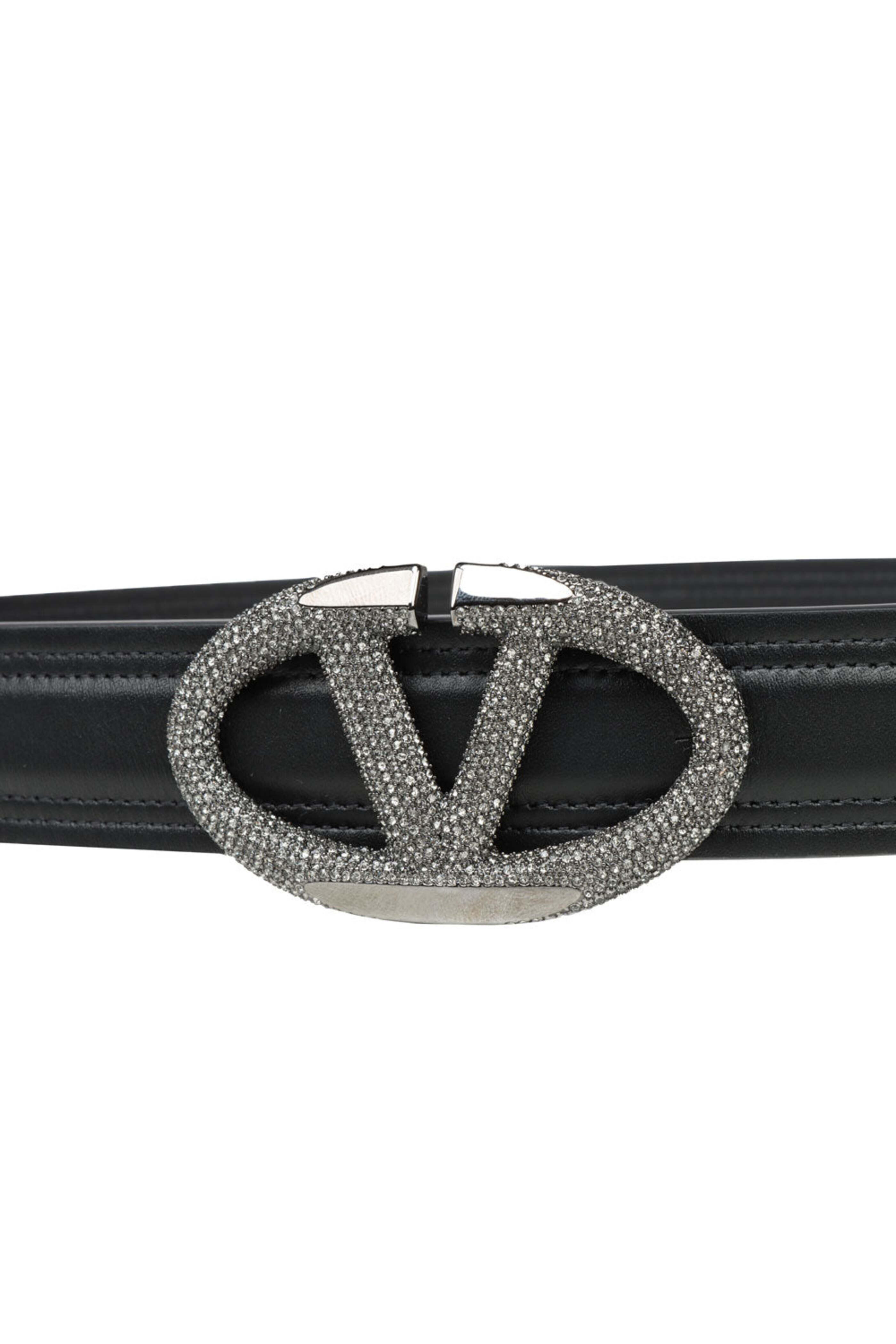 - Valentino Black Diamond VLogo Leather Belt in Nero