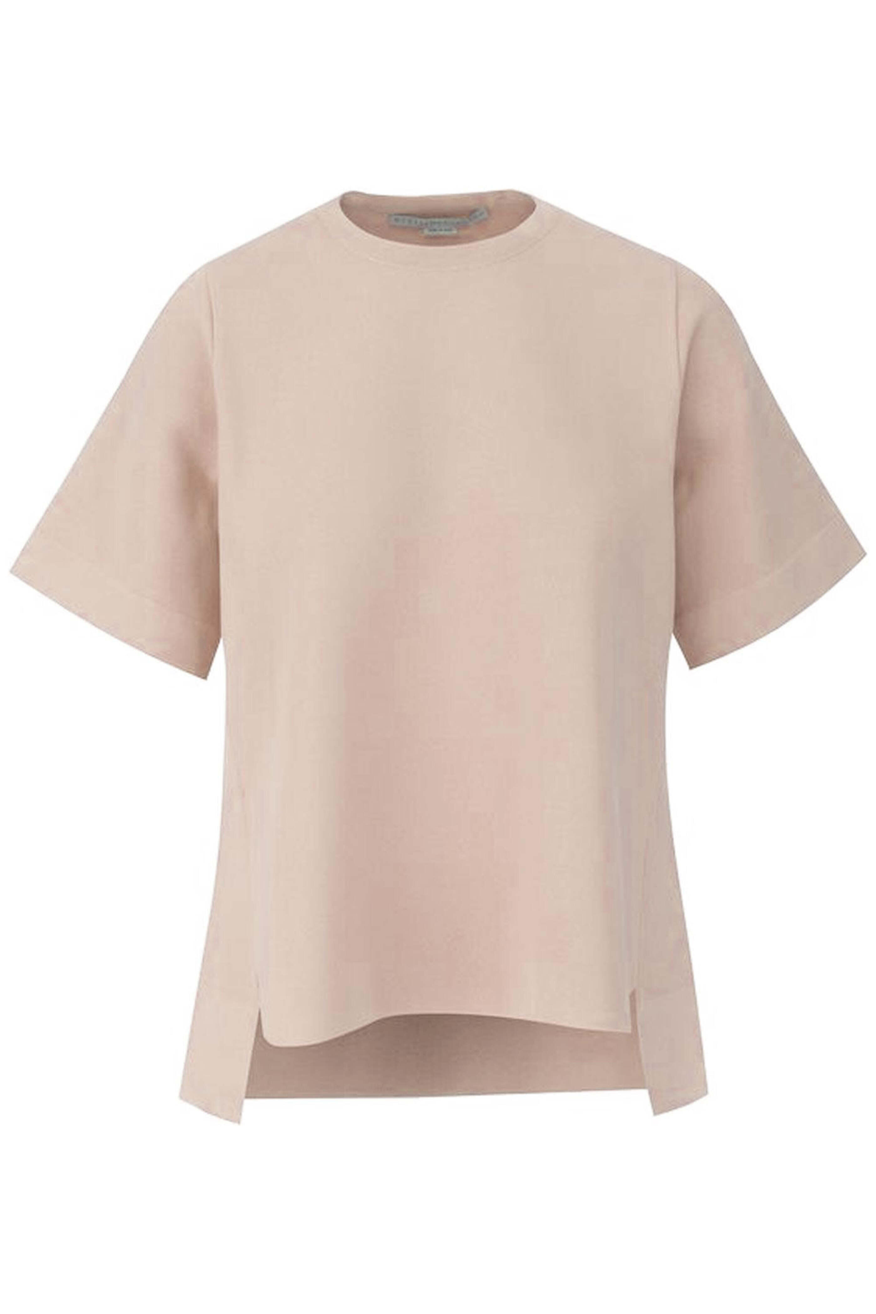 Stella McCartney Nude Short Sleeve Knit Jumper. Crew neck. Short sleeves. Relaxed fit. Step hem. 83% viscose, 17% polyester.