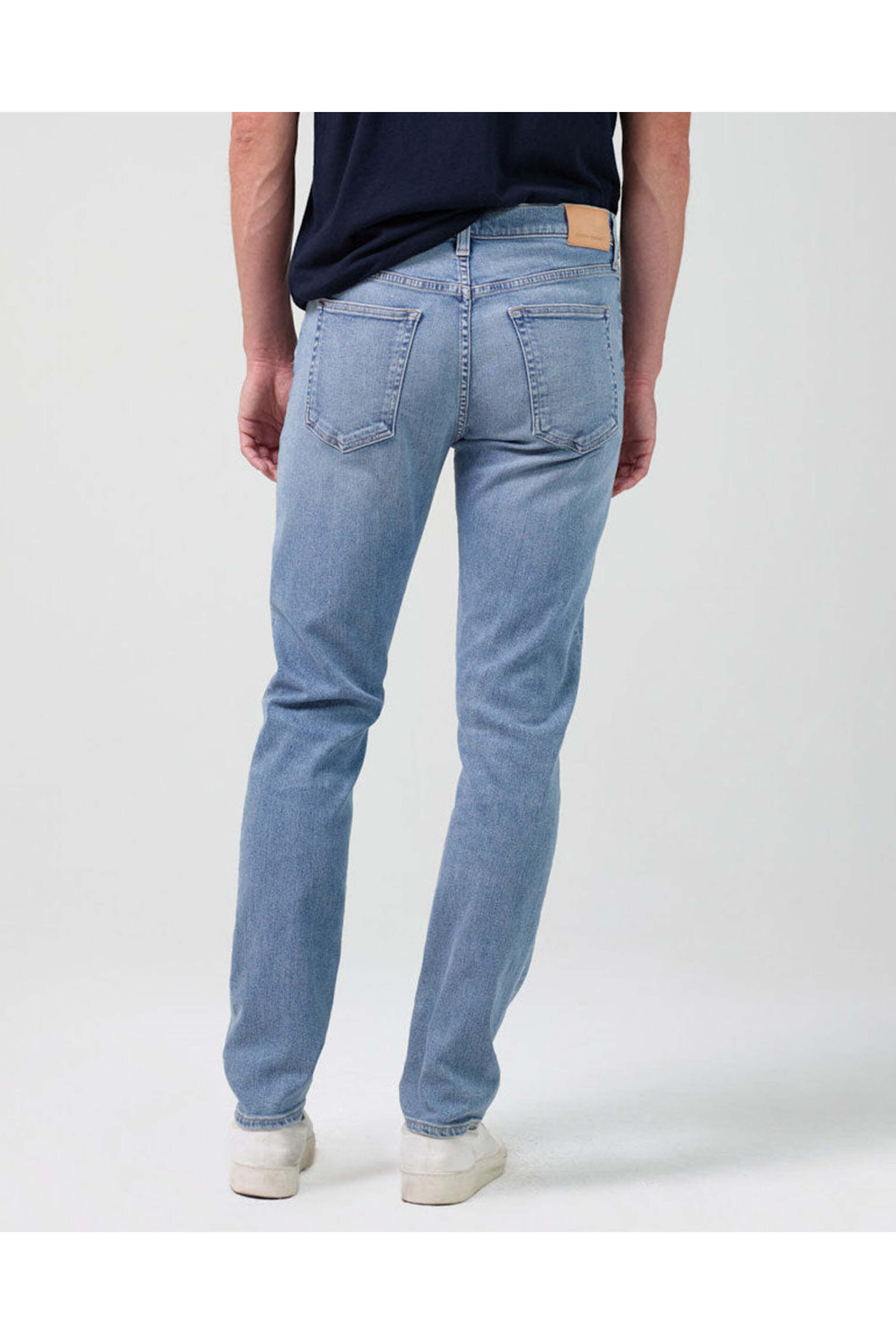 Citizens of Humanity London Denim Pant in Eventide. Flat front. Zip fly. Button closure. 5-pocket pant. Tapered silhouette. Slim fit. Made in USA. 98% cotton, 2% spandex.