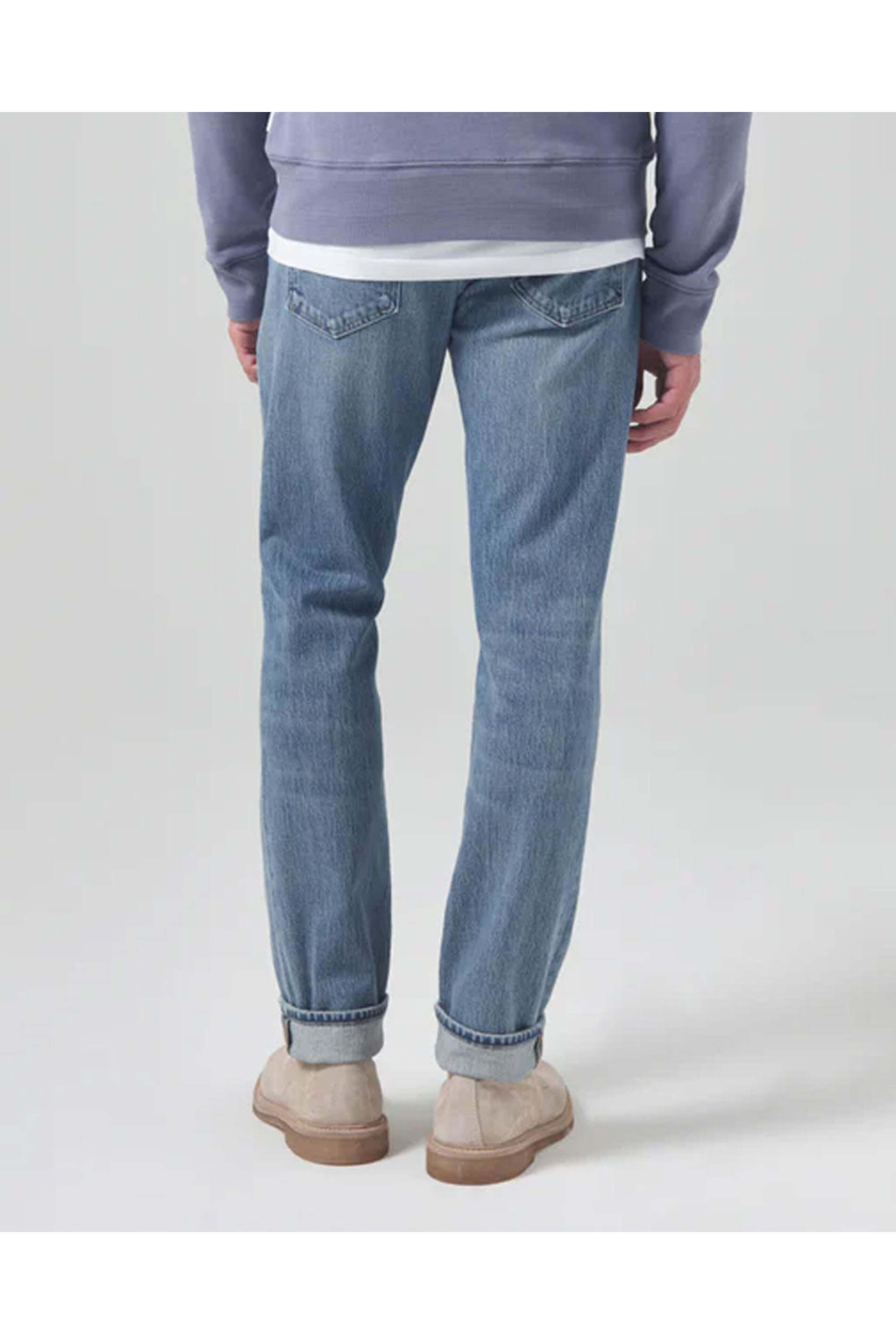 · Citizens of Humanity The Gage Slim Straight Denim in Albon· Heavyweight signature stretch archive denim with a blend of recycled cotton· Vintage medium indigo fading and whiskering· Zipper fly· 5-pocket pant · Slim straight fit· Rise: 10 ¼· Inseam 32 ½· Leg opening 15· 74% cotton, 21% recycled cotton, 4% recycled polyester, 1% elastane .