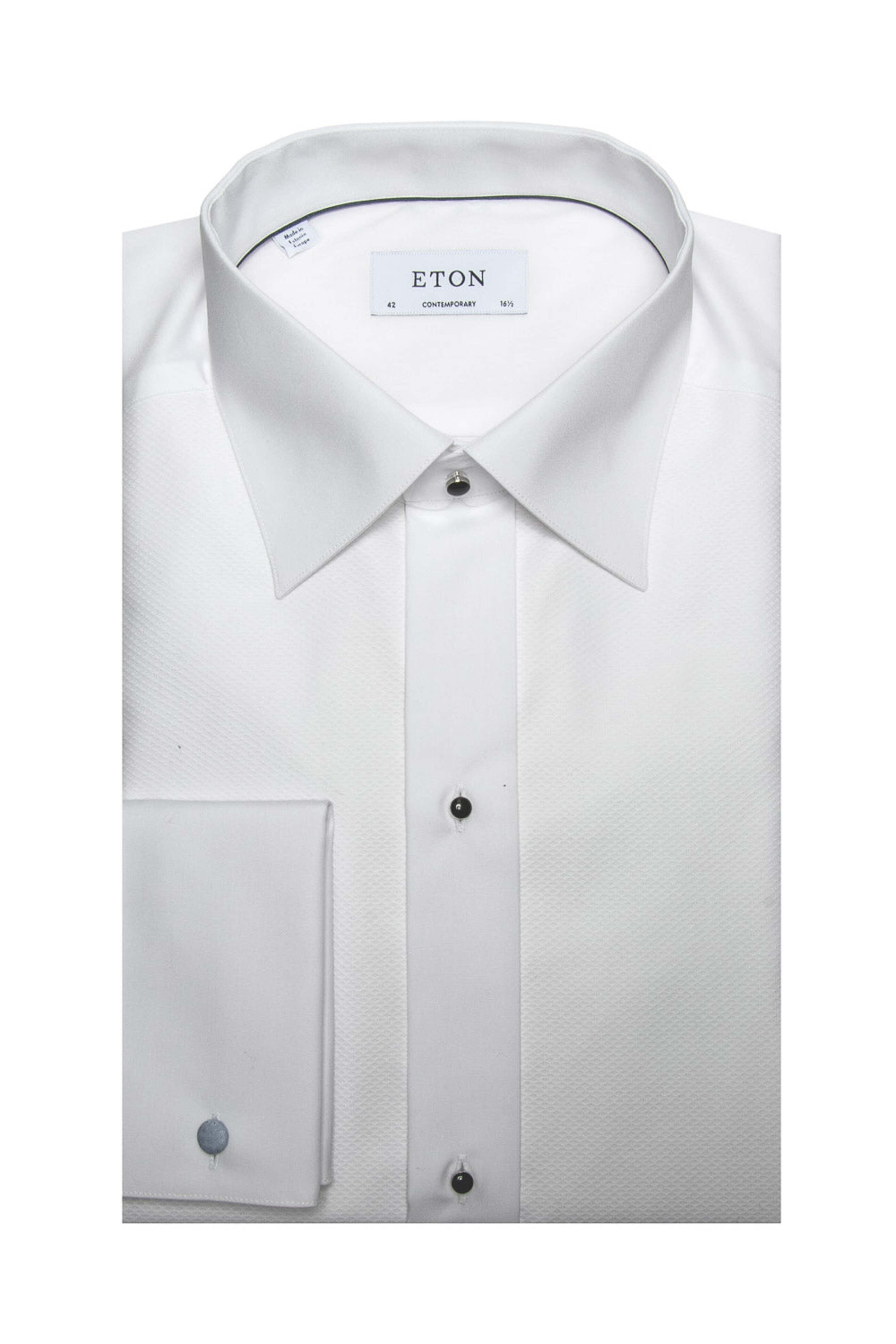- Eton White Pique Bib Front Formal Shirt Contemporary fit Point collar French cuffs Single button cuff 100% cotton Made in Europe