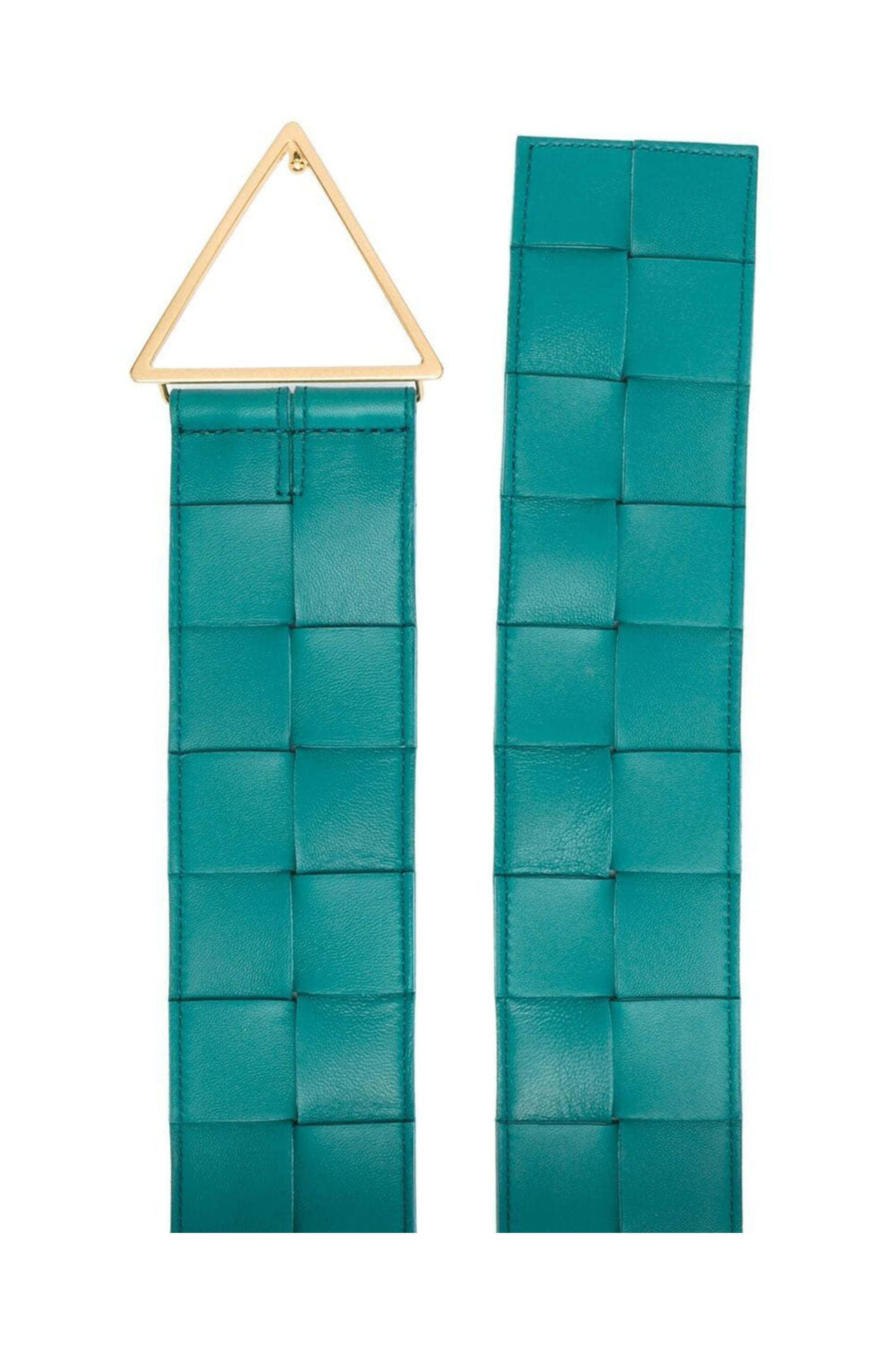 - Bottega Veneta Wide Maxi Weave Belt in Mallard Belt in intrecciato nappa leather Triangular pin buckle fastening Adjustable fit Approximately 2.25 wide Made in Italy