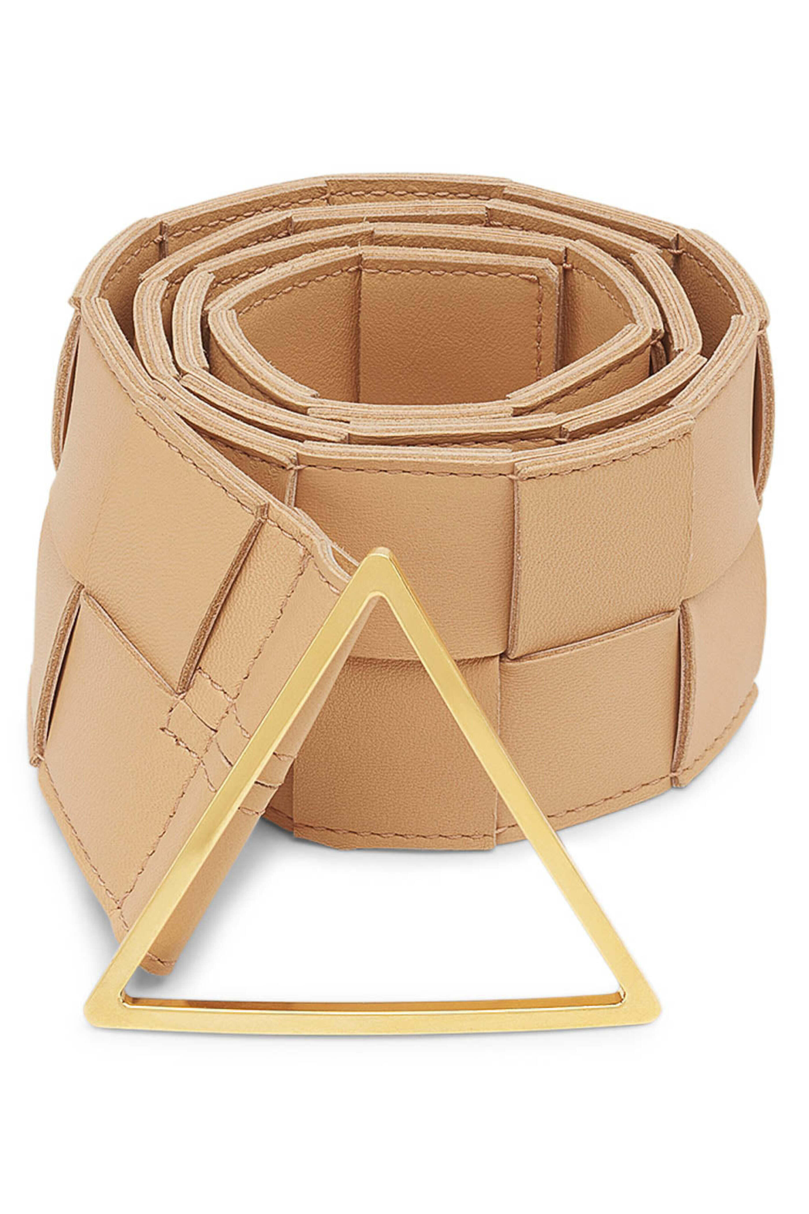 - Bottega Veneta Wide Maxi Weave Belt in Almond Belt in intrecciato nappa leather Triangular pin buckle fastening Adjustable fit Approximately 2.25 wide Made in Italy