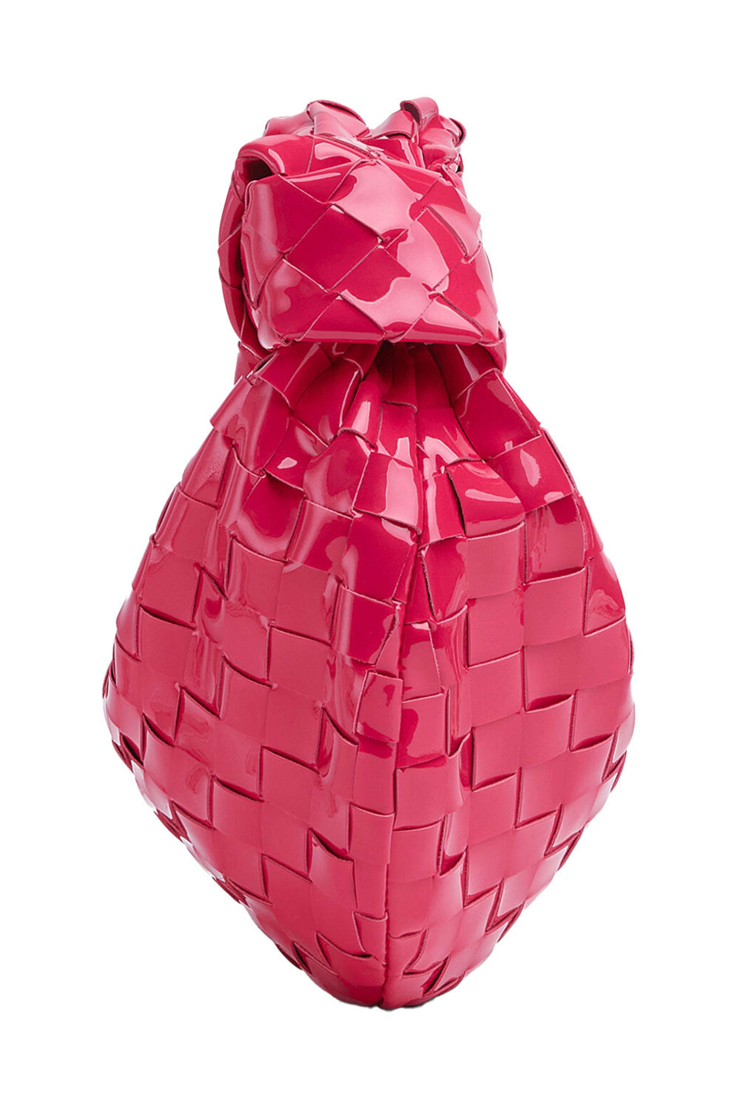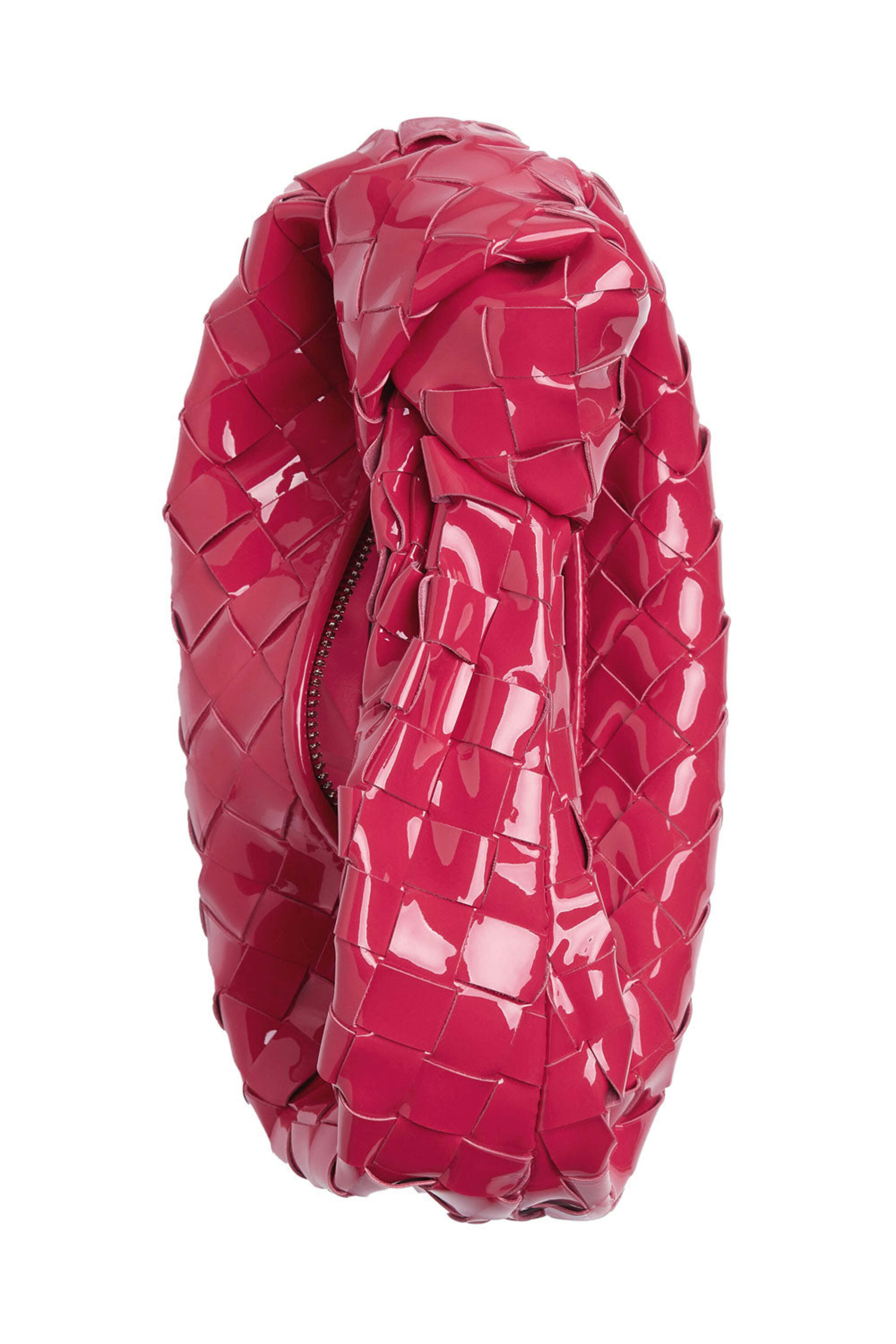 Bottega Veneta Mini Jodie Bag in Candy Stripe. Top zip closure. Knotted top handle. Single compartment. Silver tone hardware. Signature woven leather. High shine calfskin outer. Calfskin lining. 11 W X 9 H X 3.14 D. 3.93 handle drop. Made in Italy.