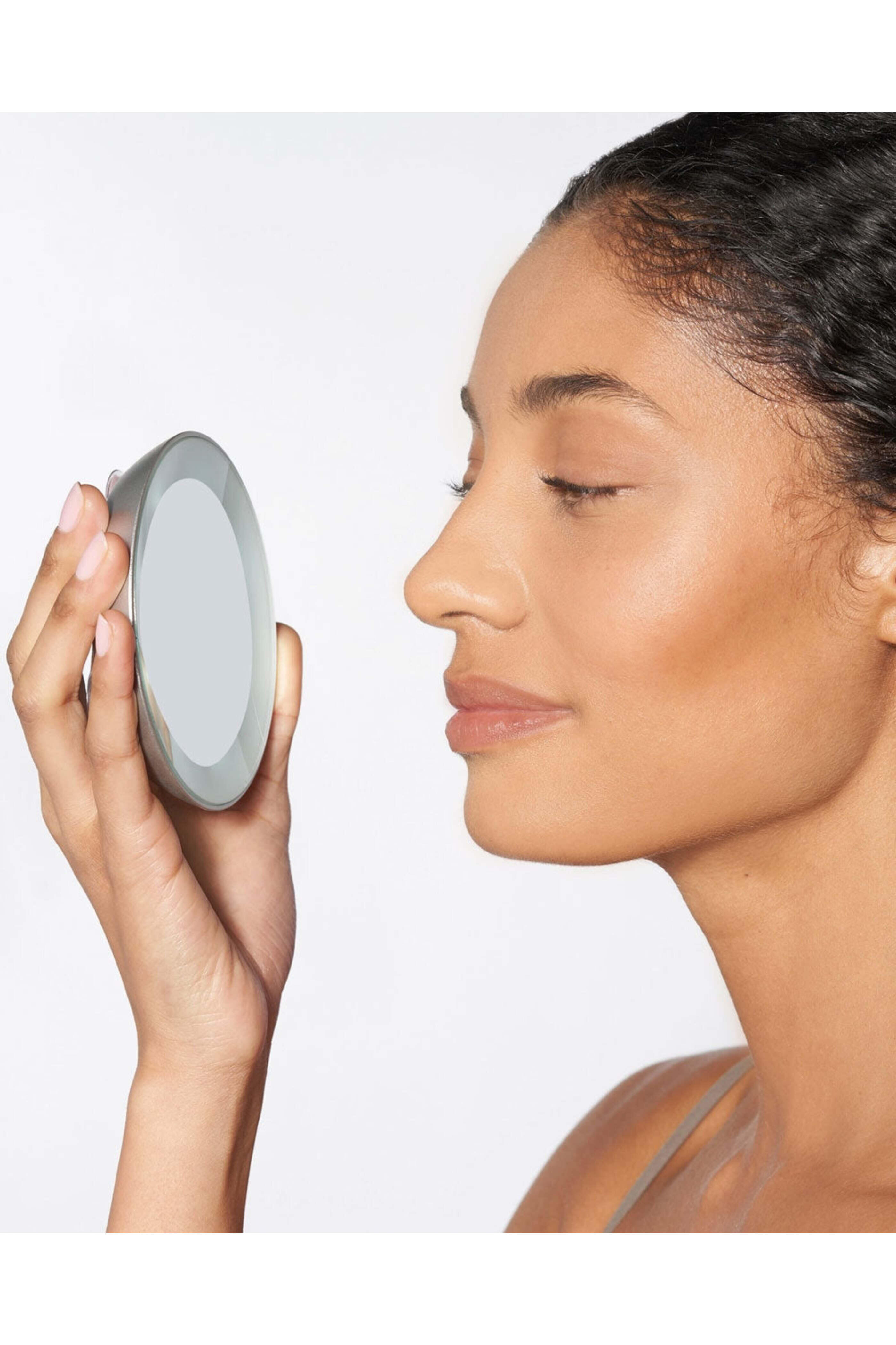 - Attach 15x Mini Mirror to vanity mirror or any clean, smooth surface by gently pushing the suction cups on back so both compress and adhere firmly. (Lightly moisten cups first for better hold.)